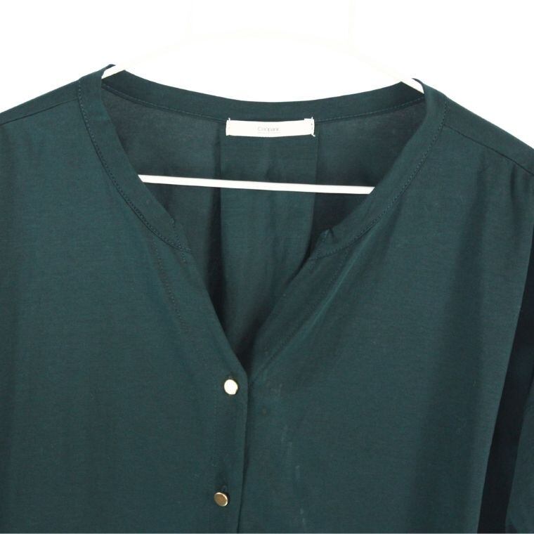 落ち着いたグリーンカラーが印象的なCiaopanicのVネックブラウスです。