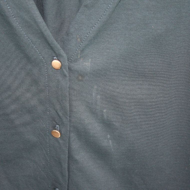 画像7枚目、ボタン横付近にシミのような汚れが見られます。