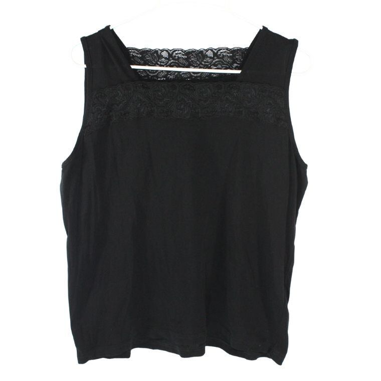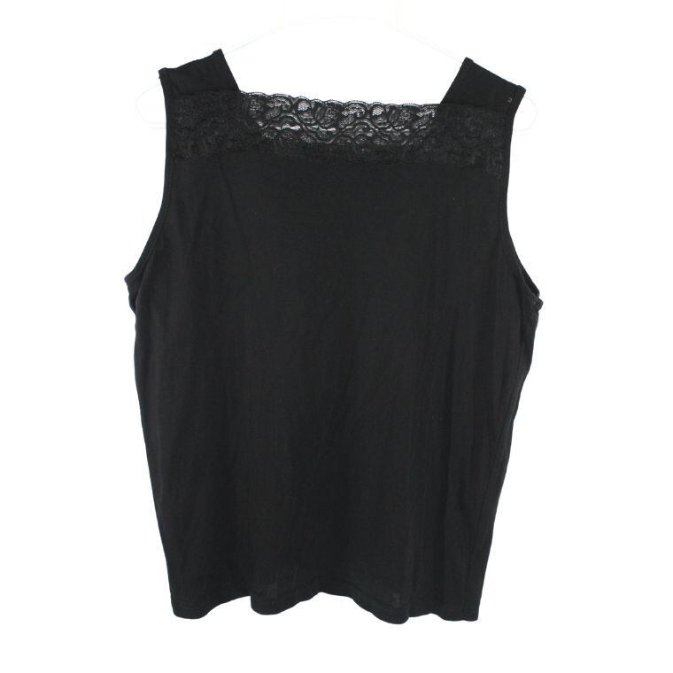 シンプルなブラックカラーに、背面のレースデザインが上品な印象のノースリーブトップスです。