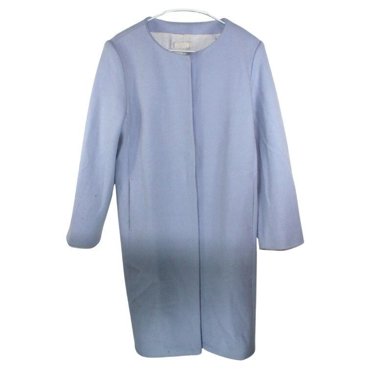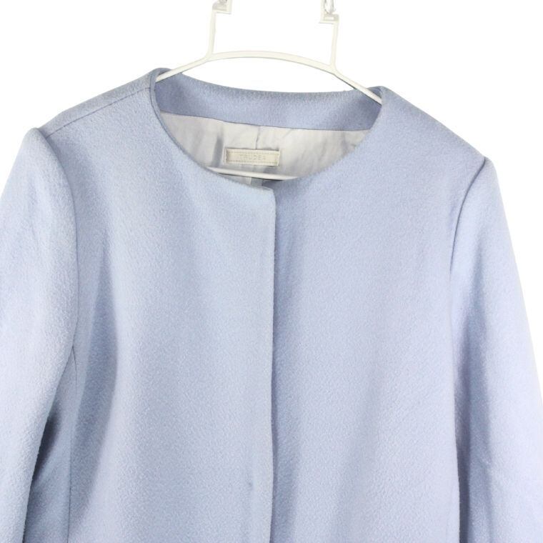 TRUDEA ノーカラーコート ライトブルー Mサイズ ウール混 レディース