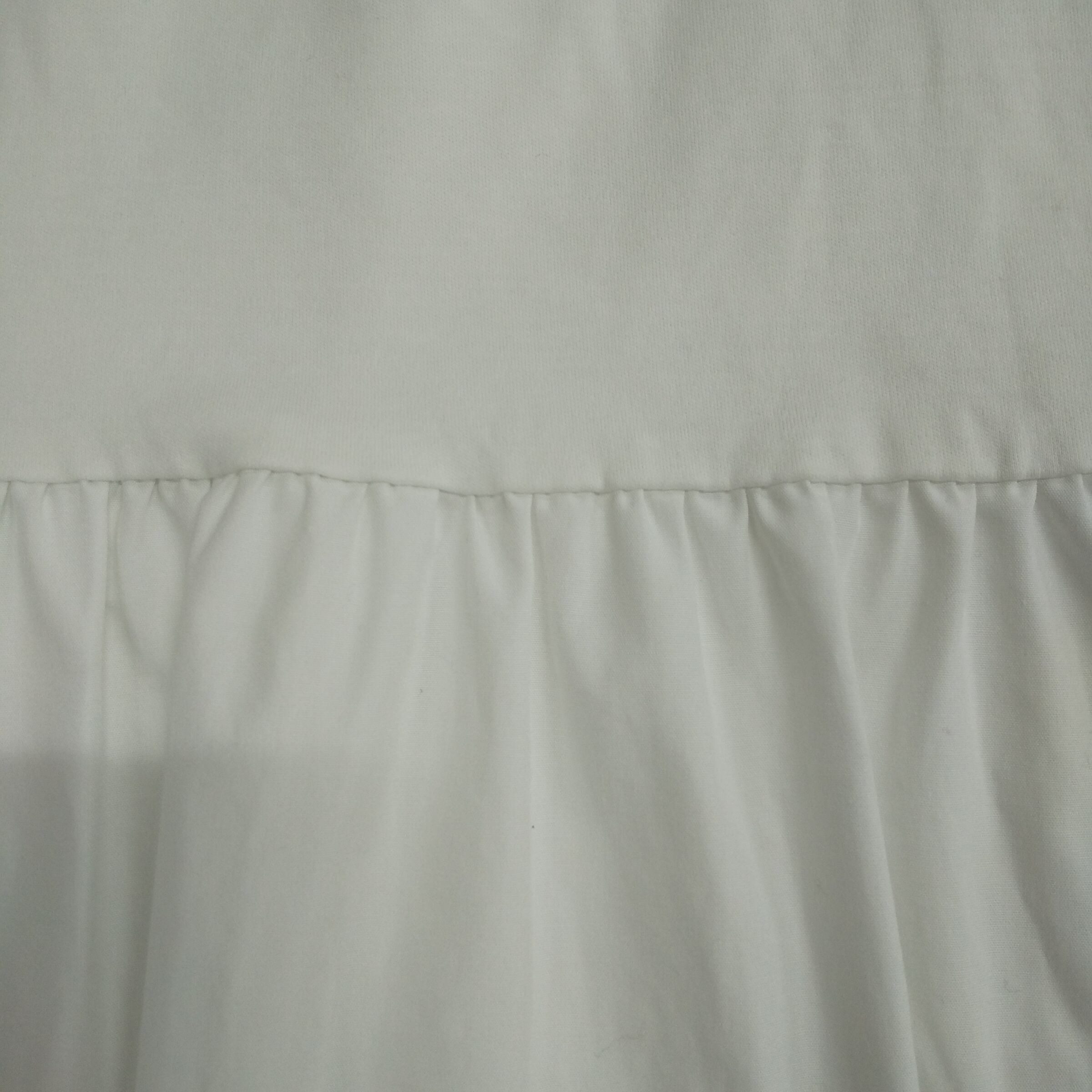 シンプルな白カラーに、ウエスト切替のAラインシルエットが特徴の一着。