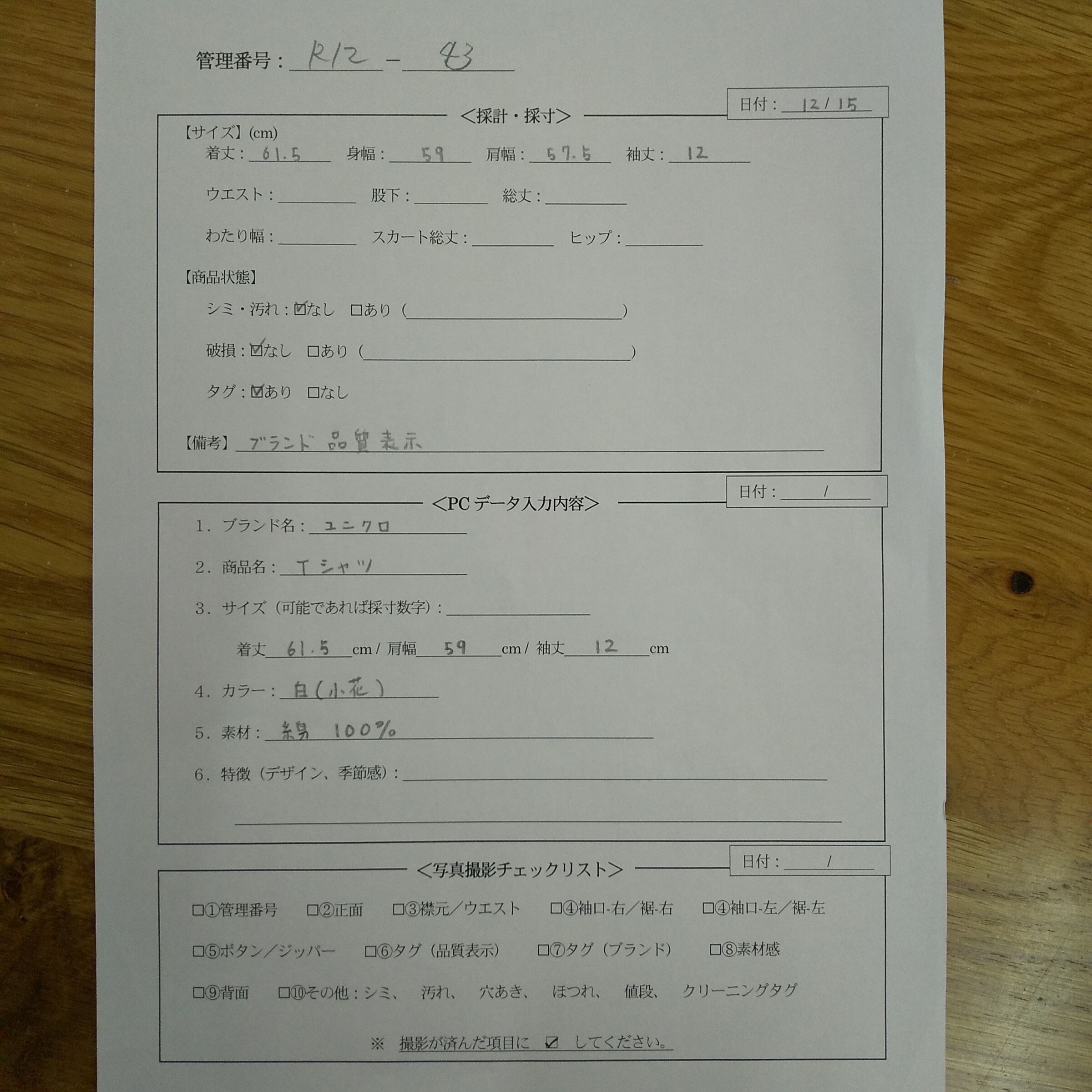 管理番号:R12-43 #てまいらずアパレル商品一覧