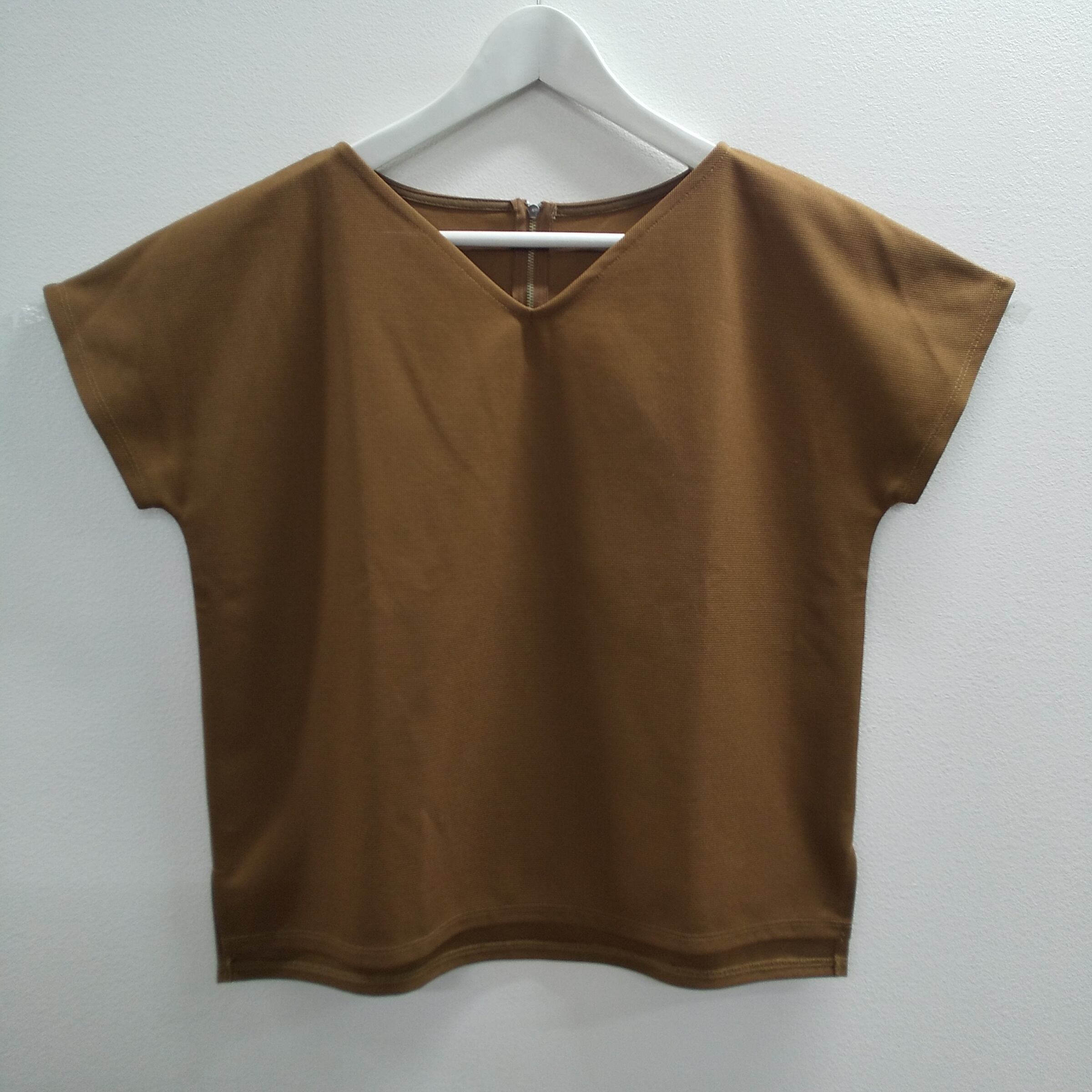Te chichi TERRASSE 茶 Vネック カットソーF 後ろジップ
