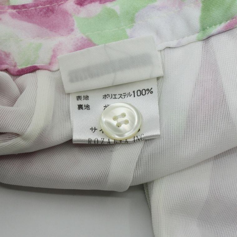 淡いカラーを基調に、ピンクやパープル系のフラワープリントが全面にあしらわれた、華やかで女性らしい印象の一着です。主張しすぎない水彩画のような花柄のため、上品さがあり、きれいめからフェミニンスタイルまで幅広く活躍します。