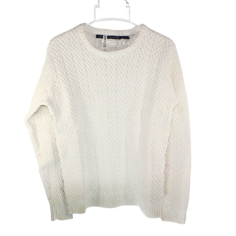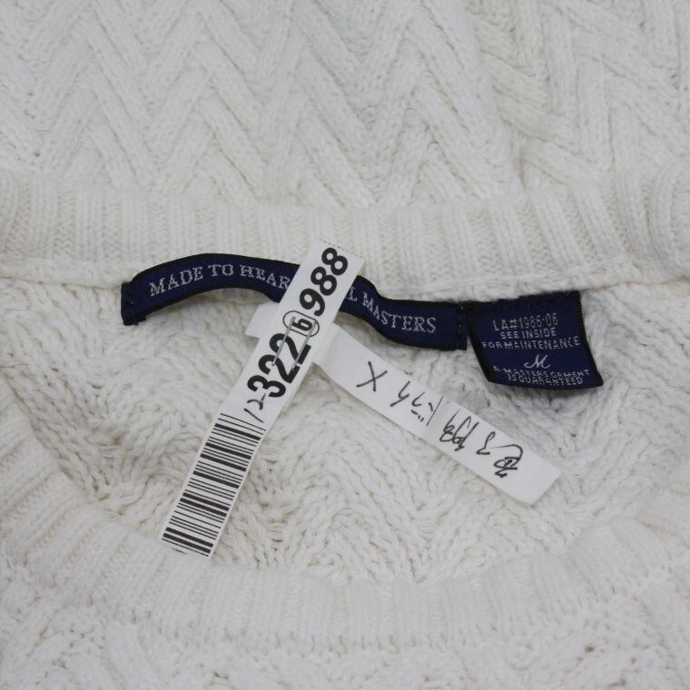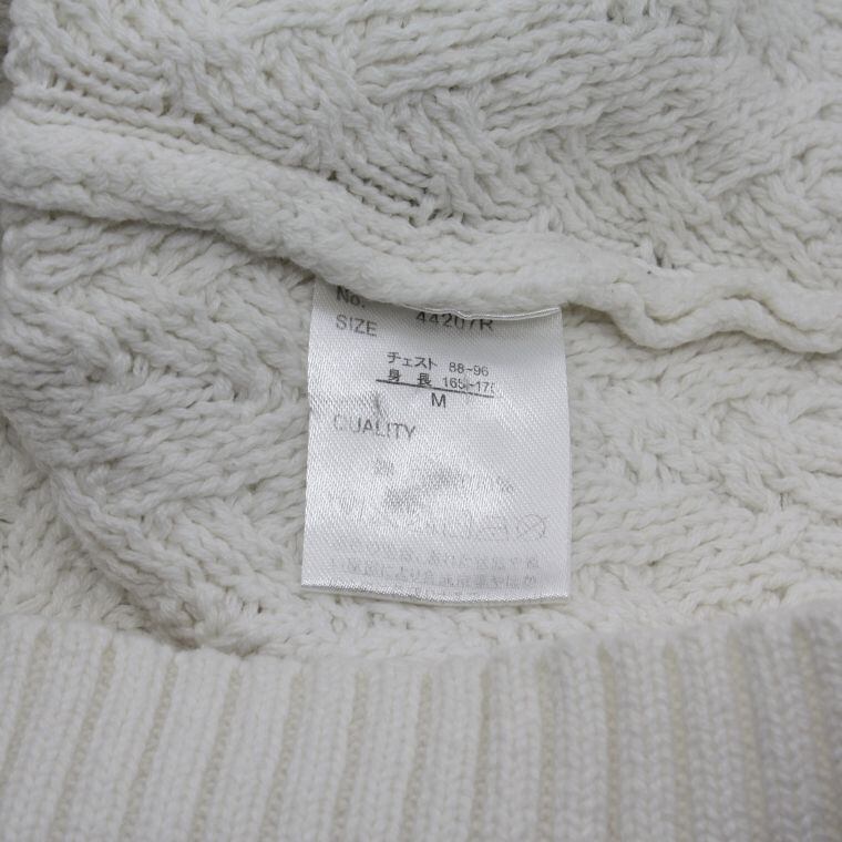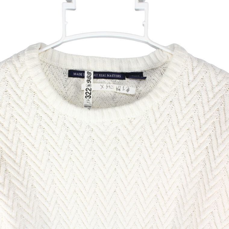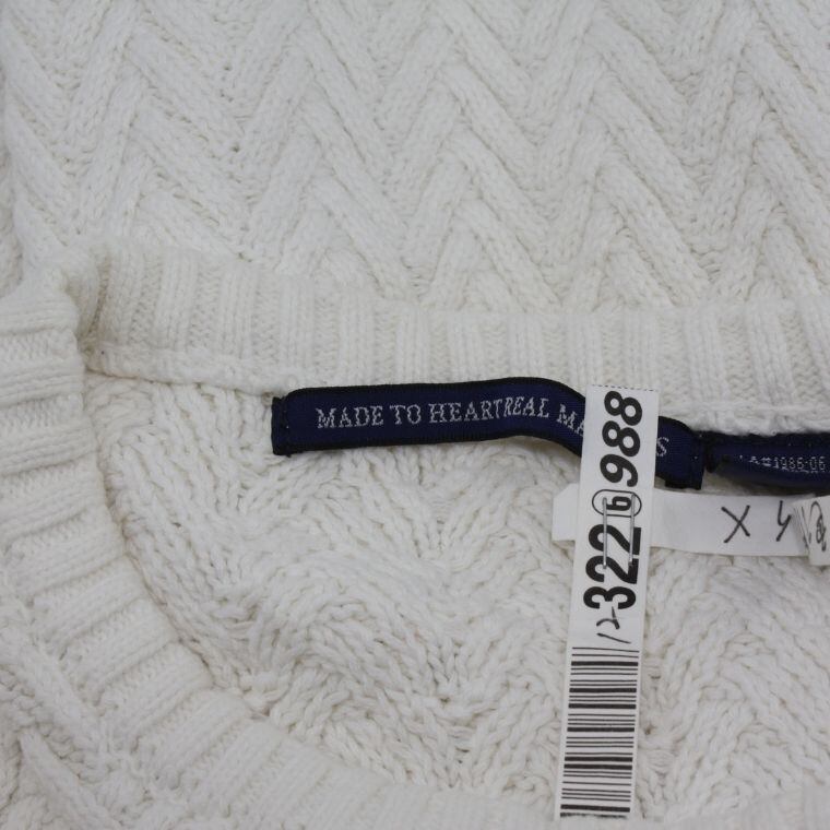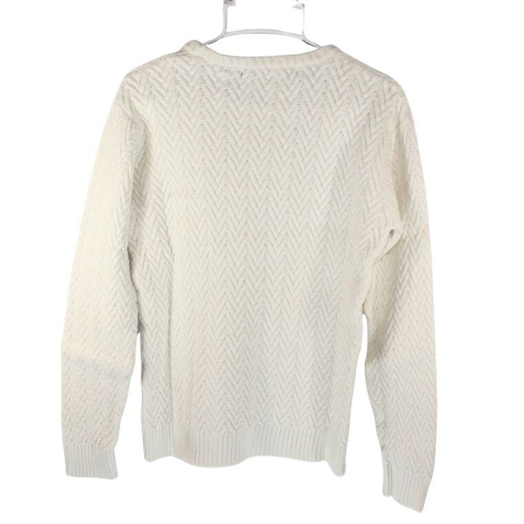 REAL MASTERSコットン100% ニット Mサイズ オフホワイト ヘリンボーン編み クルーネック メンズ