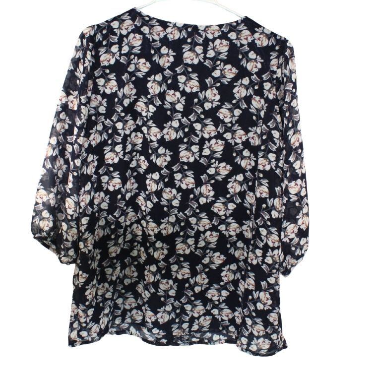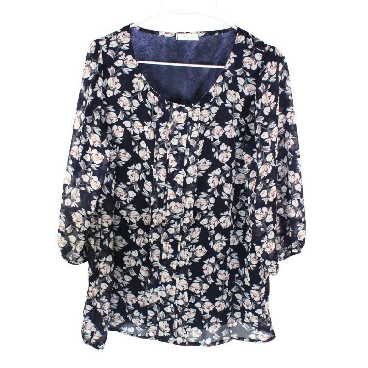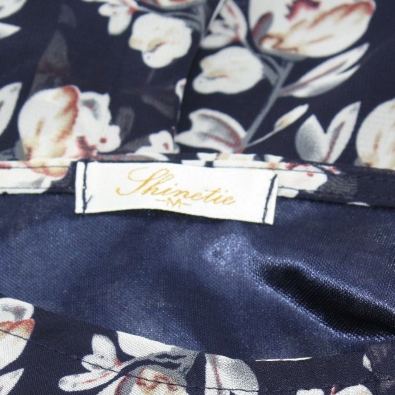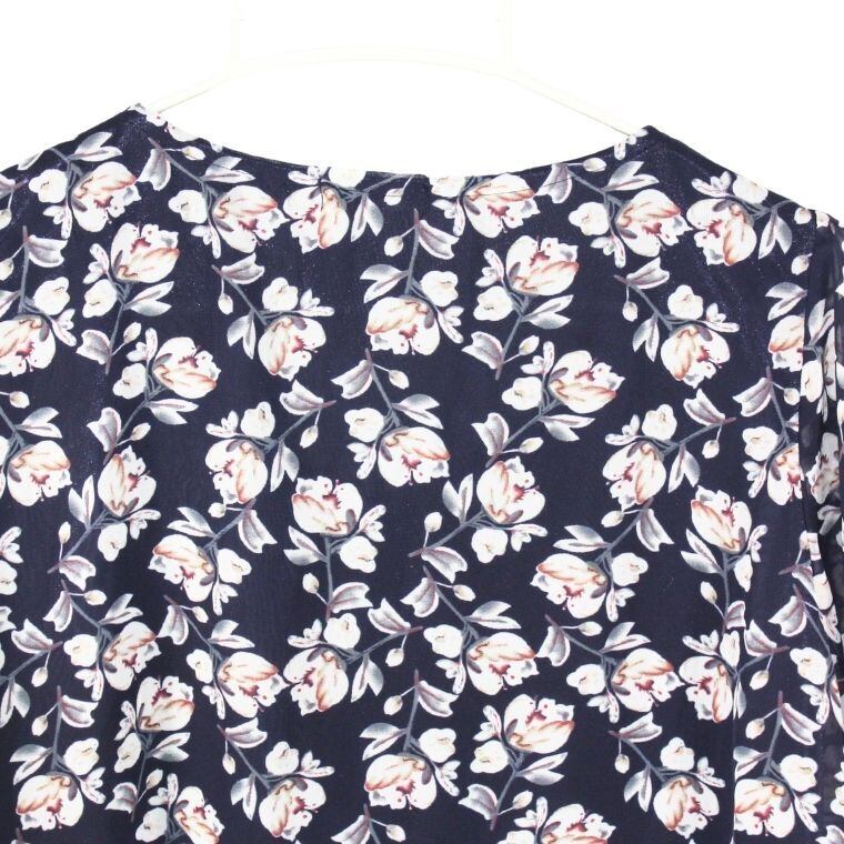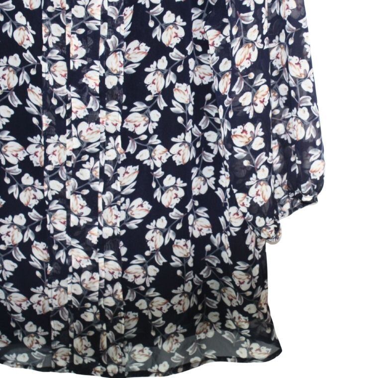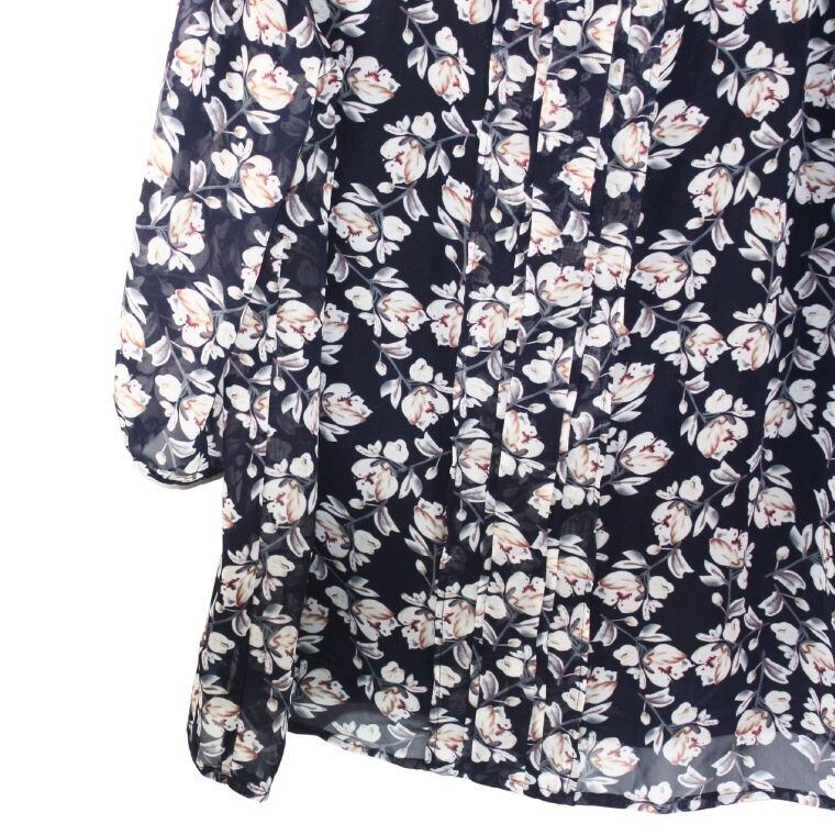 Shinelic シネリック 花柄ブラウス ネイビー Mサイズ 長袖 フラワープリント レディース