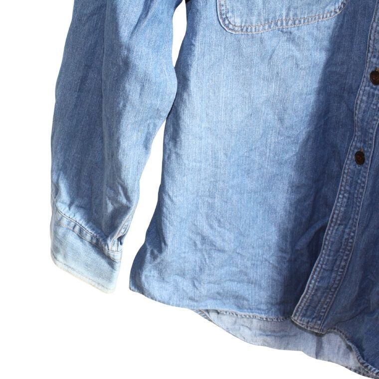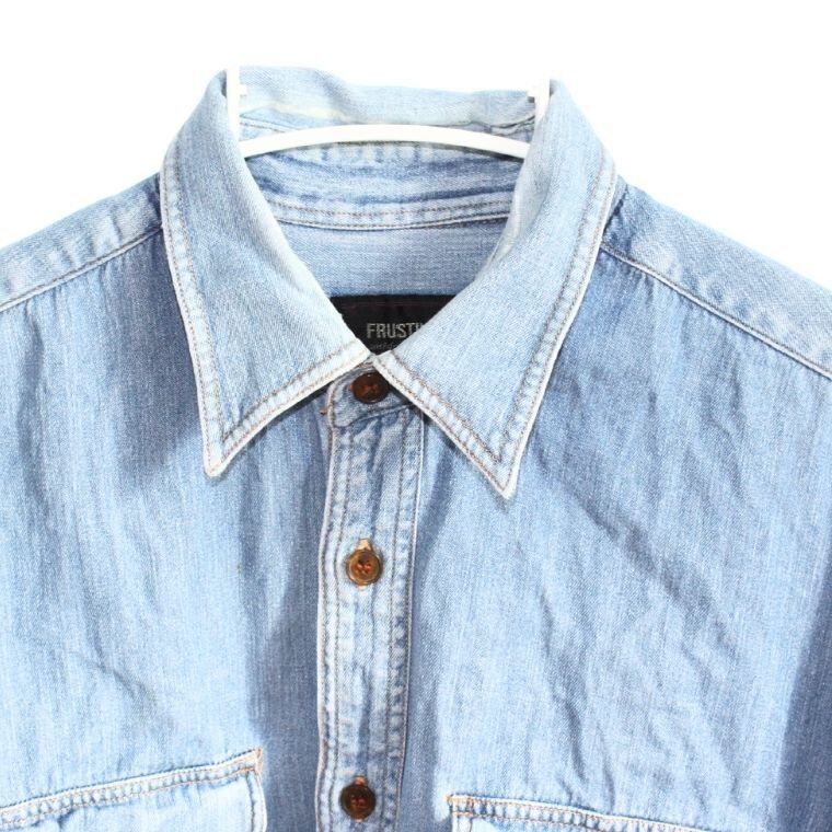 FRUSTINO デニムシャツ メンズ ダメージ加工 長袖 インディゴ カジュアル 古着