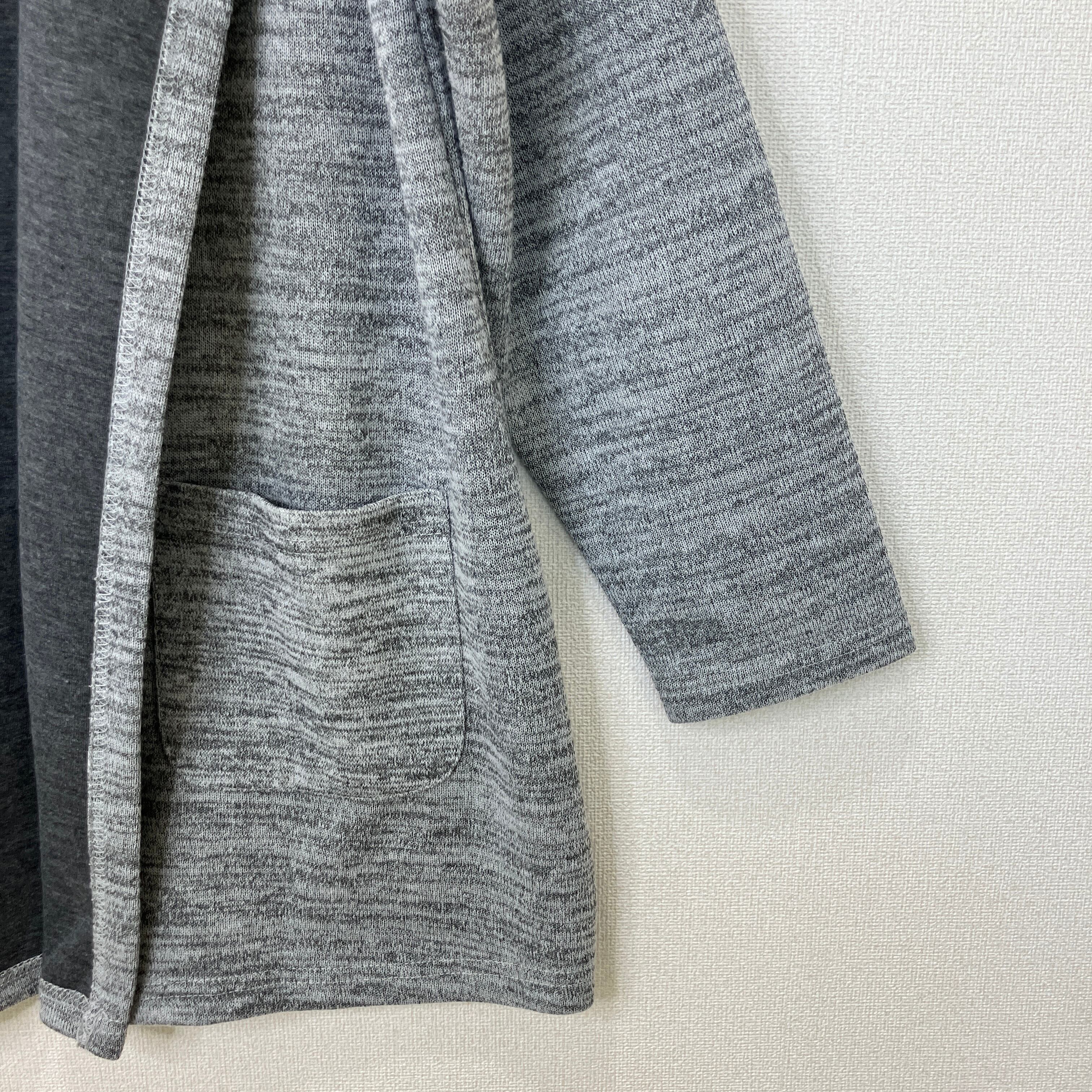 表地はメランジ調のグレー、裏地は濃いチャコールグレーの配色になっており、羽織った際に見えるコントラストがおしゃれな一着です。 ゆったりとしたシルエットで、季節の変わり目のライトアウターとして重宝します。