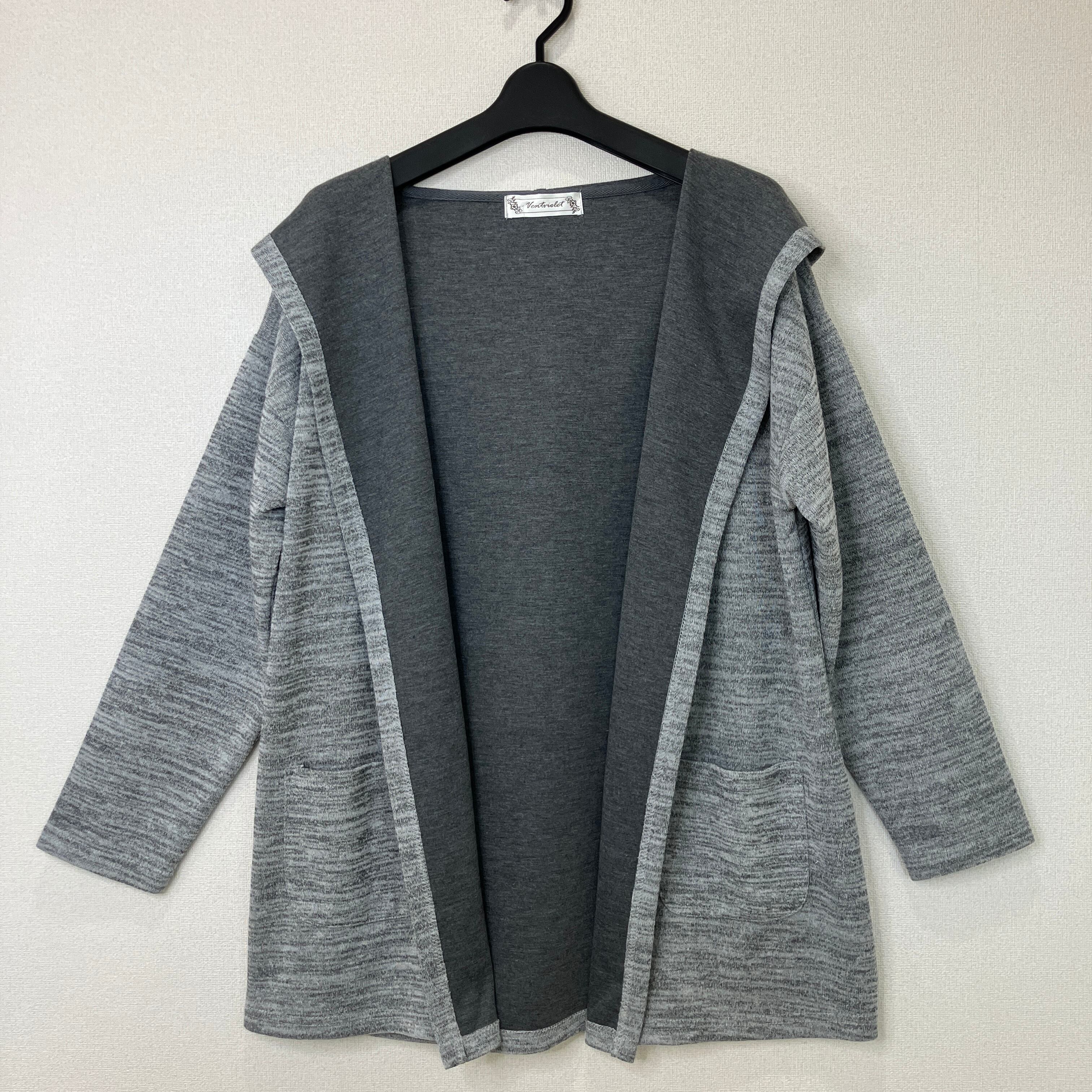 Ventviolet ボンディング加工 フーデッド コーディガン カーディガン グレー Lサイズ