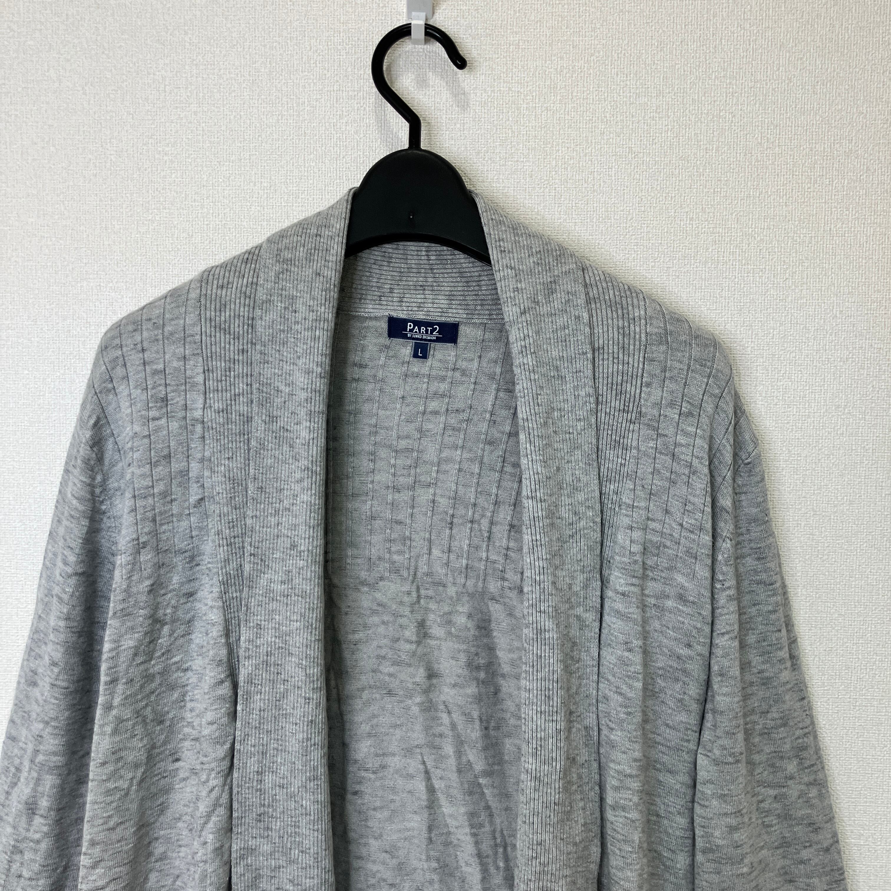 PART2 BY JUNKO SHIMADA(パート2 バイ ジュンコシマダ)グレー リブ切替 ロングカーディガン