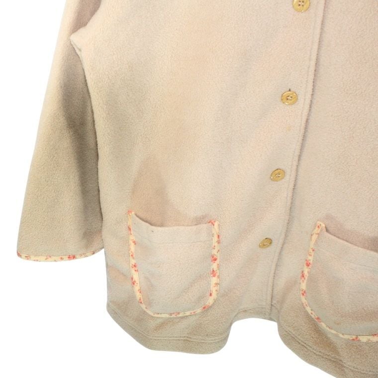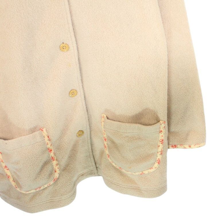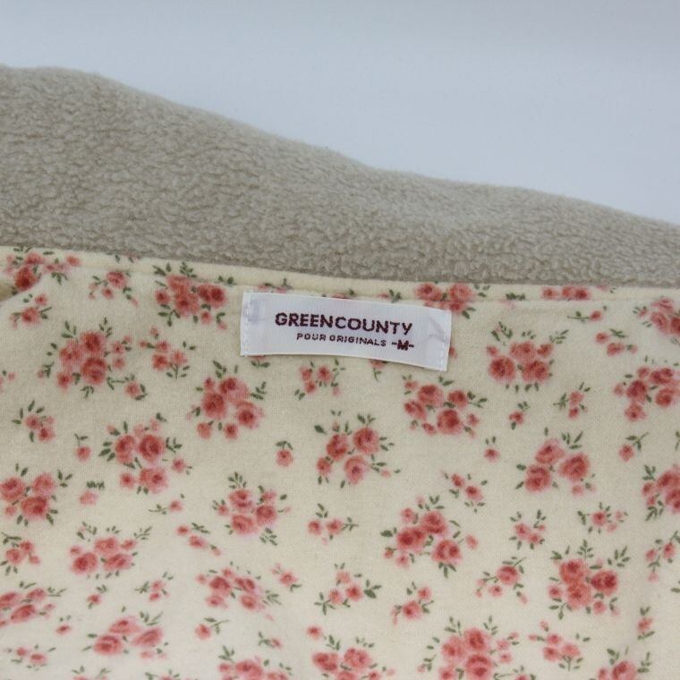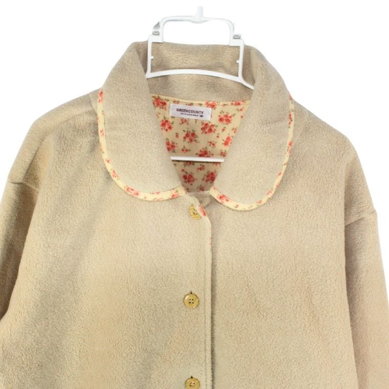 GREENTY カントリー風 フリースジャケット 花柄裏地 ベージュ Mサイズ レディース
