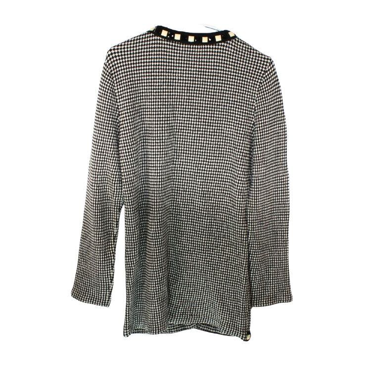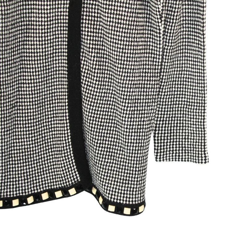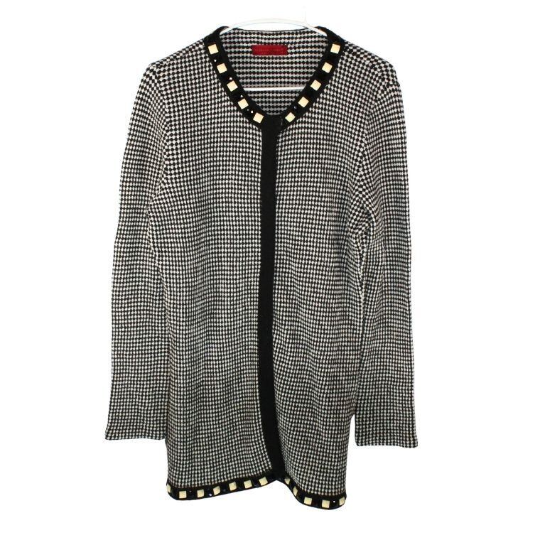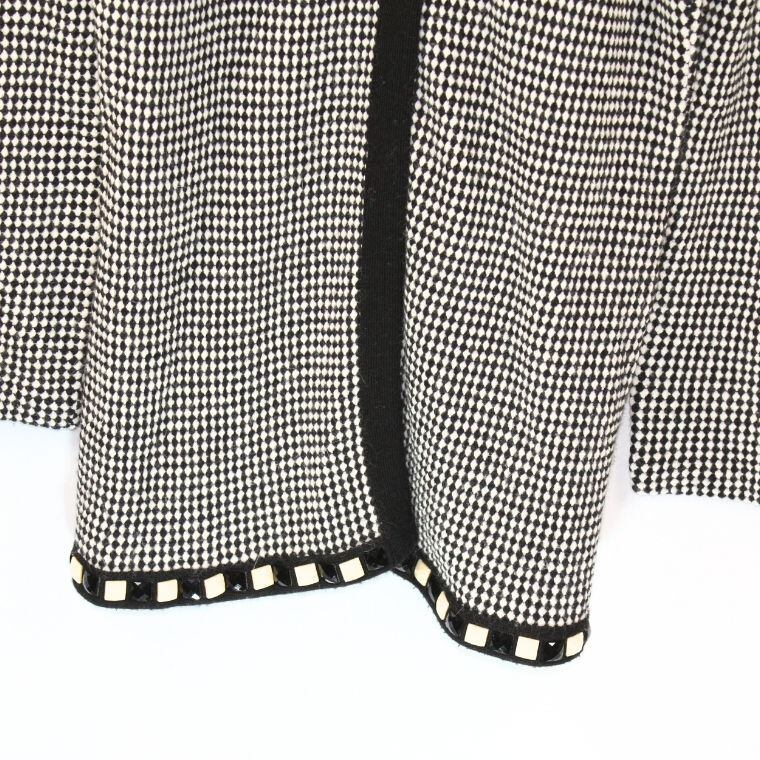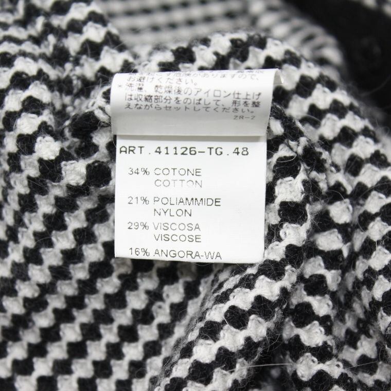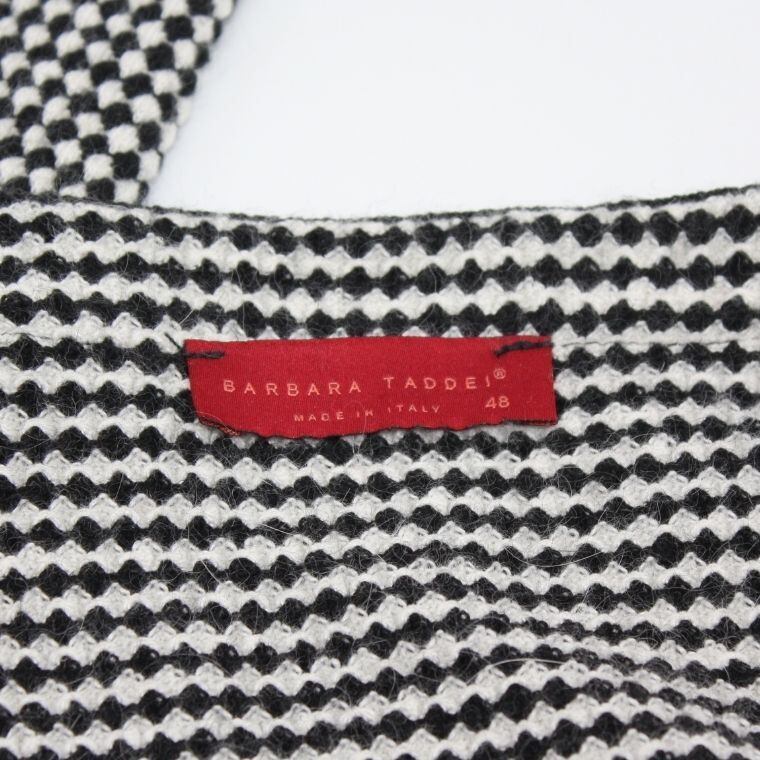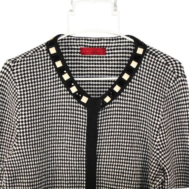 BARBARA TADDEI 千鳥柄 ロングカーディガン モノトーン 48 イタリア製 上品 羽織り
