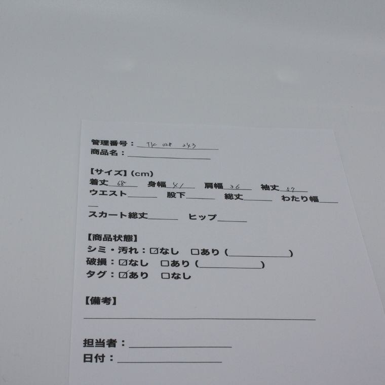 管理番号:TK-028243 #てまいらずアパレル商品一覧