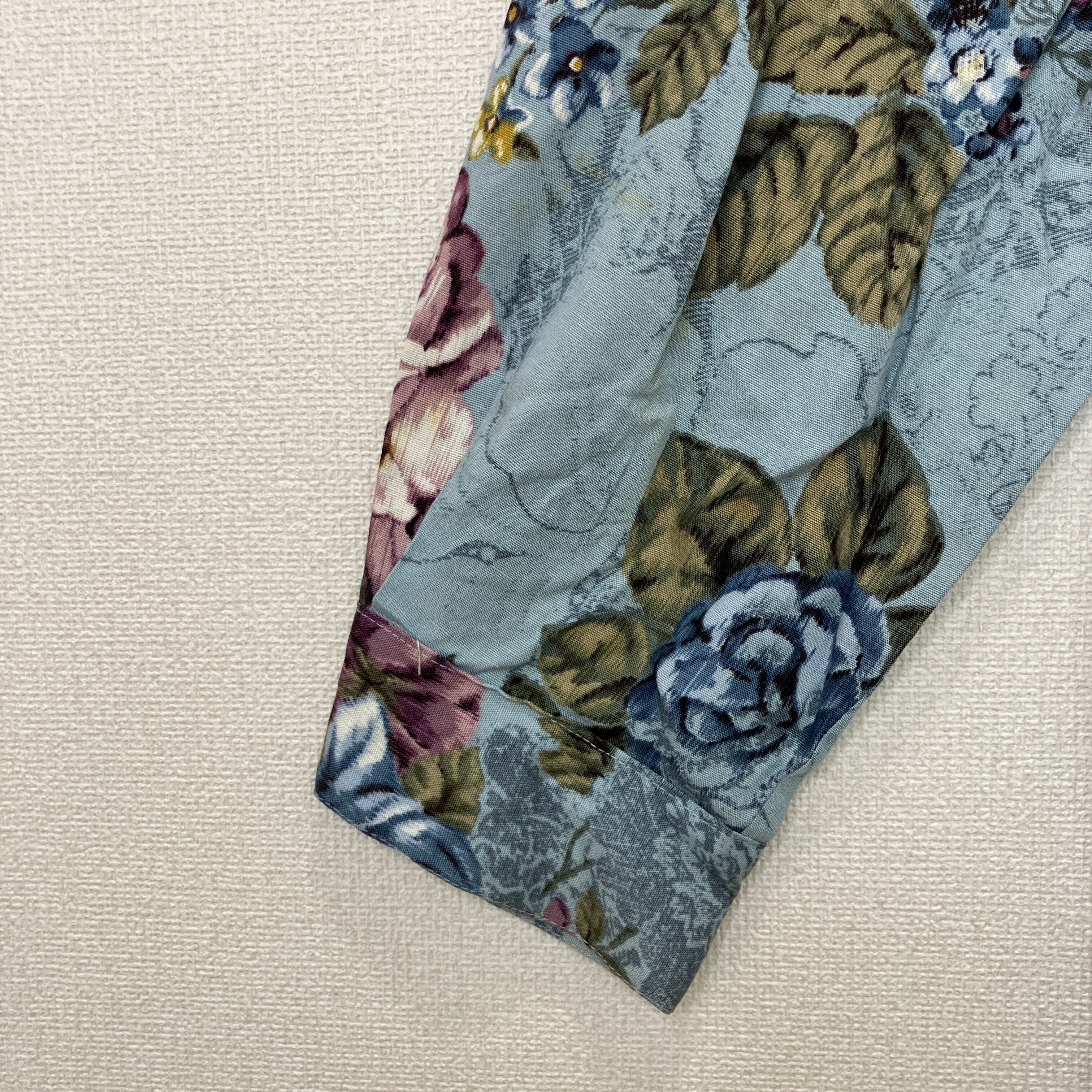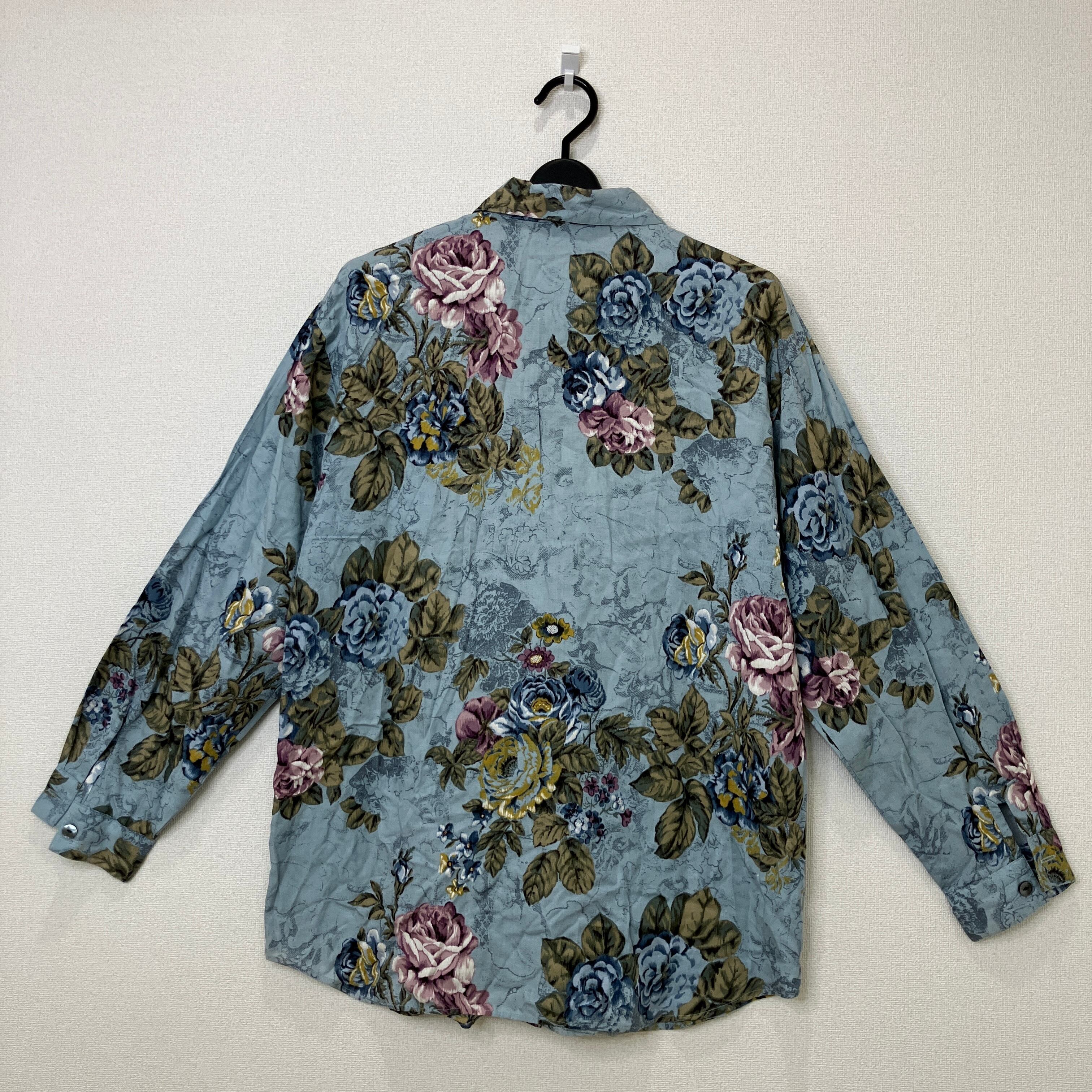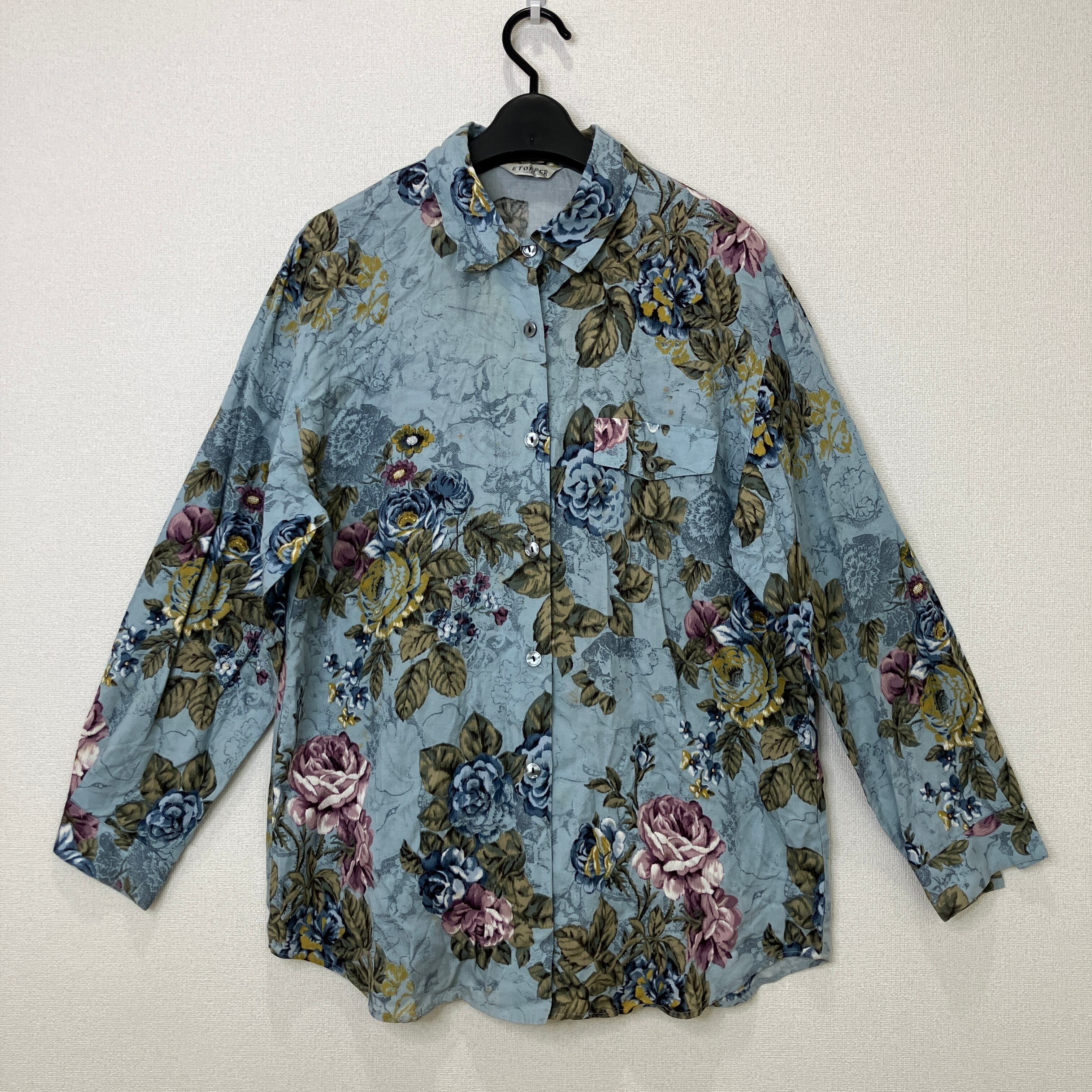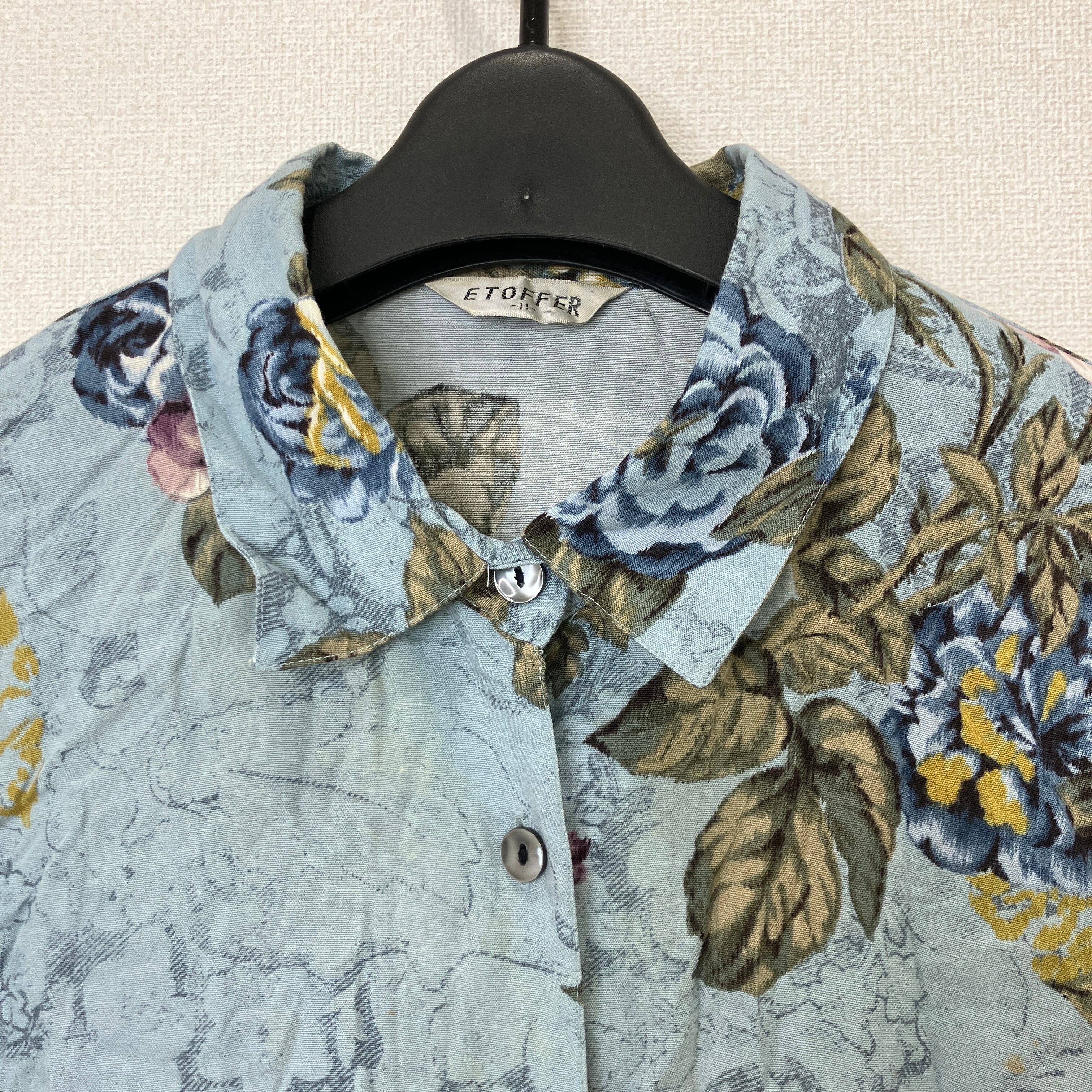 ETOFFER ヴィンテージ風 総柄 フラワー 花柄 長袖シャツ ブルー系 11