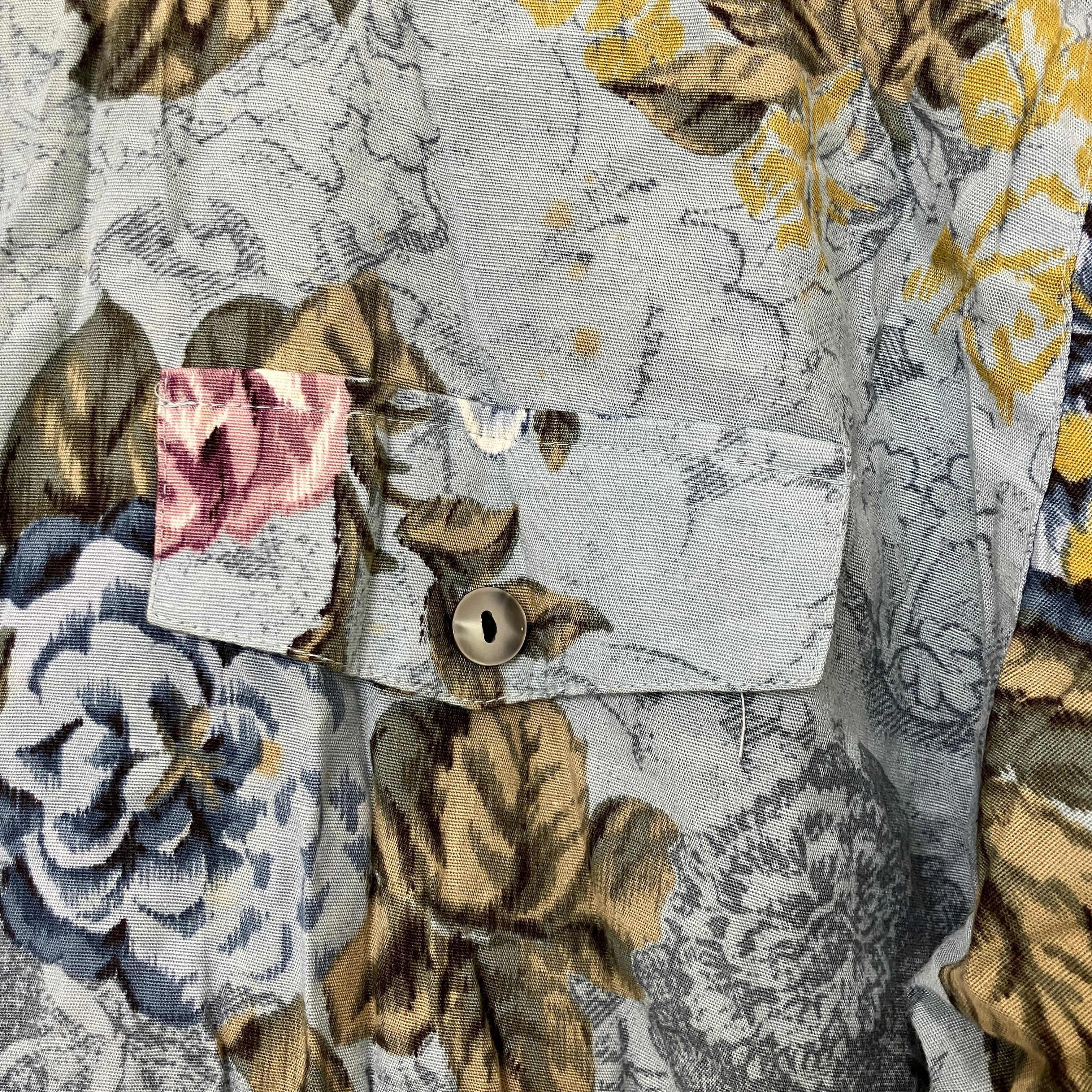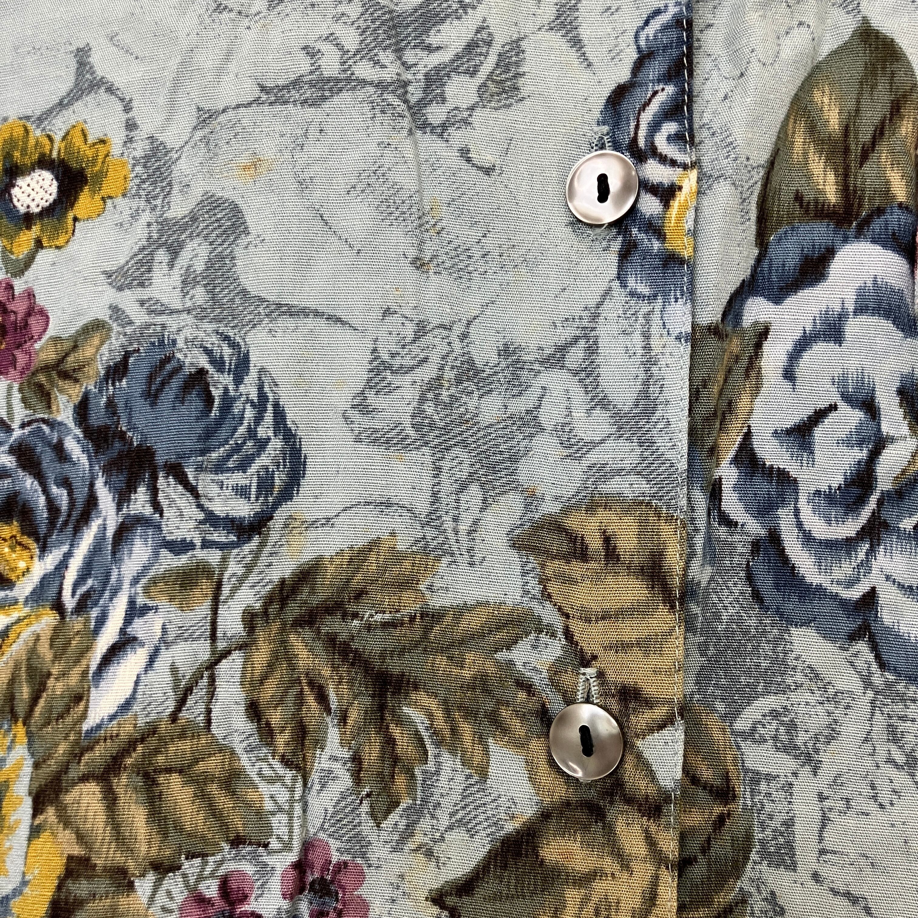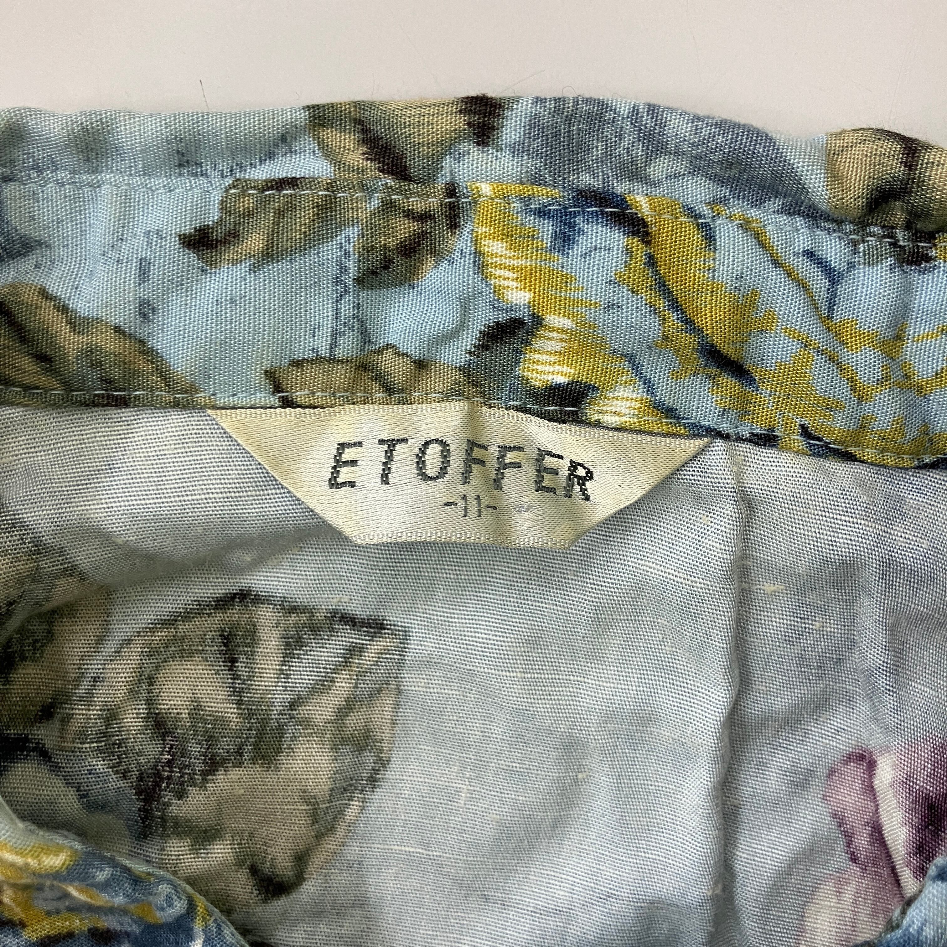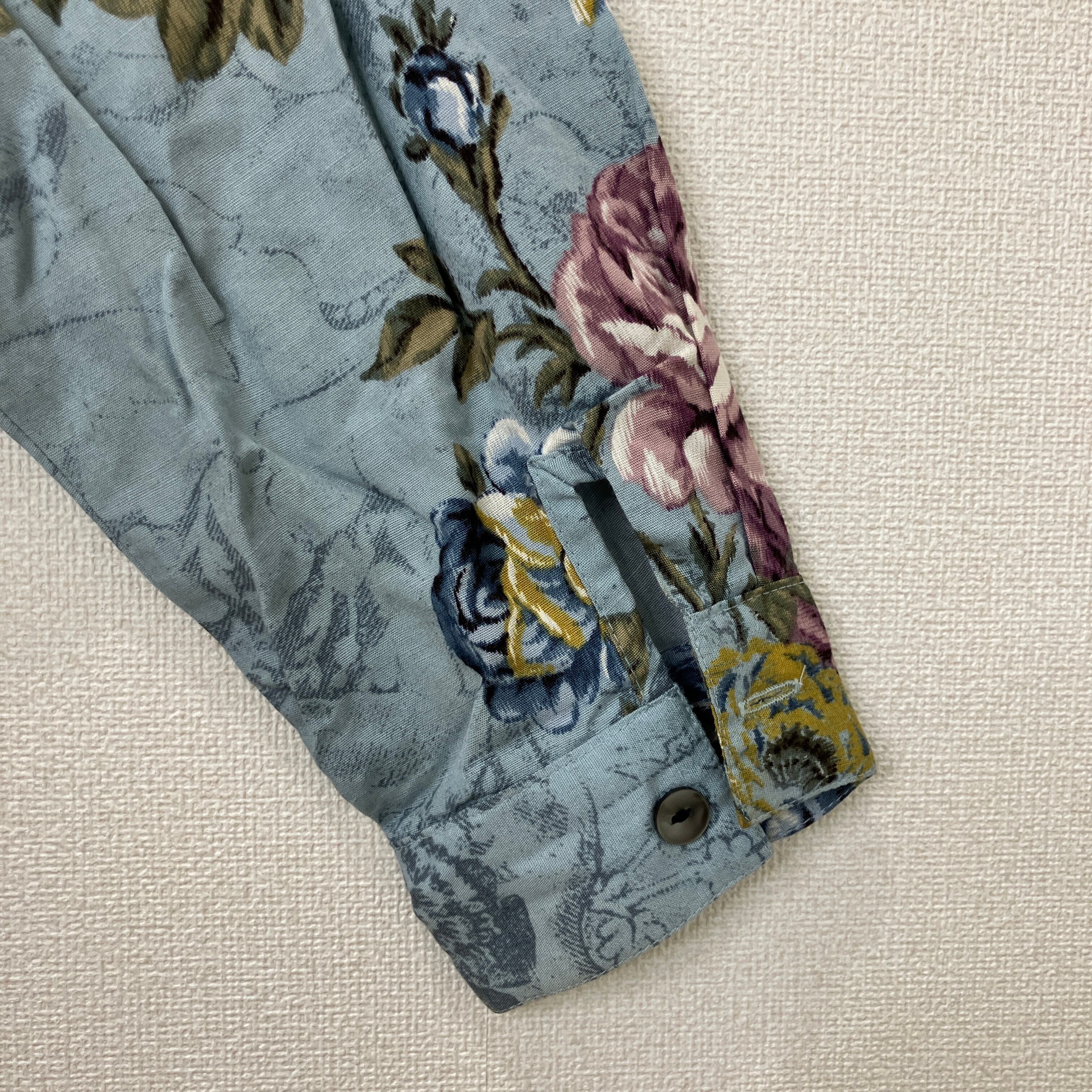 ETOFFER ヴィンテージ風 総柄 フラワー 花柄 長袖シャツ ブルー系 11