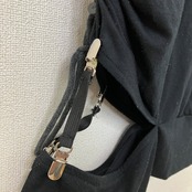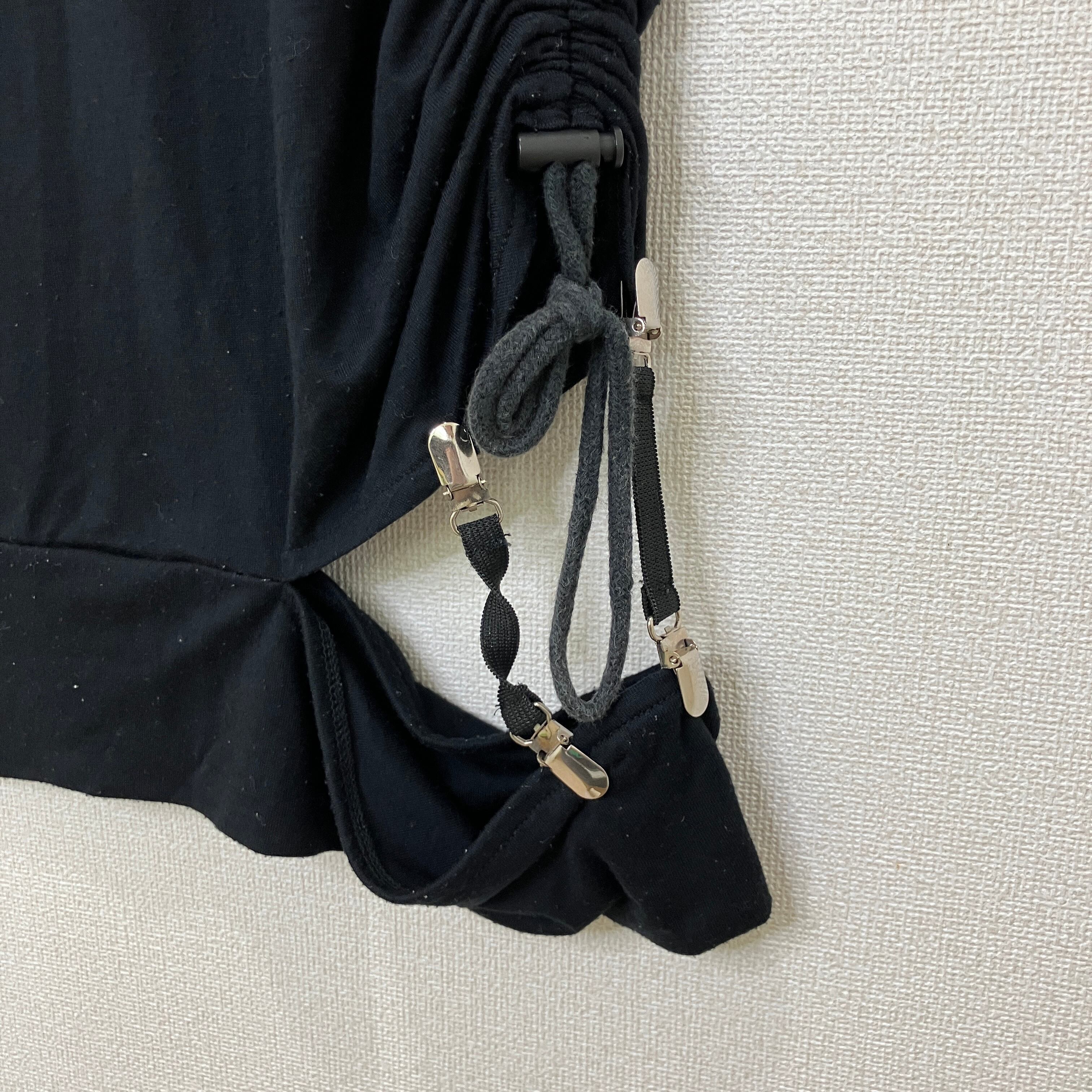 左裾部分にクリップ付きのストラップとドローコードによるギャザーデザインが施されており