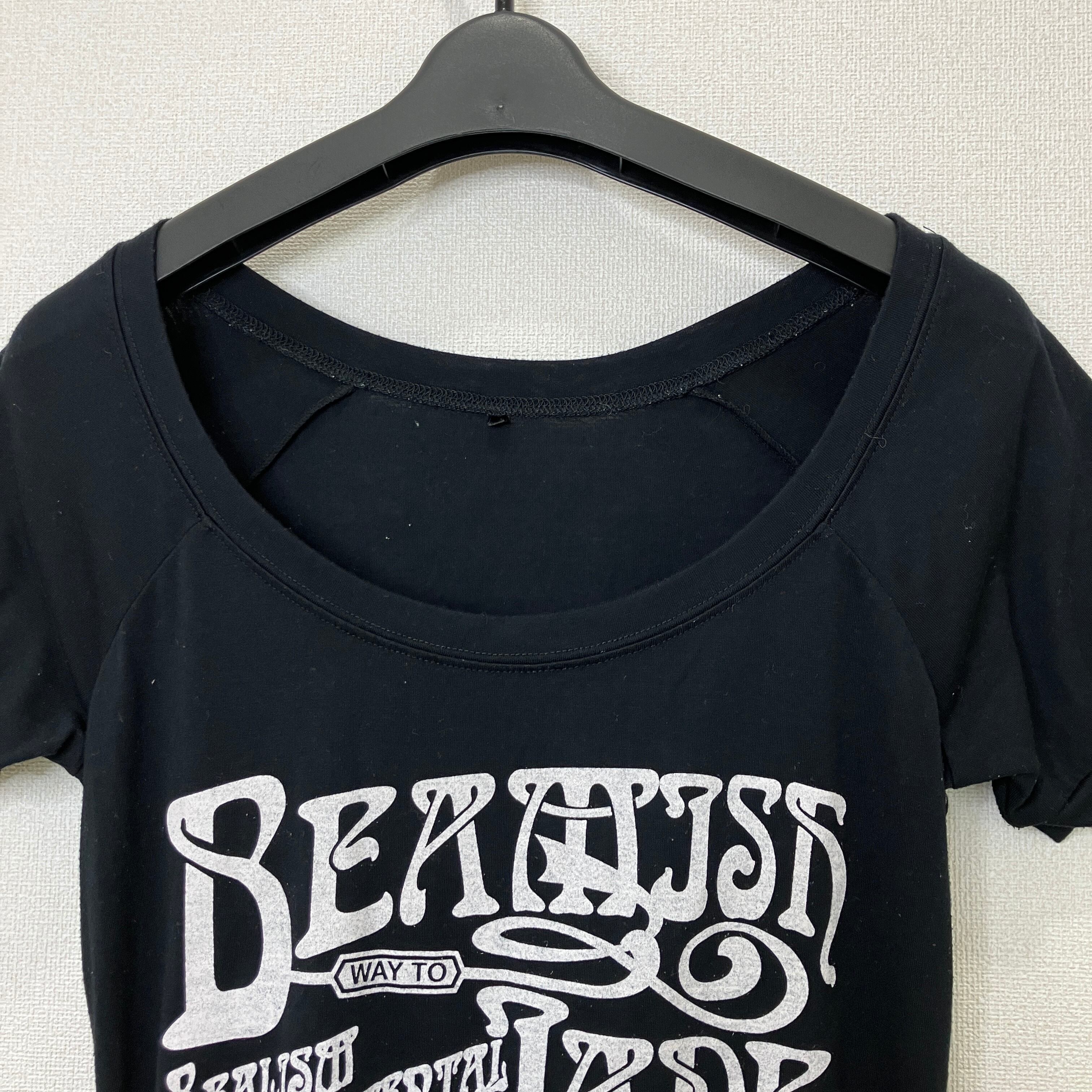 フロントに英字ロゴがプリントされた、タイトなシルエットの半袖カットソーです。