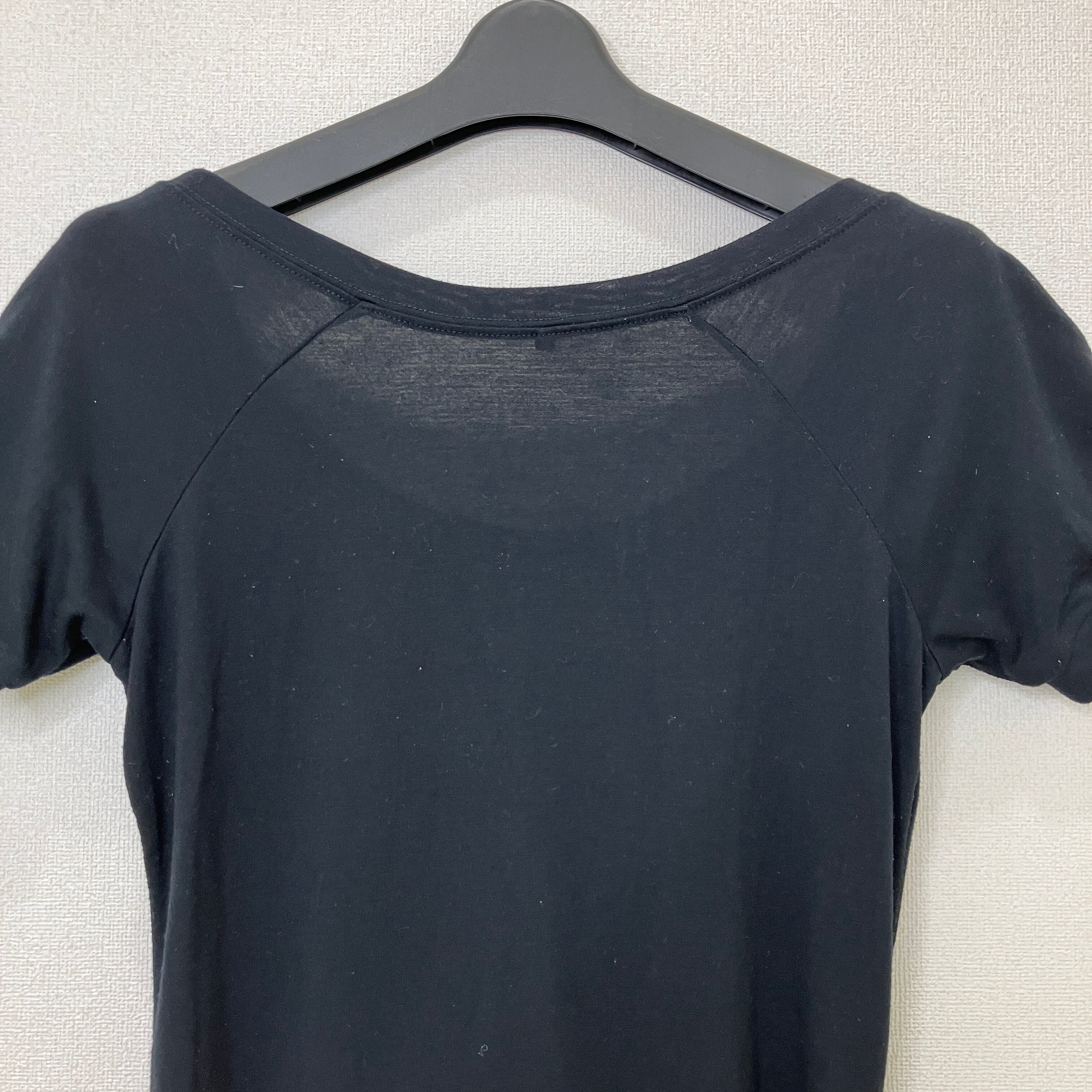 GRAZIE サイドギャザー クリップデザイン プリントカットソー ブラック