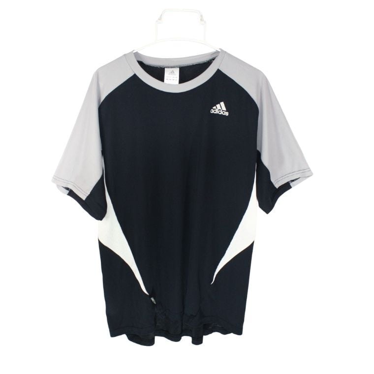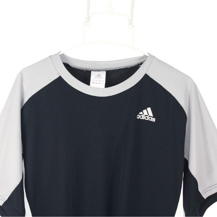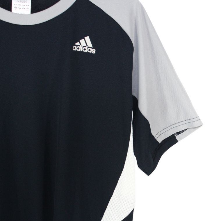 adidas 半袖 スポーツTシャツ ブラック×グレー M ロゴ入り トレーニング ランニング
