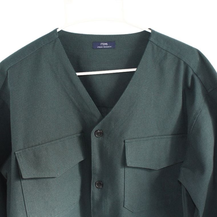 URBAN RESEARCH ITEMS ノーカラーシャツジャケット M 緑系 メンズ レディース兼用