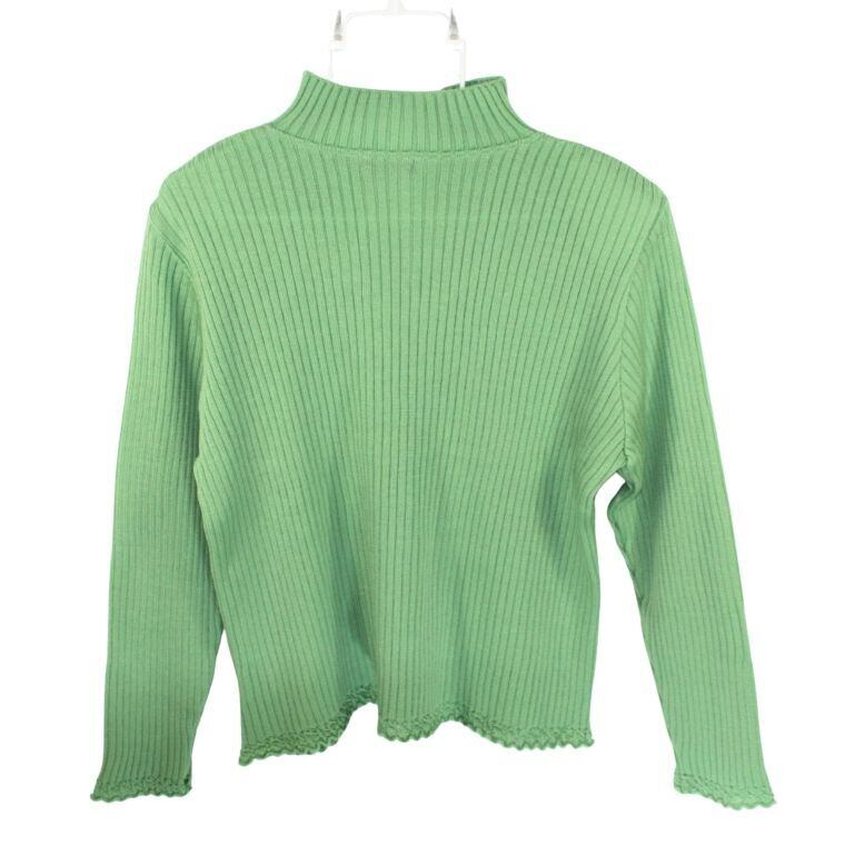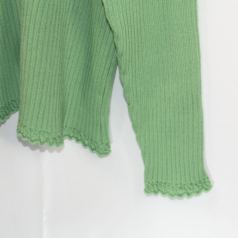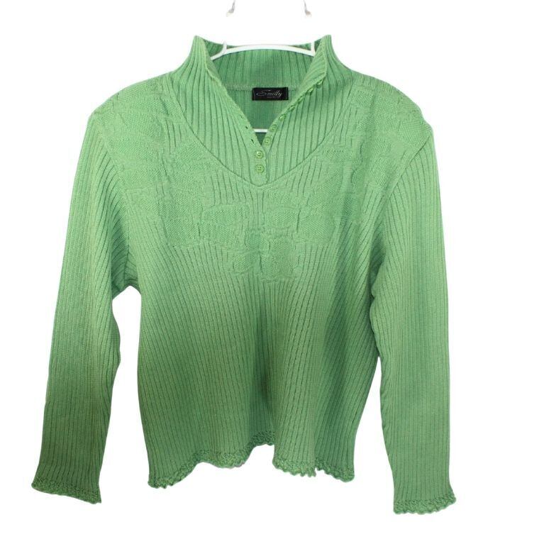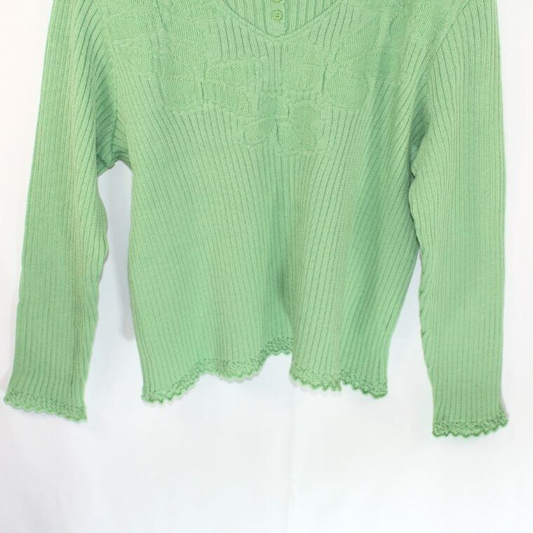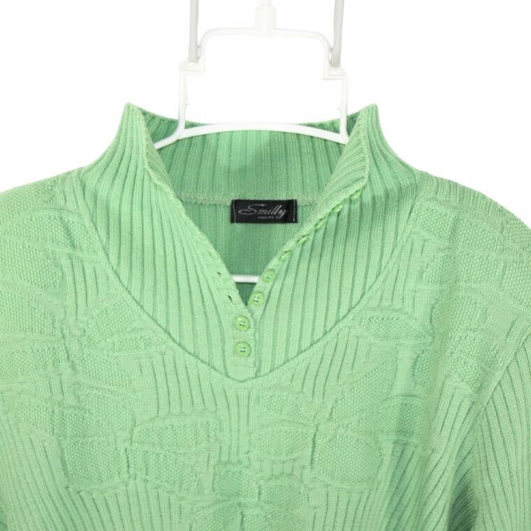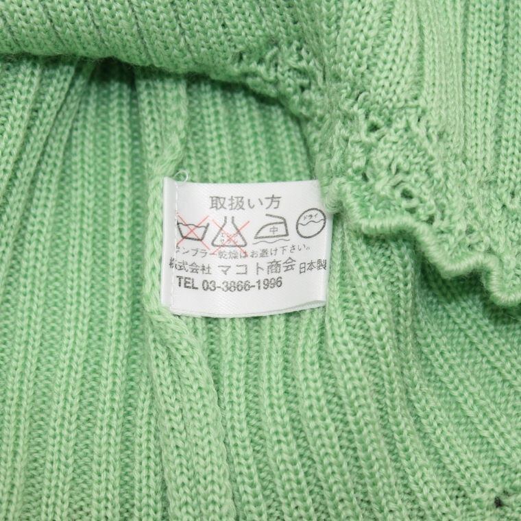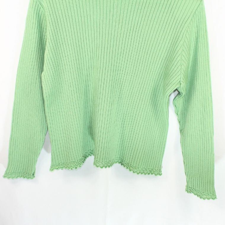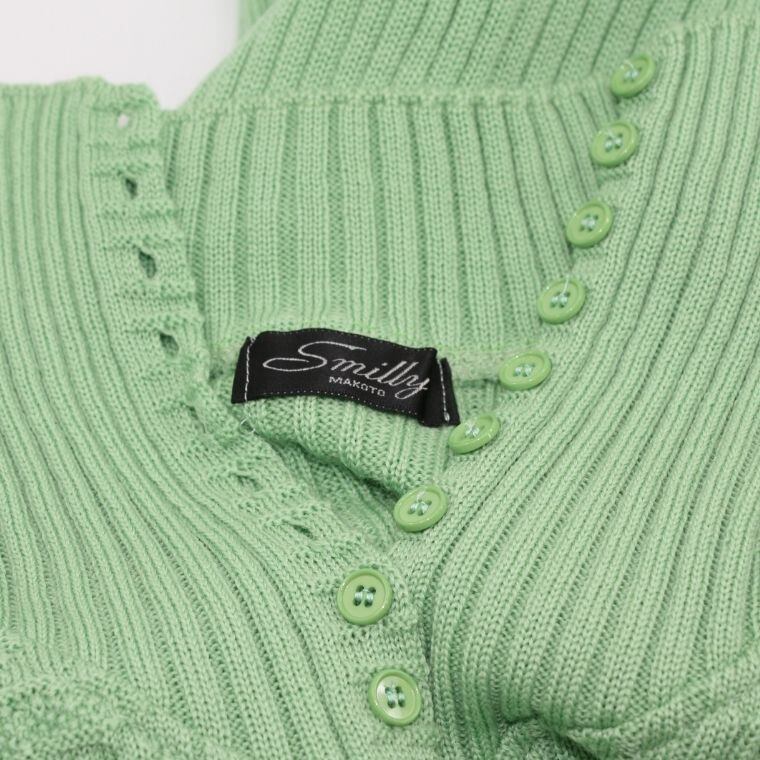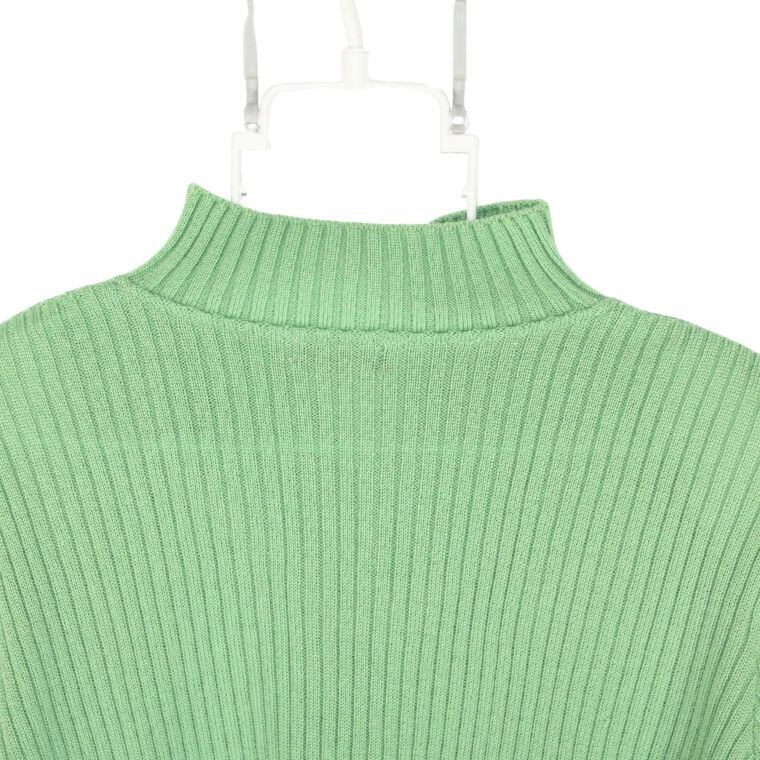 Smilly Makoto ウール100% リブニット セーター グリーン レディース 肩パッド付き 長袖