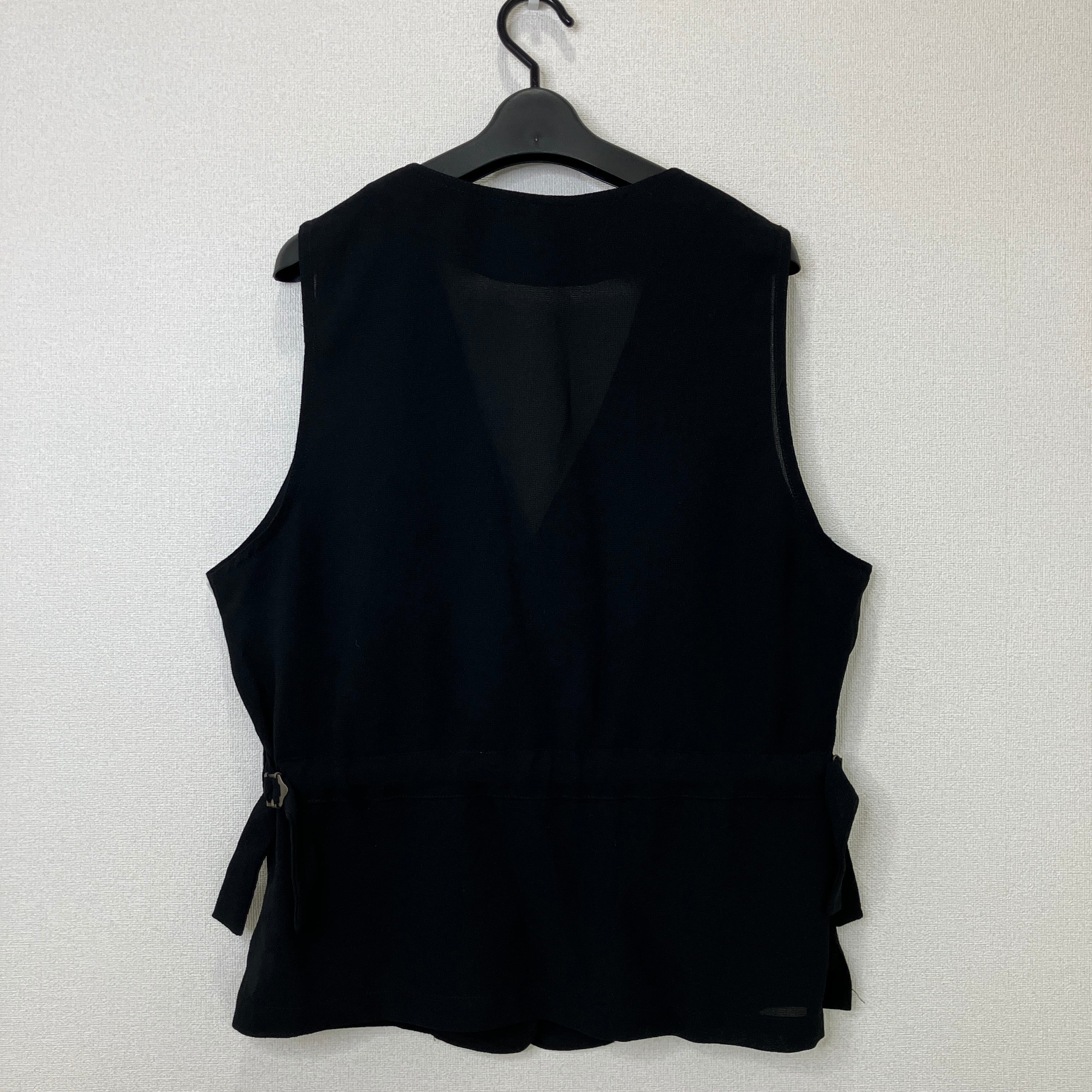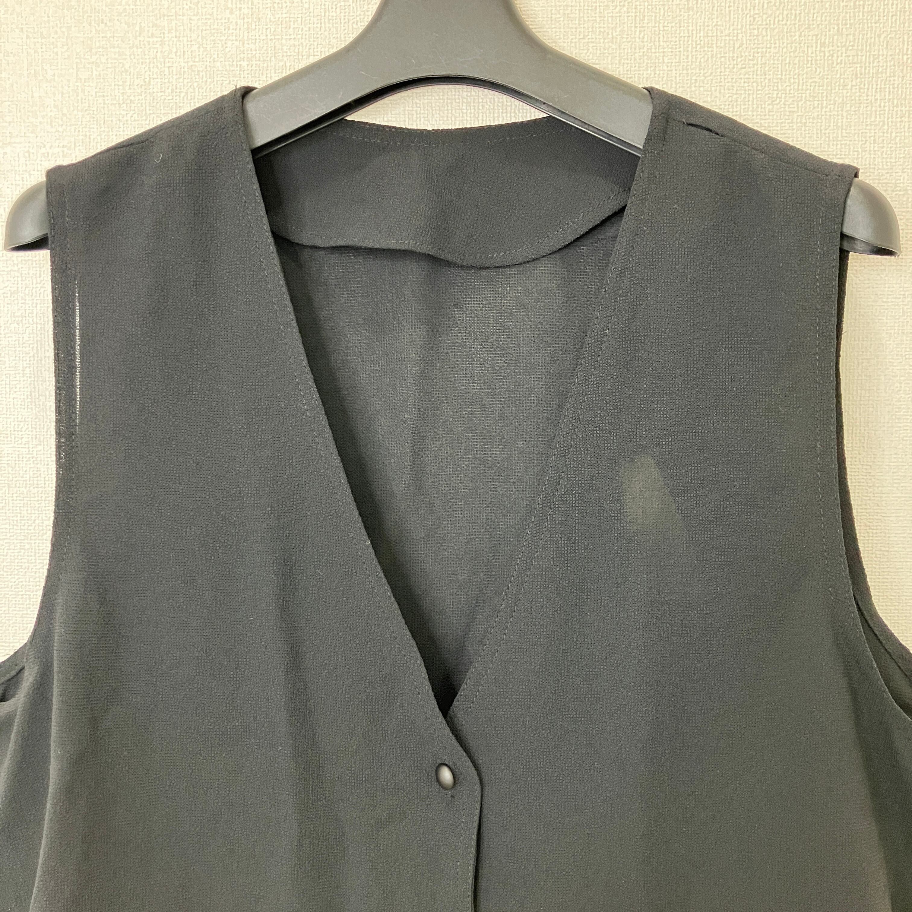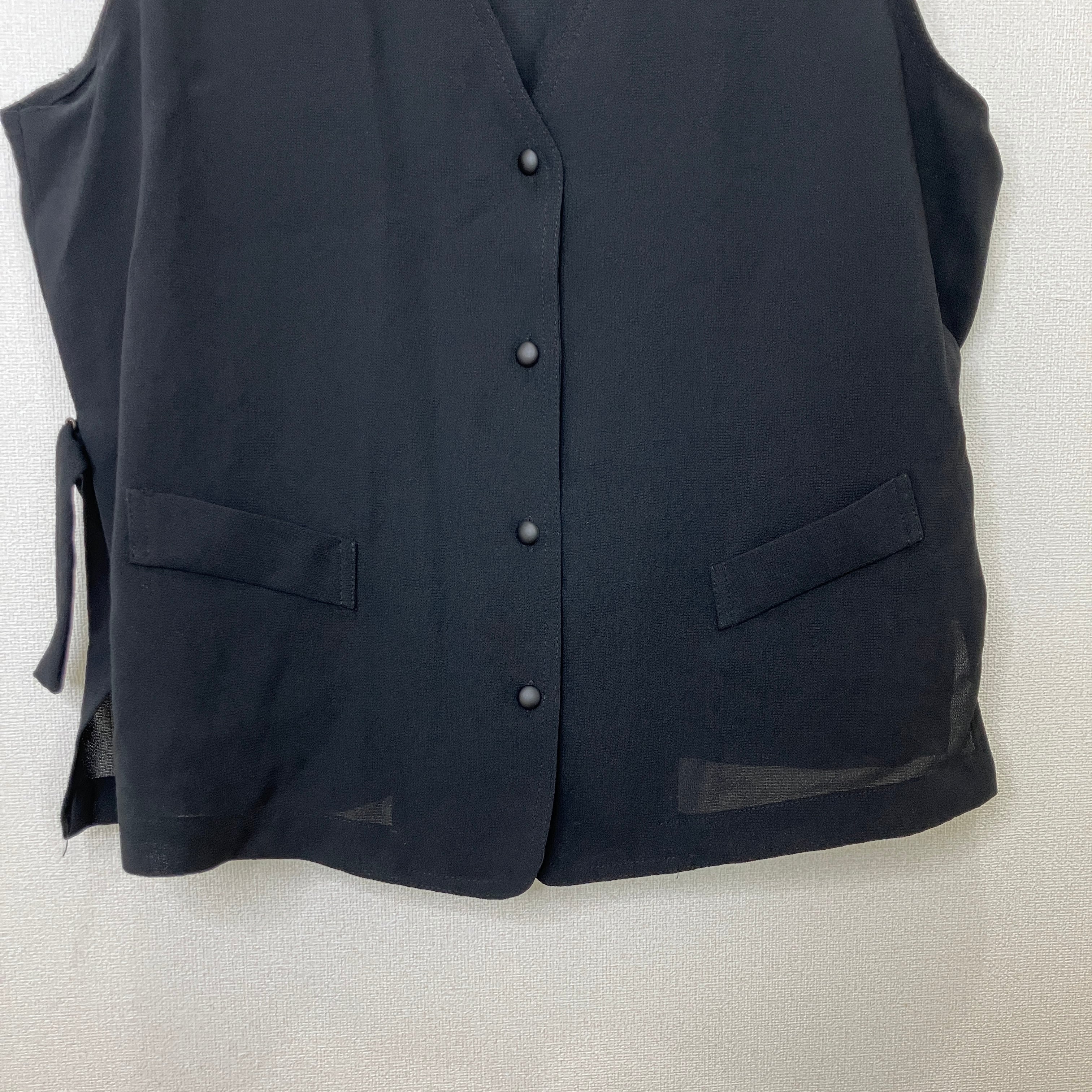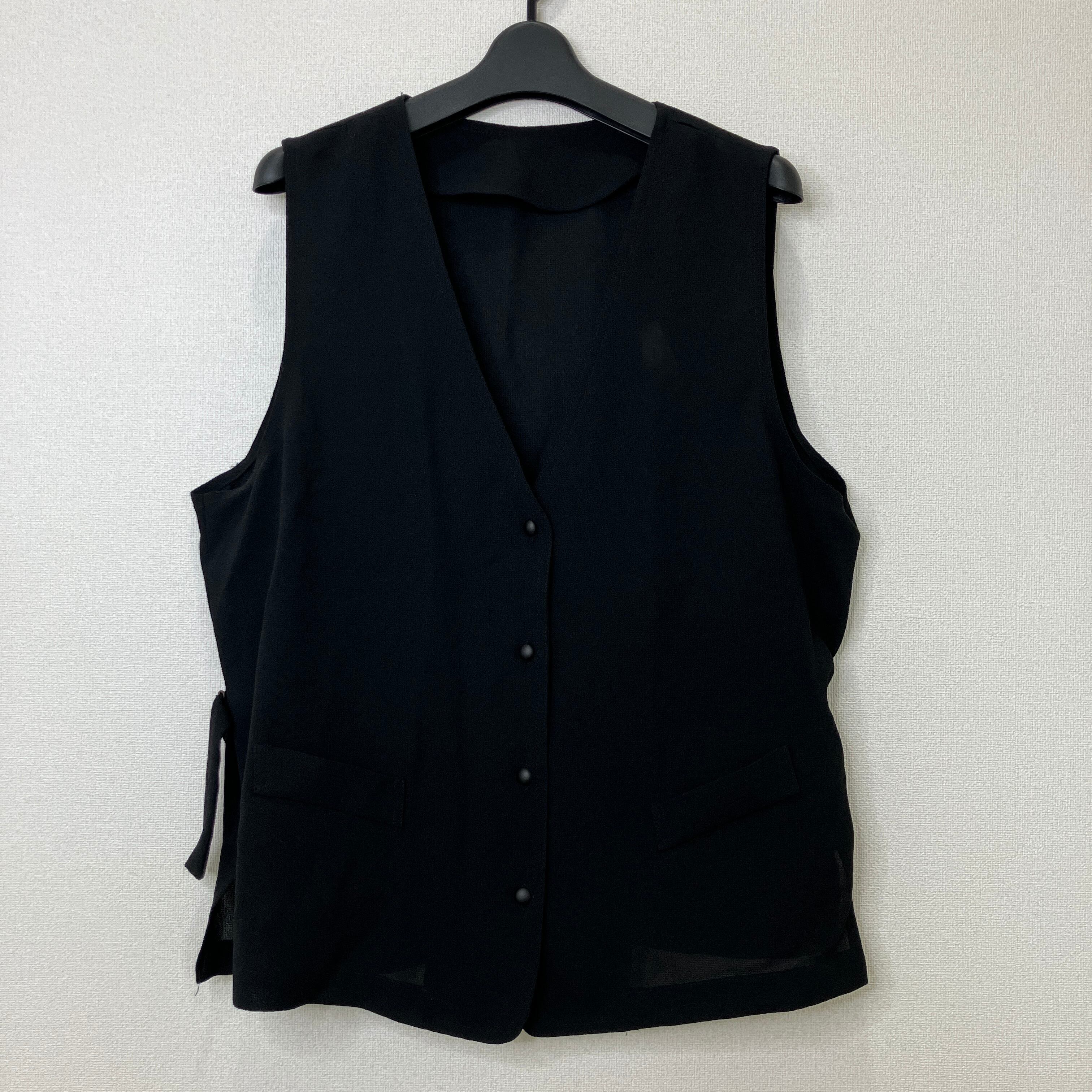 ブラック Vネック ベスト(サイドスリット・リボン付き)
