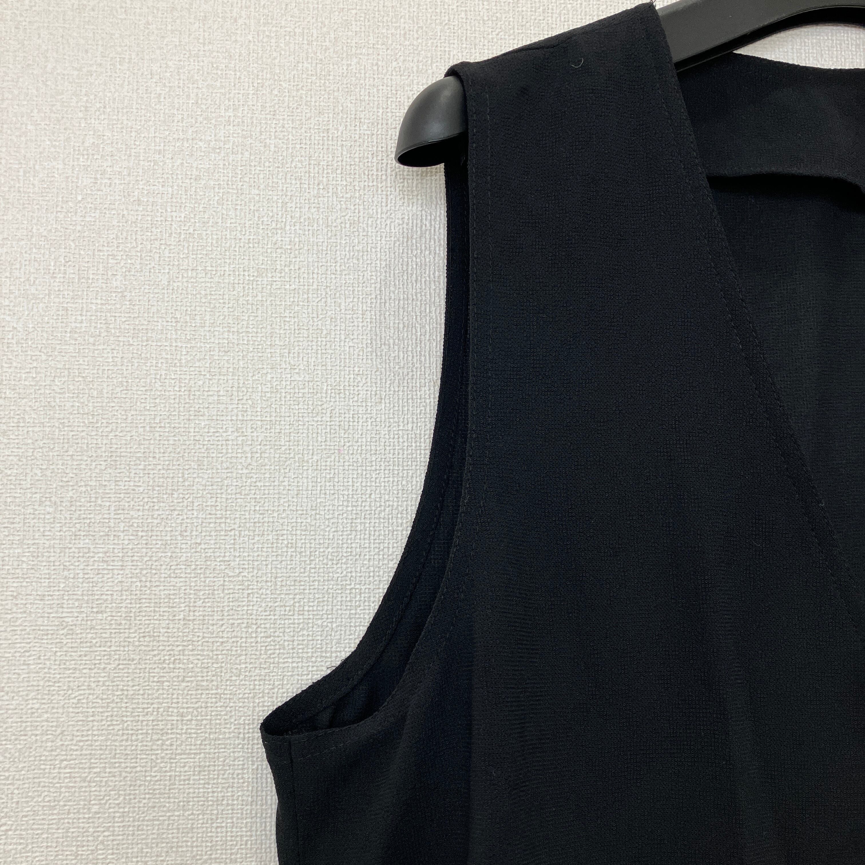 シンプルで着回しやすい黒のVネックベストです。