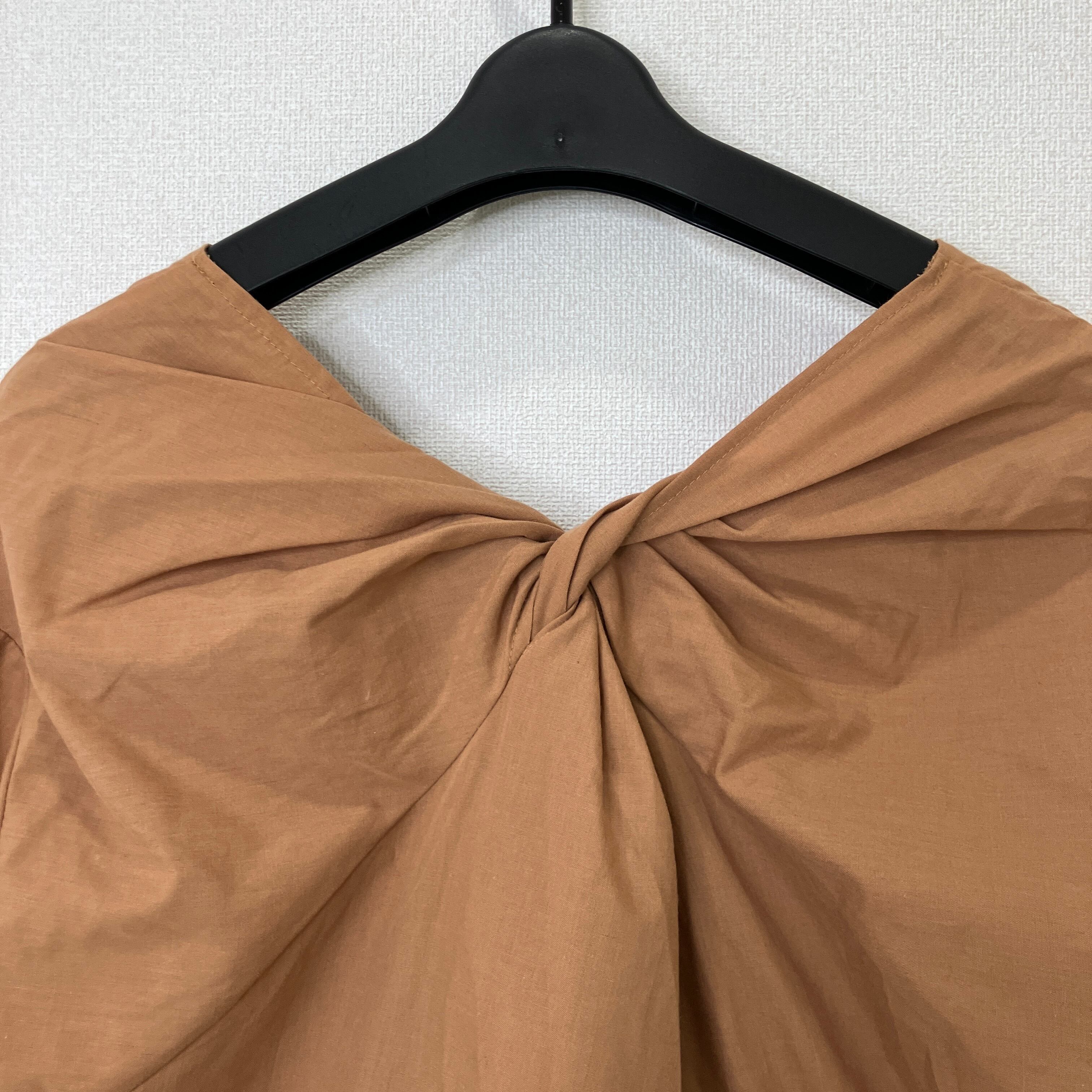 L'espoir(レスポワール)胸元刺繍 バックねじりデザイン ブラウス ブラウン
