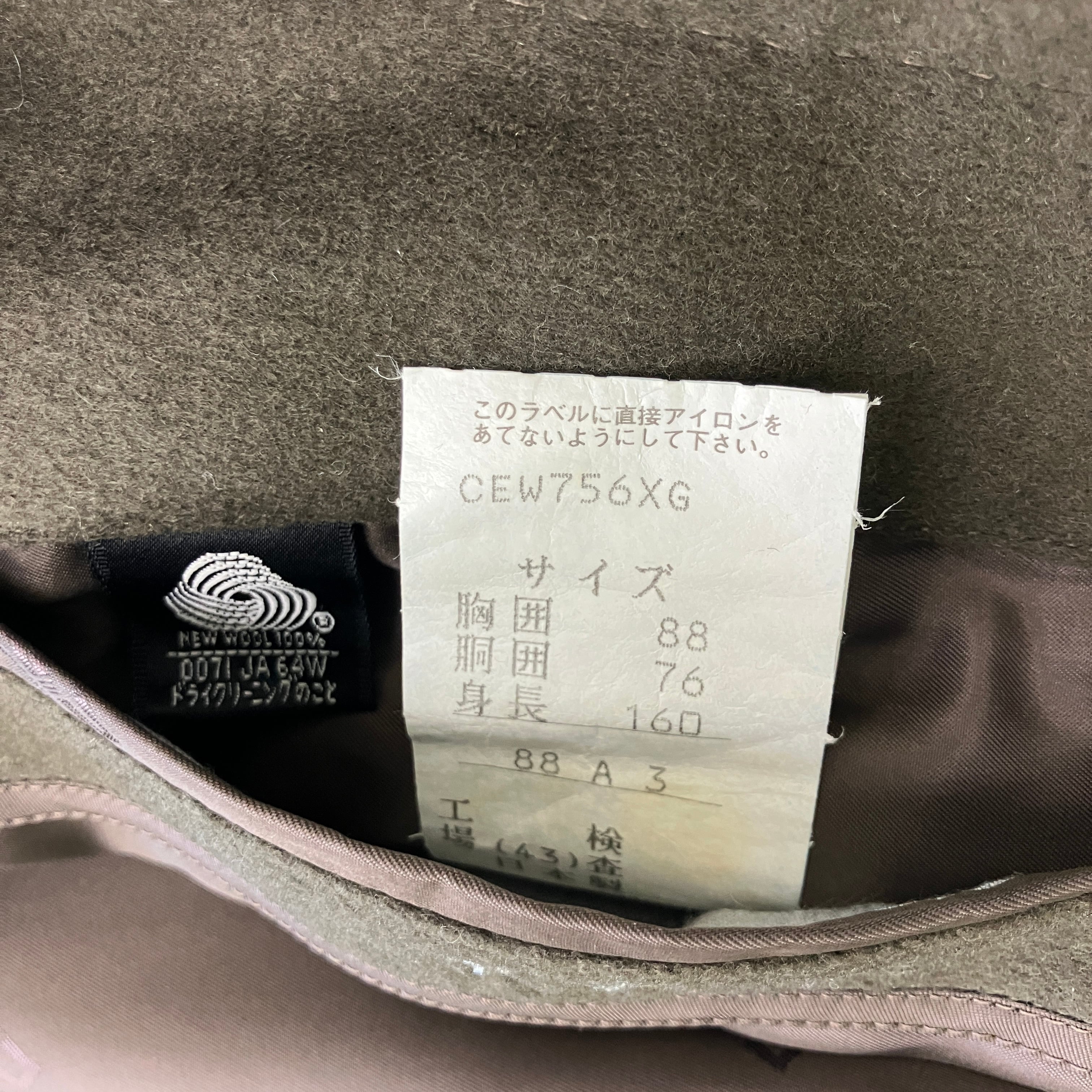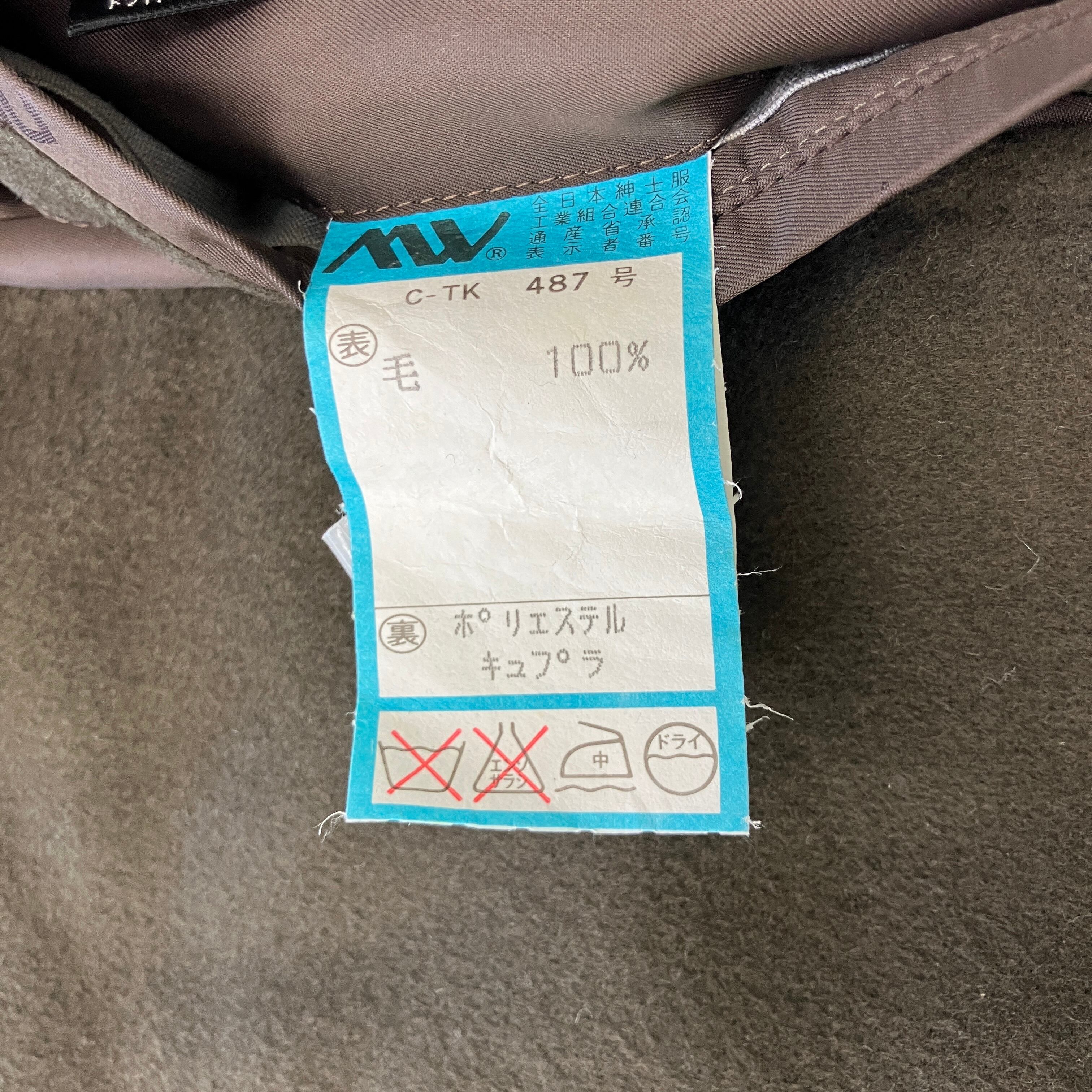 (ブランド刻印・ロゴなし。全日本紳士服工業組合連合会承認品)