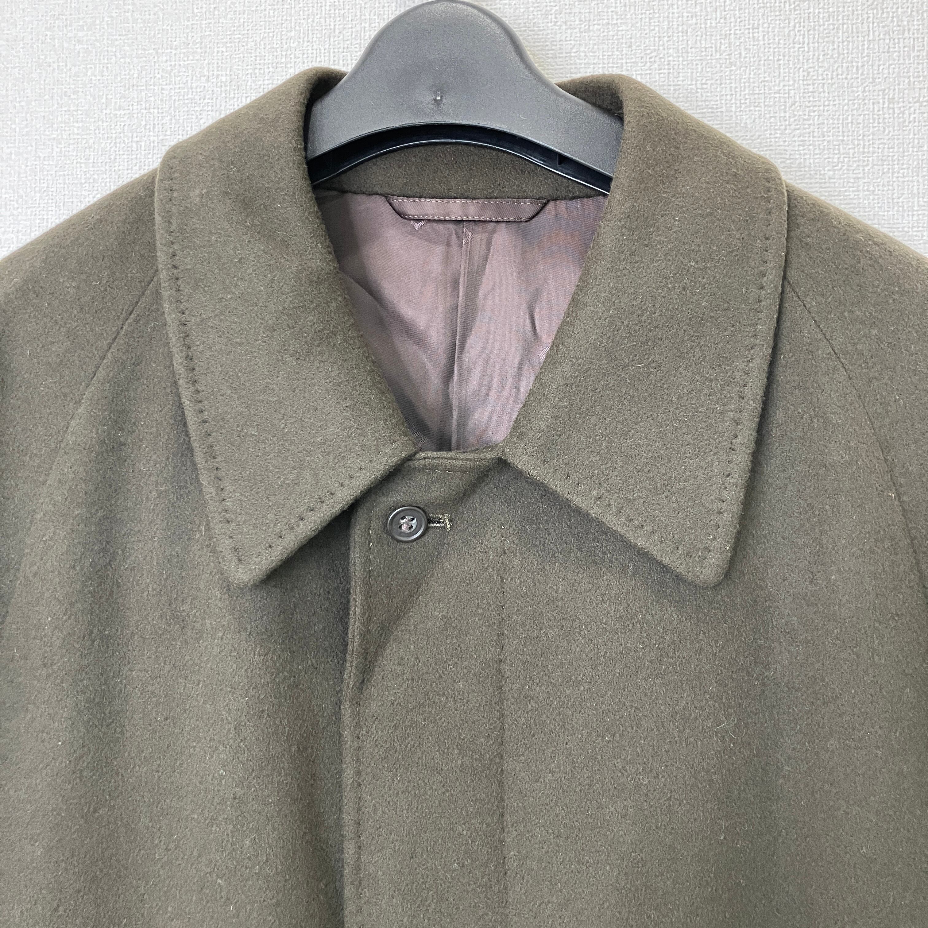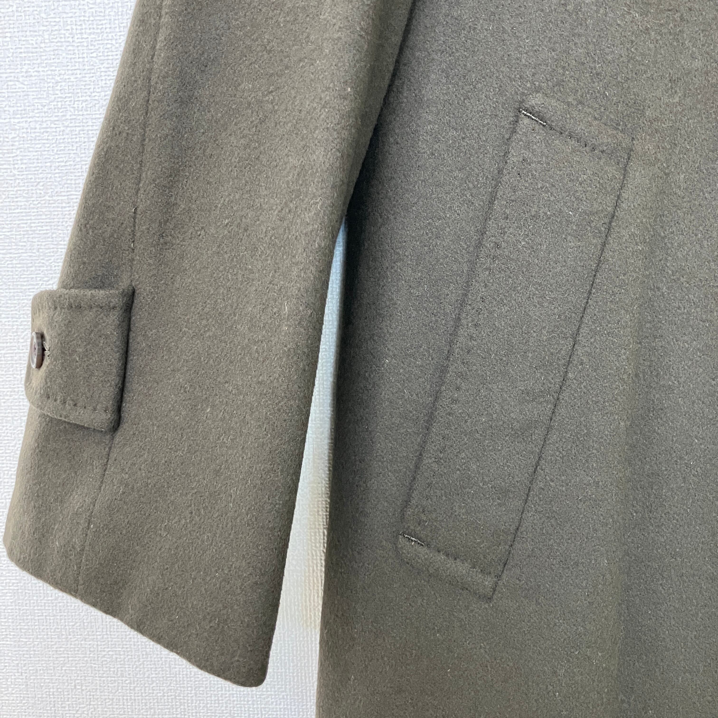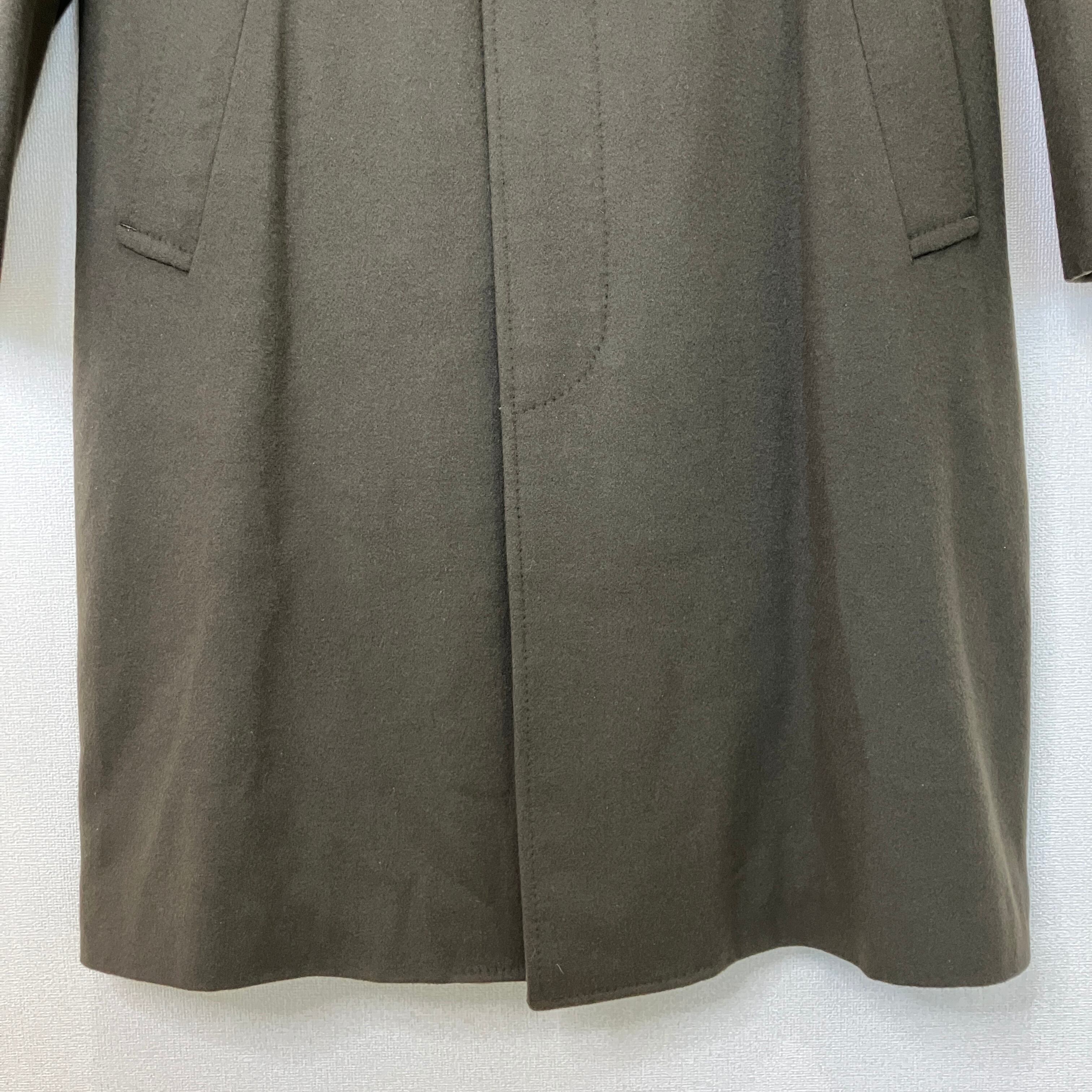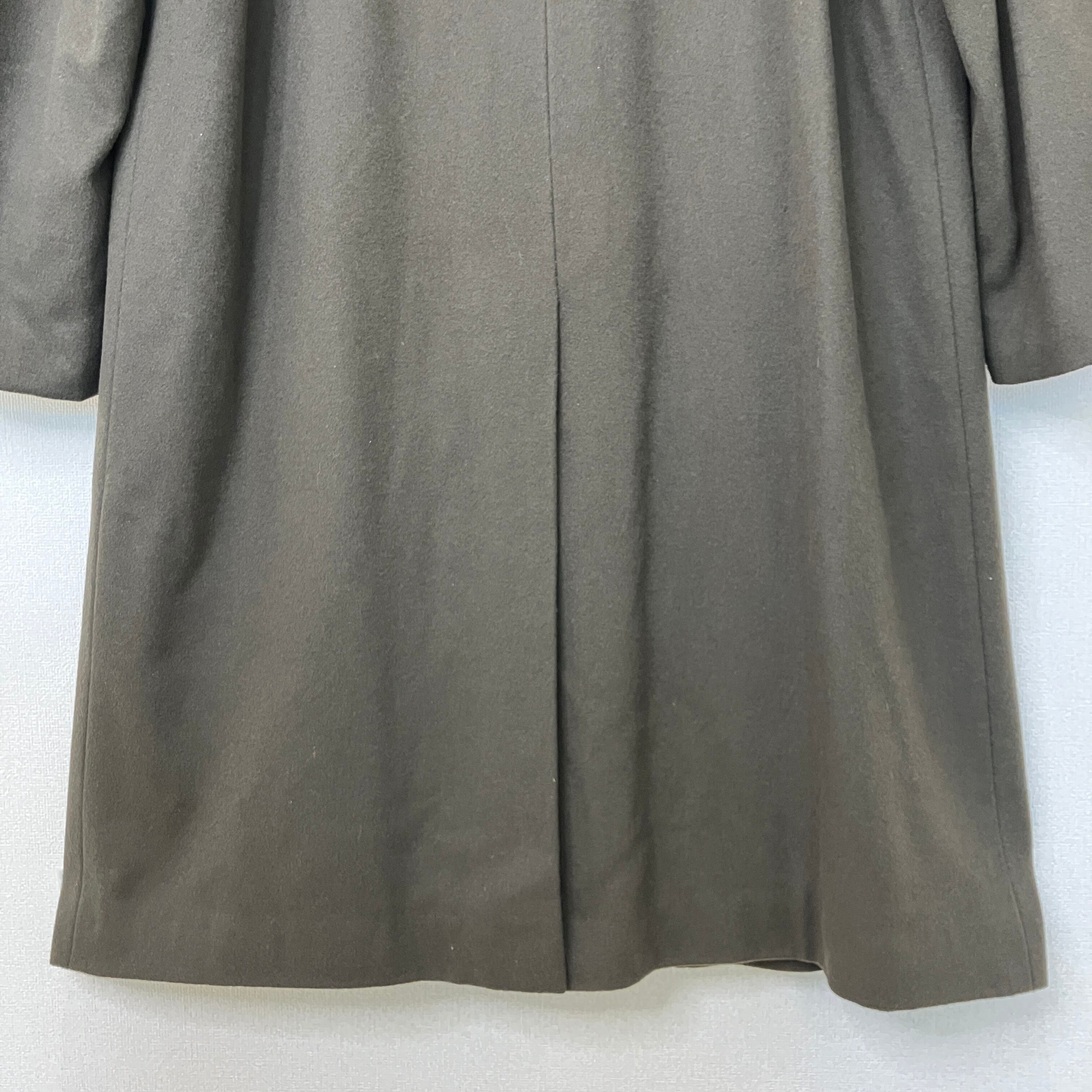 ヴィンテージ ウール100% ステンカラー ロングコート 比翼仕立て カーキブラウン
