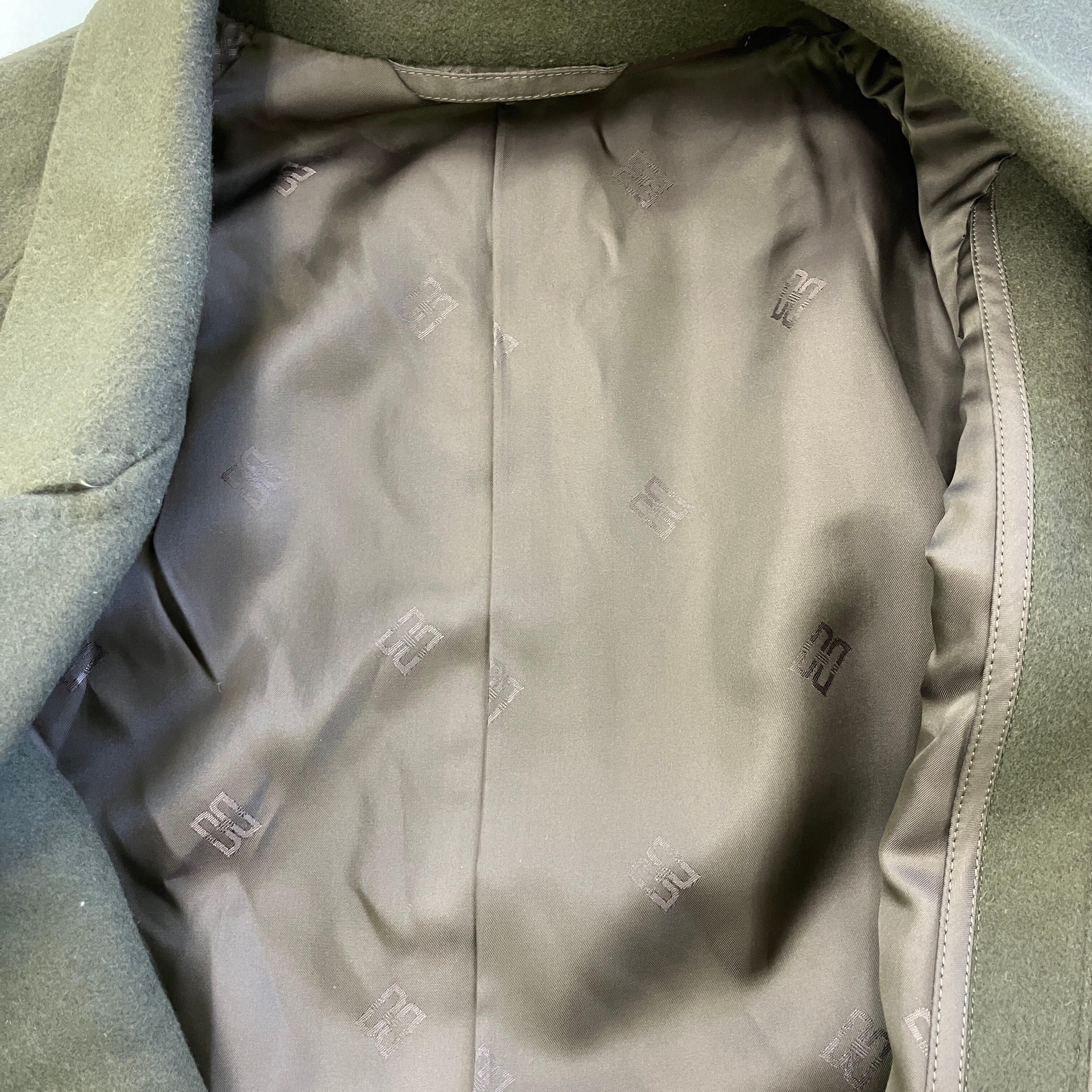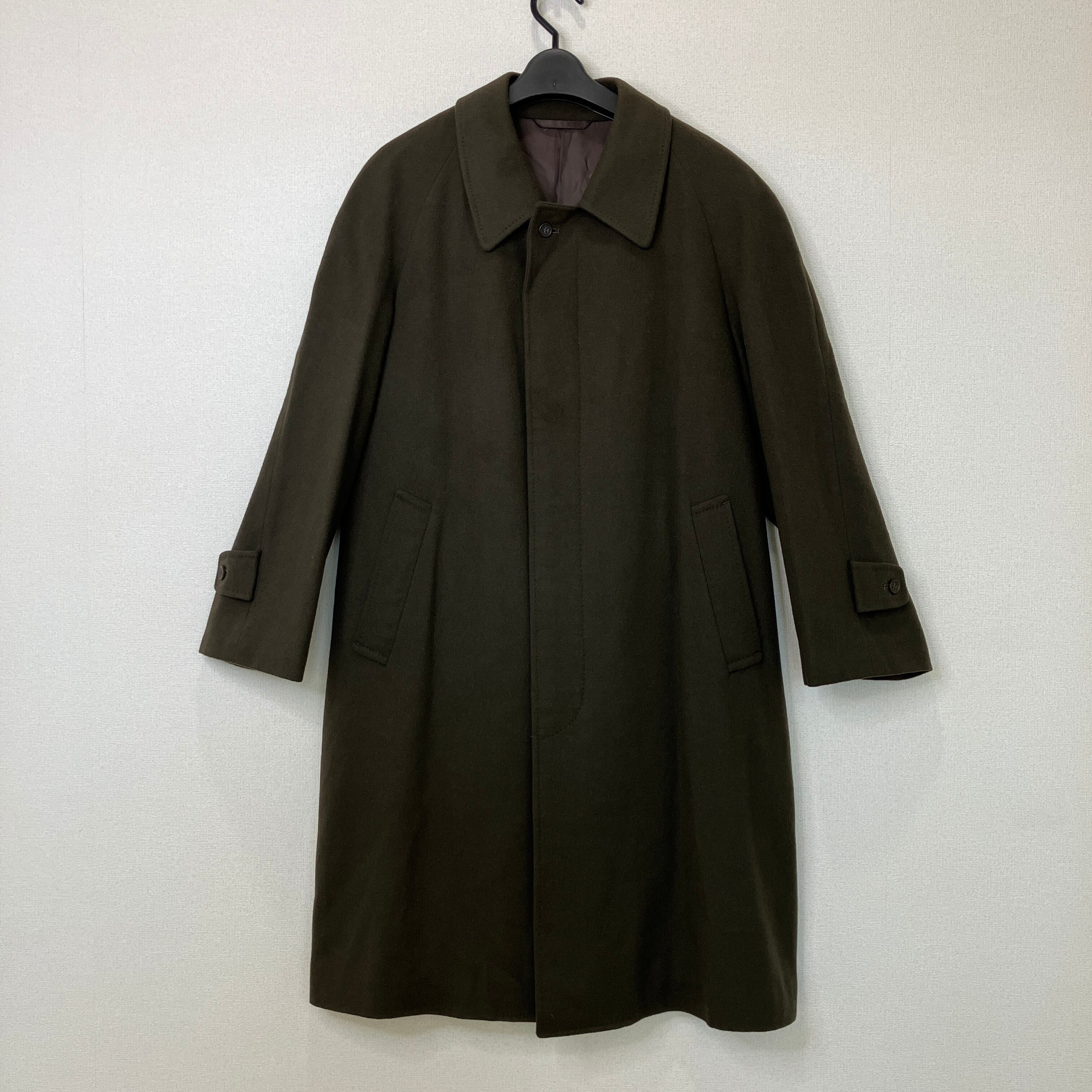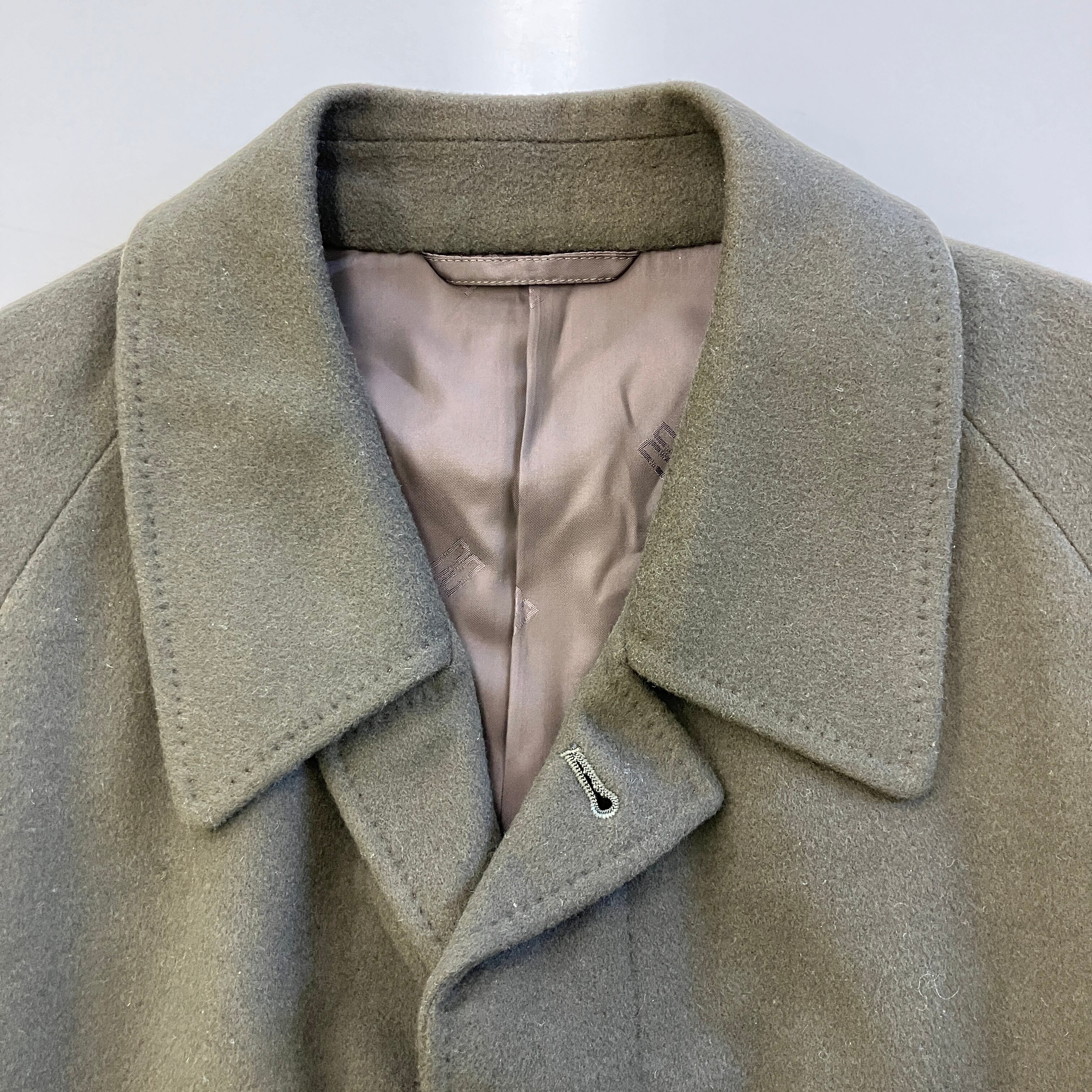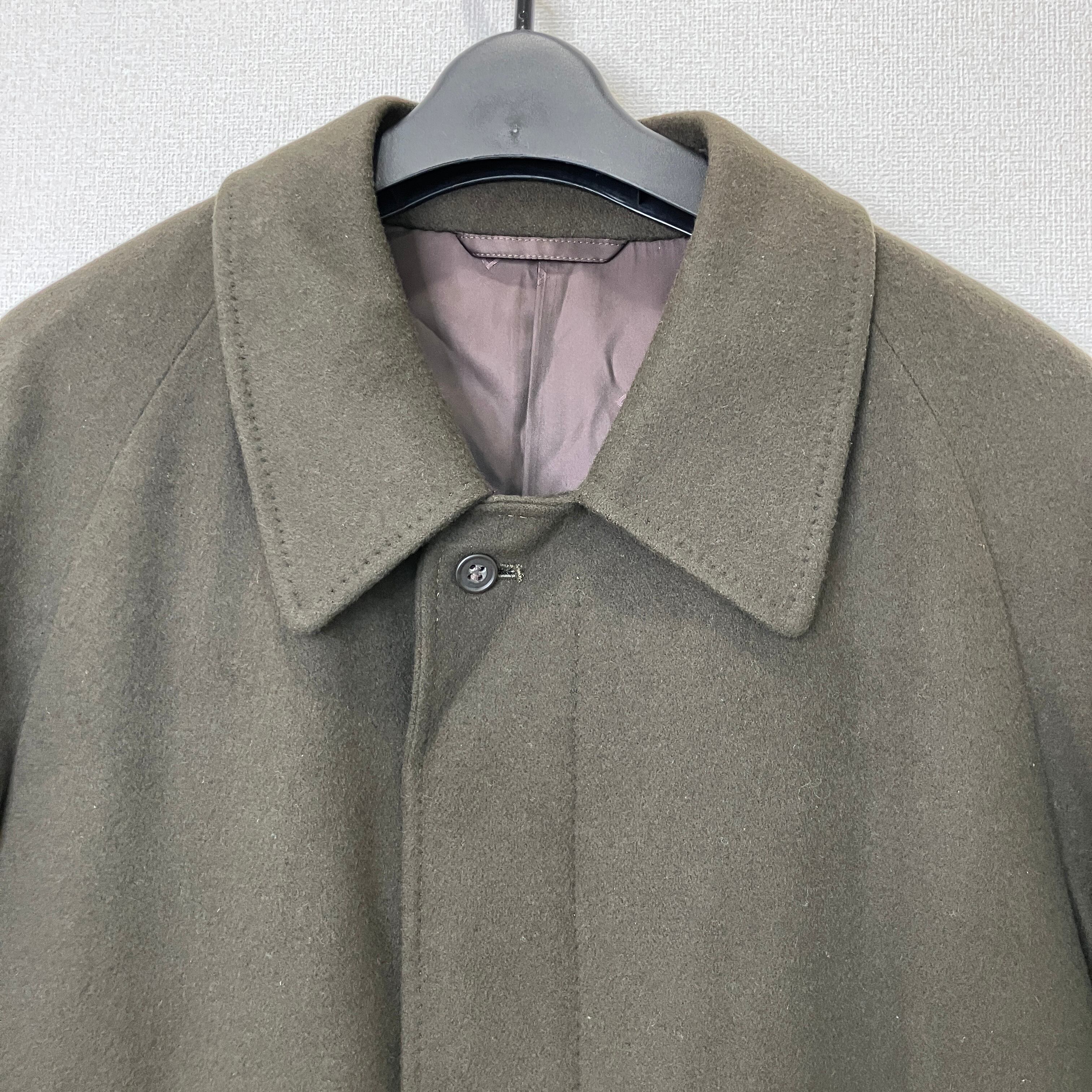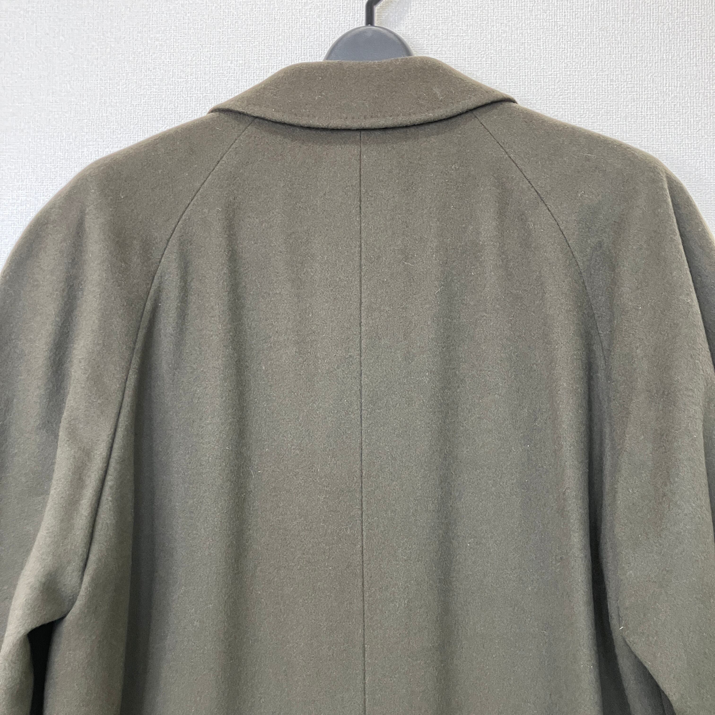 ヴィンテージ ウール100% ステンカラー ロングコート 比翼仕立て カーキブラウン