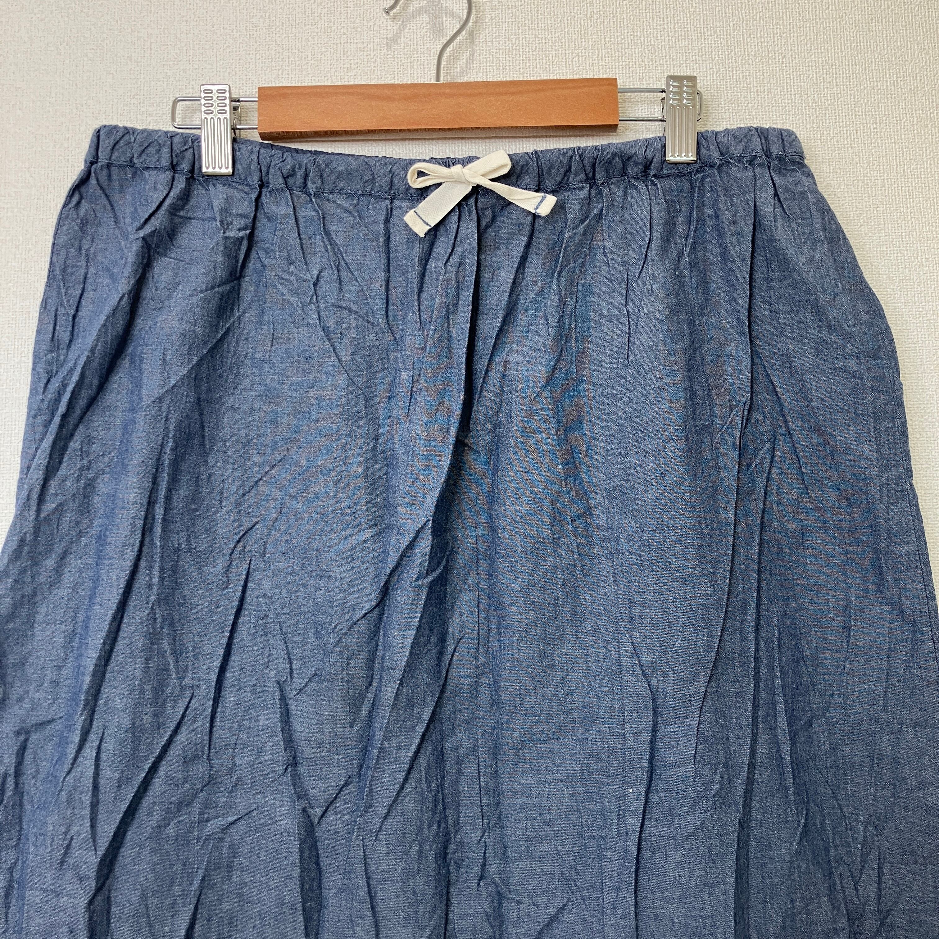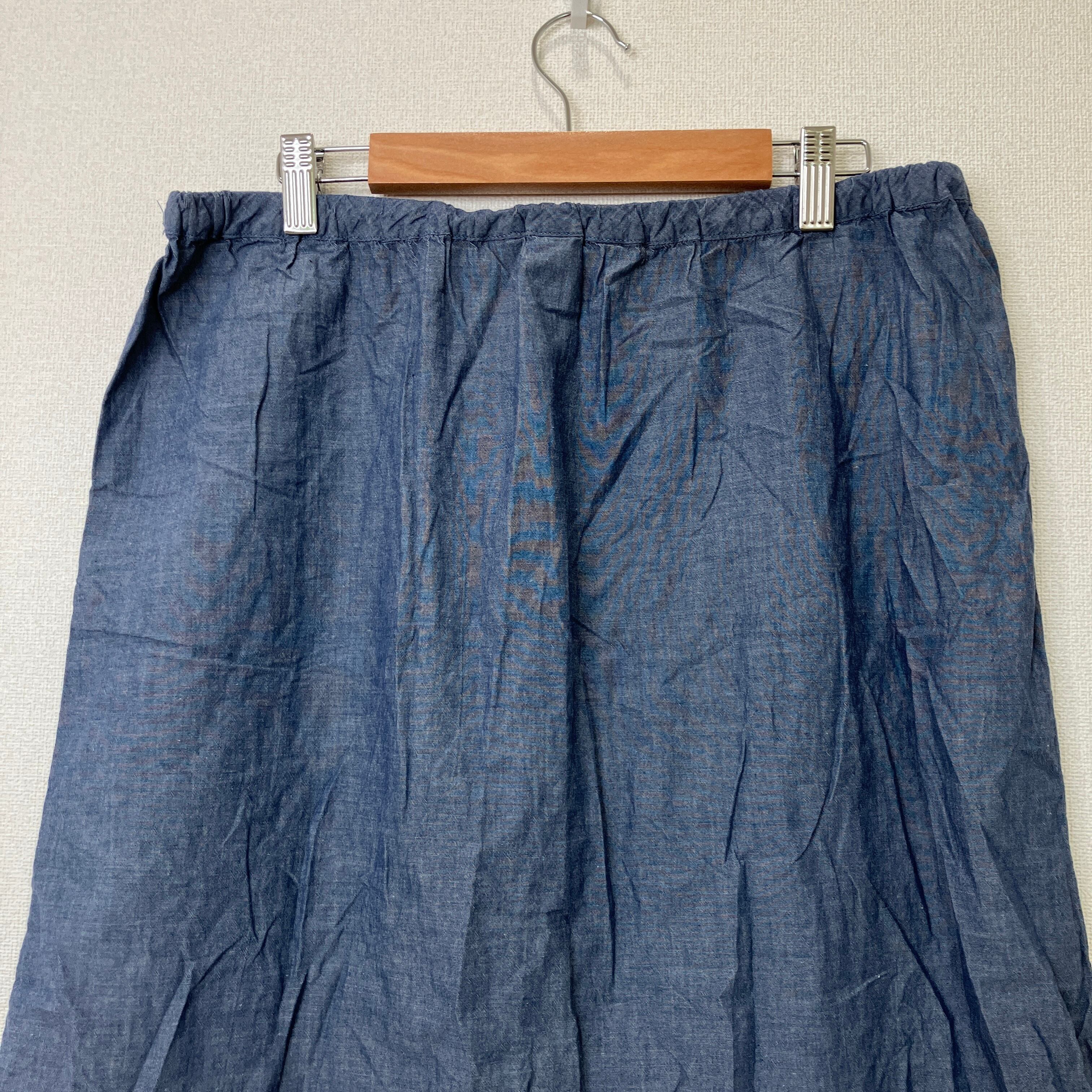 MUJI 無印良品 シャンブレー ロングスカート ブルー Lサイズ ウエストゴム 綿100 シャンブレー