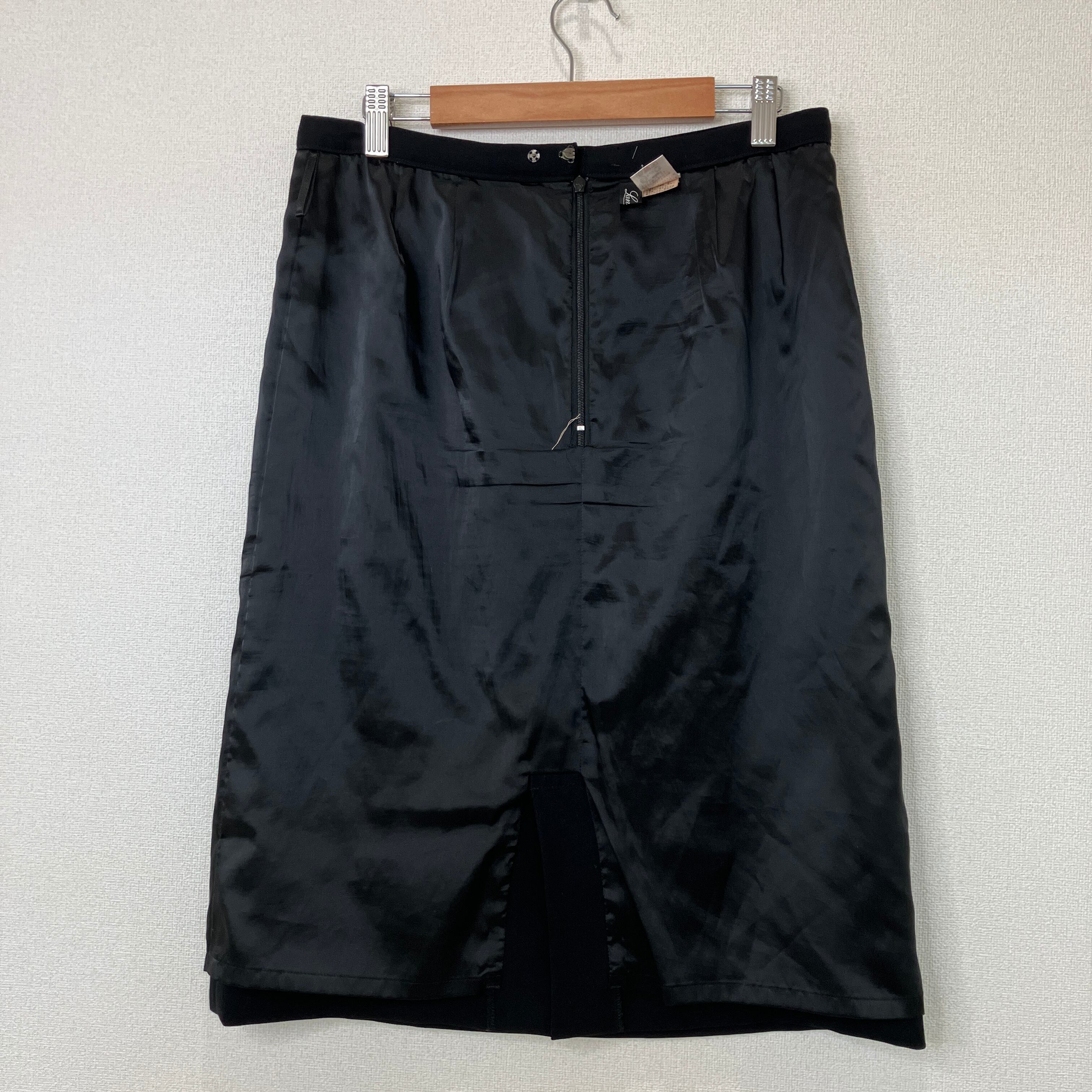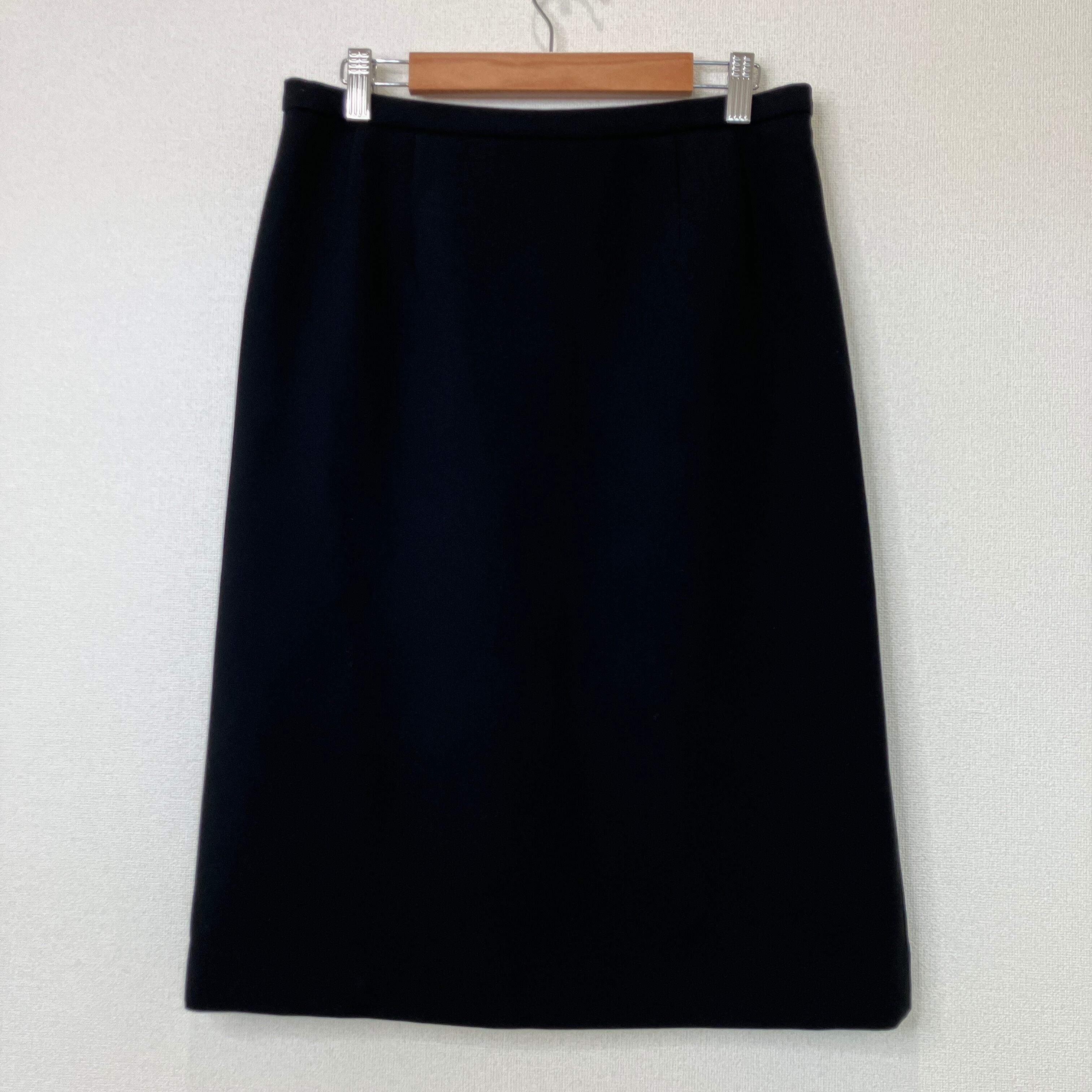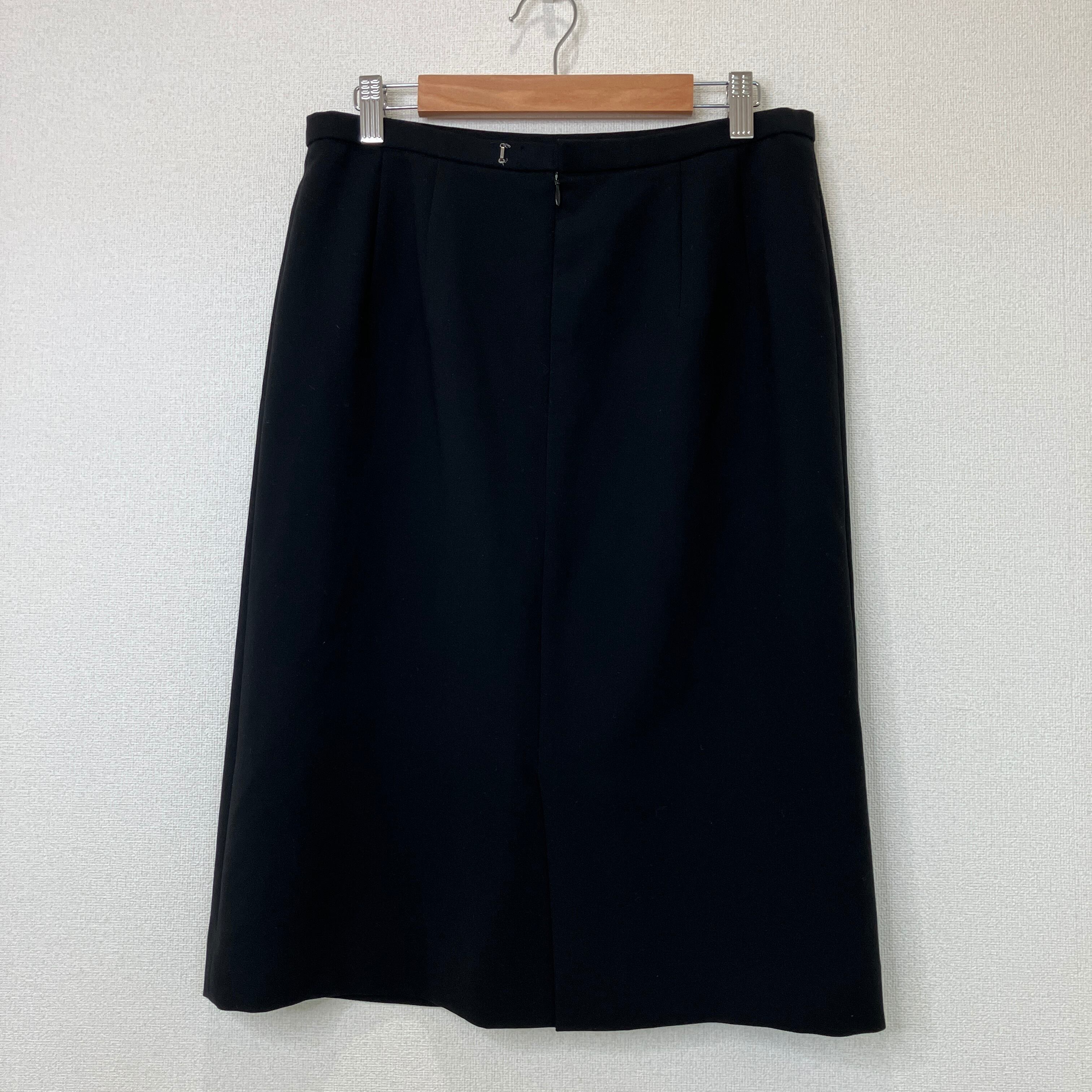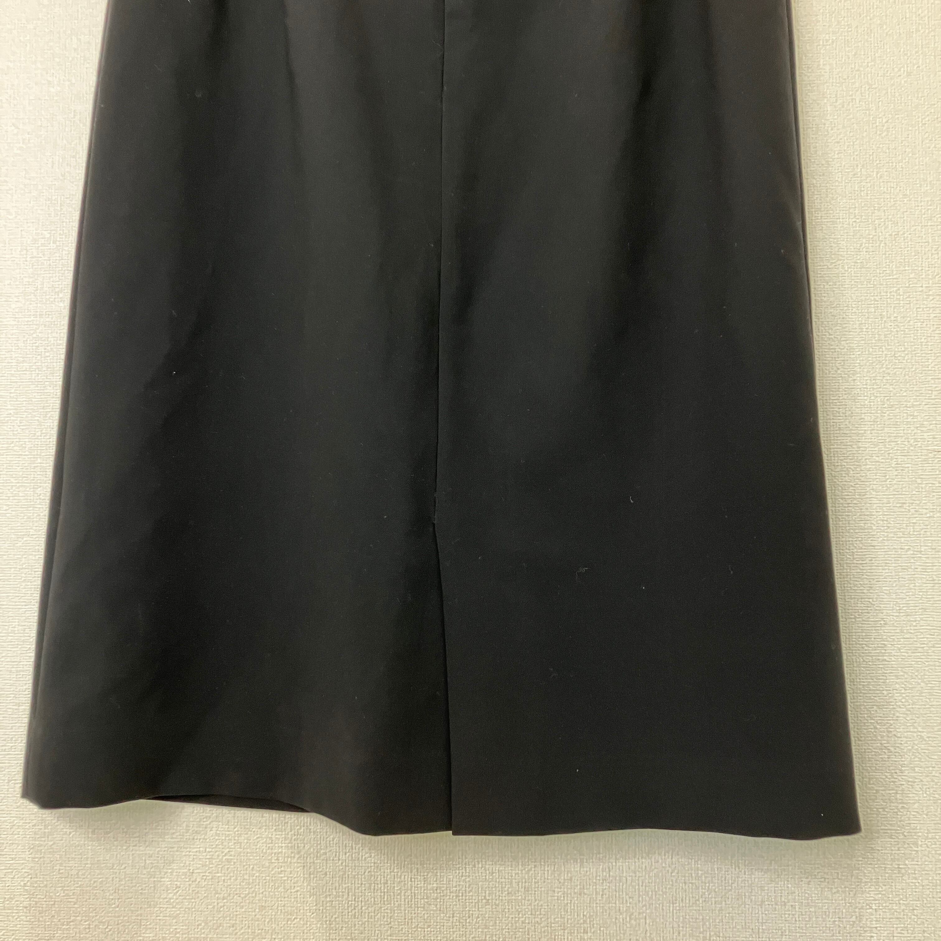 ウエスト標準のM相当サイズで、きれいなIラインが上品なブラックスカートです。オンオフ問わず着回しやすい一着です。