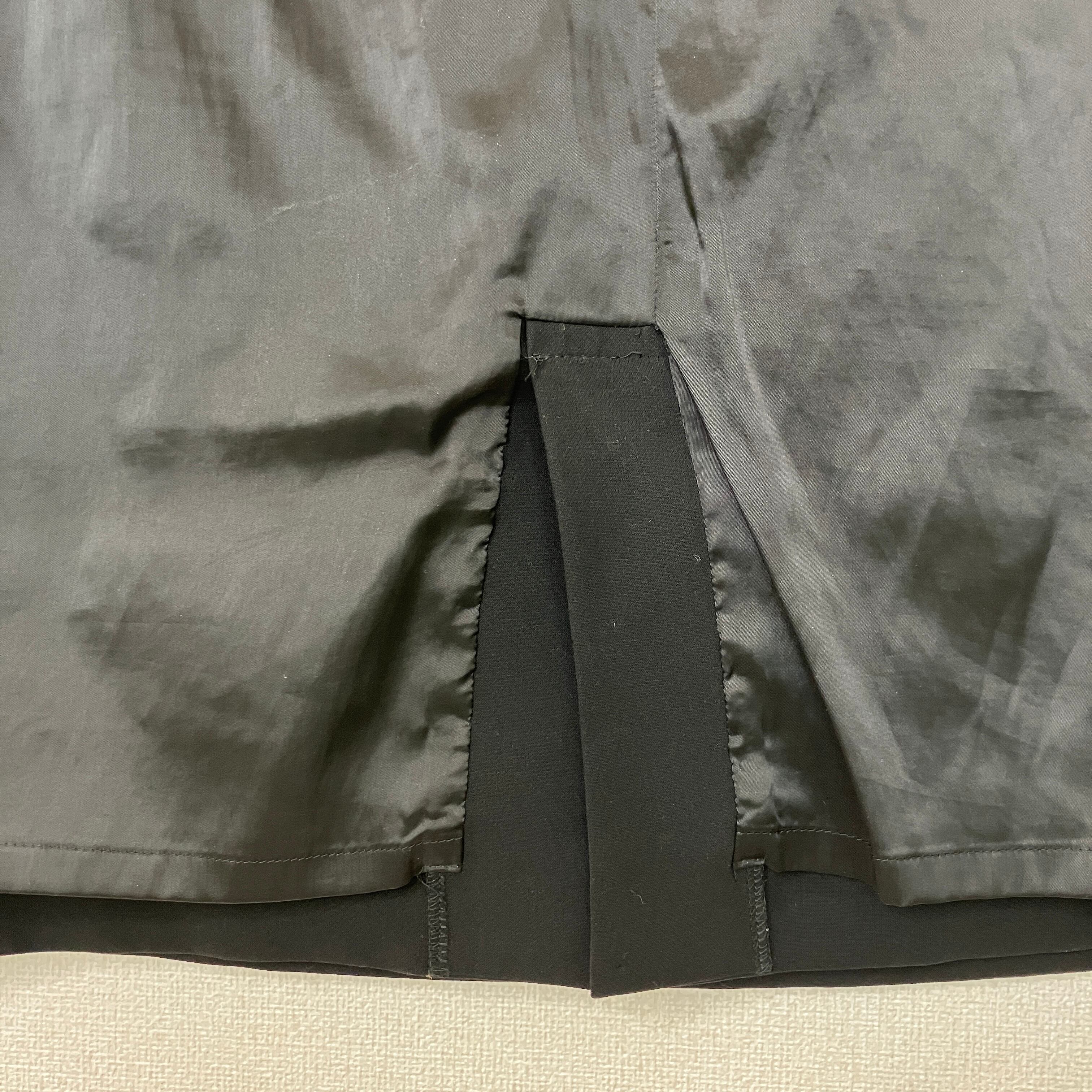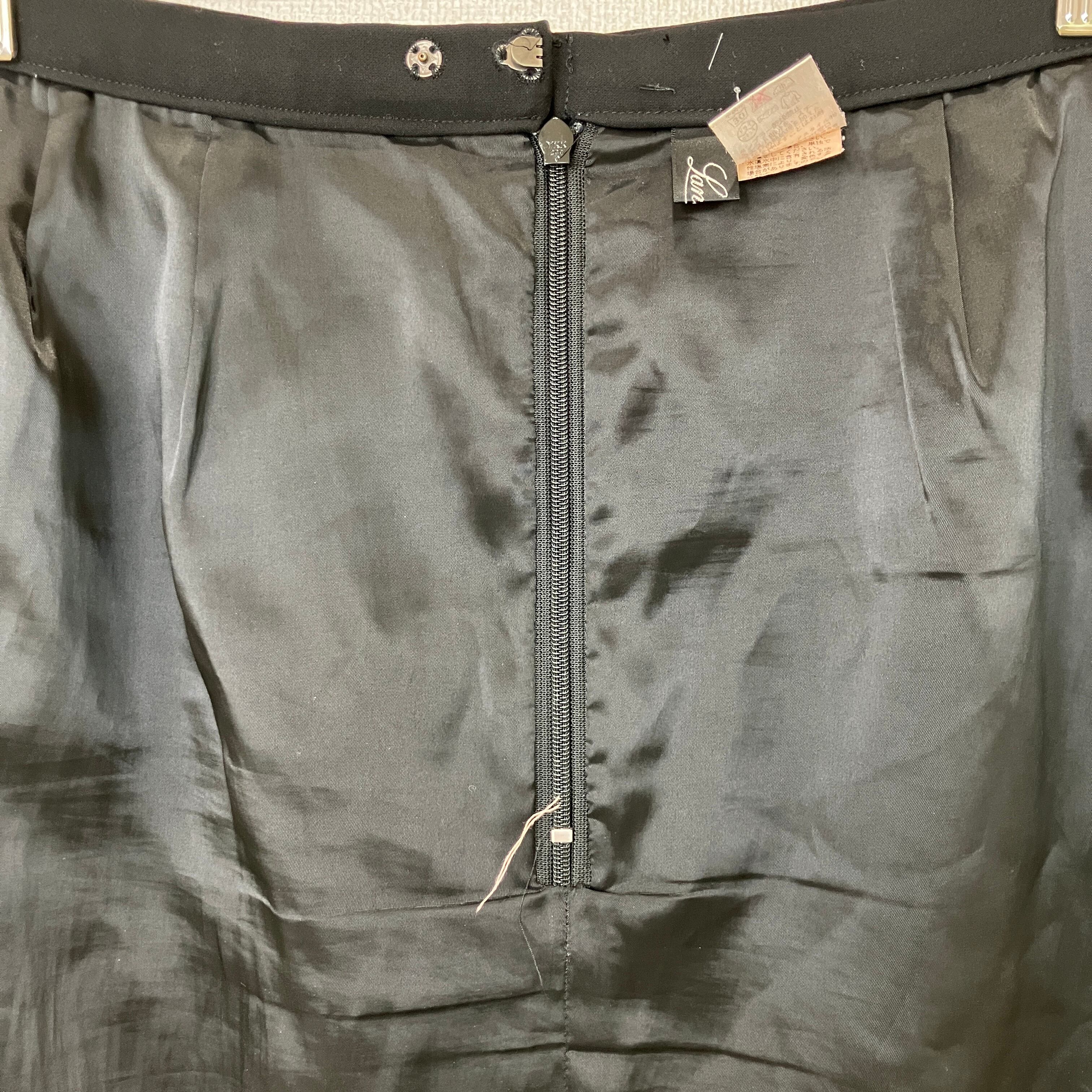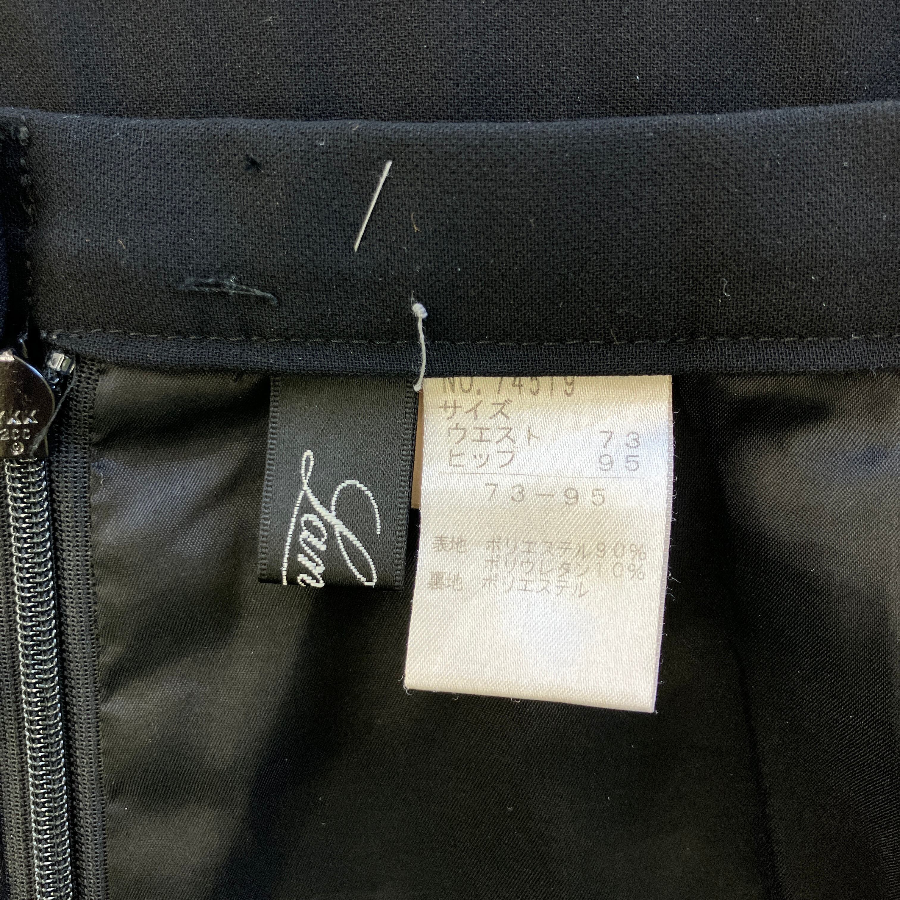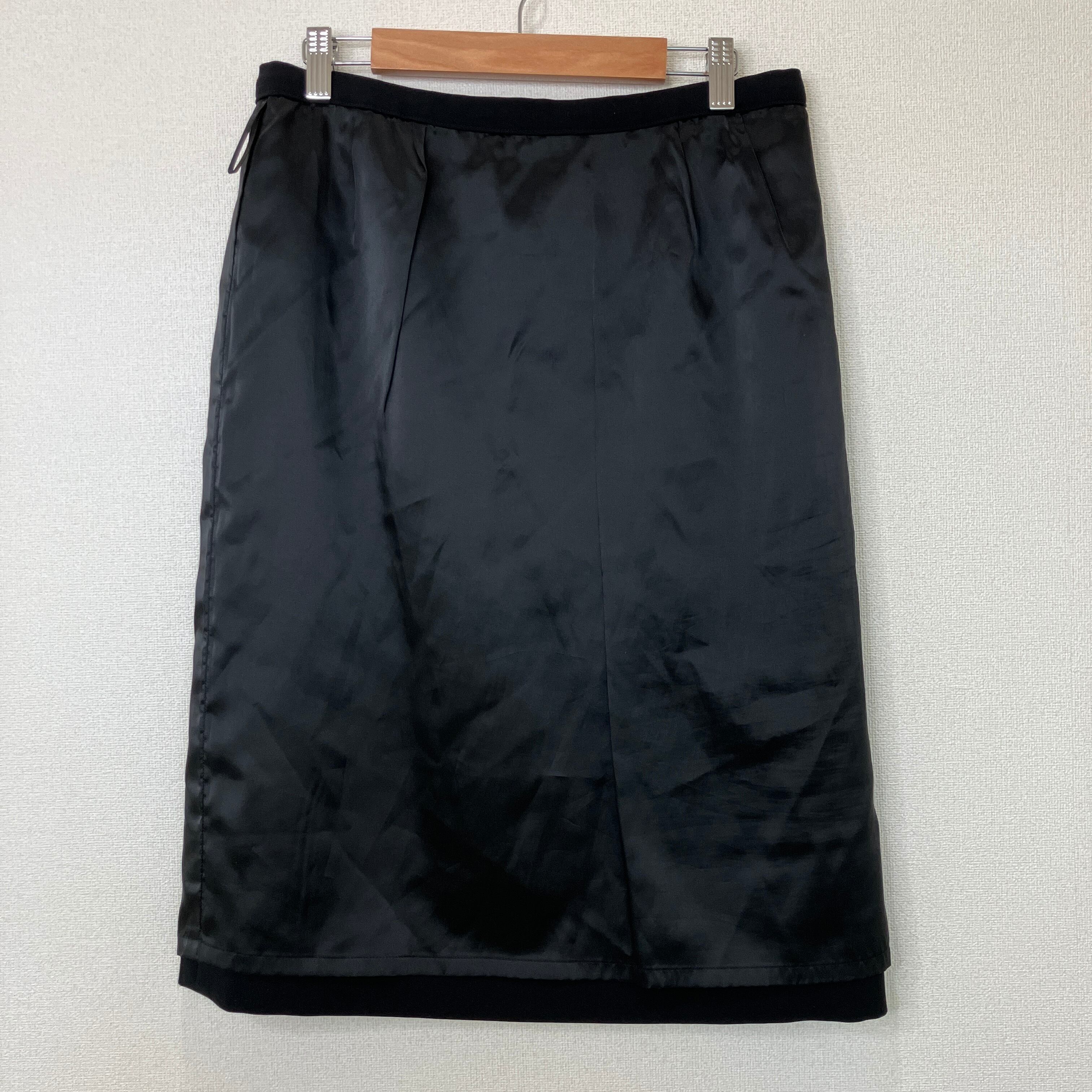 ウエスト標準のM相当サイズで、きれいなIラインが上品なブラックスカートです。オンオフ問わず着回しやすい一着です。