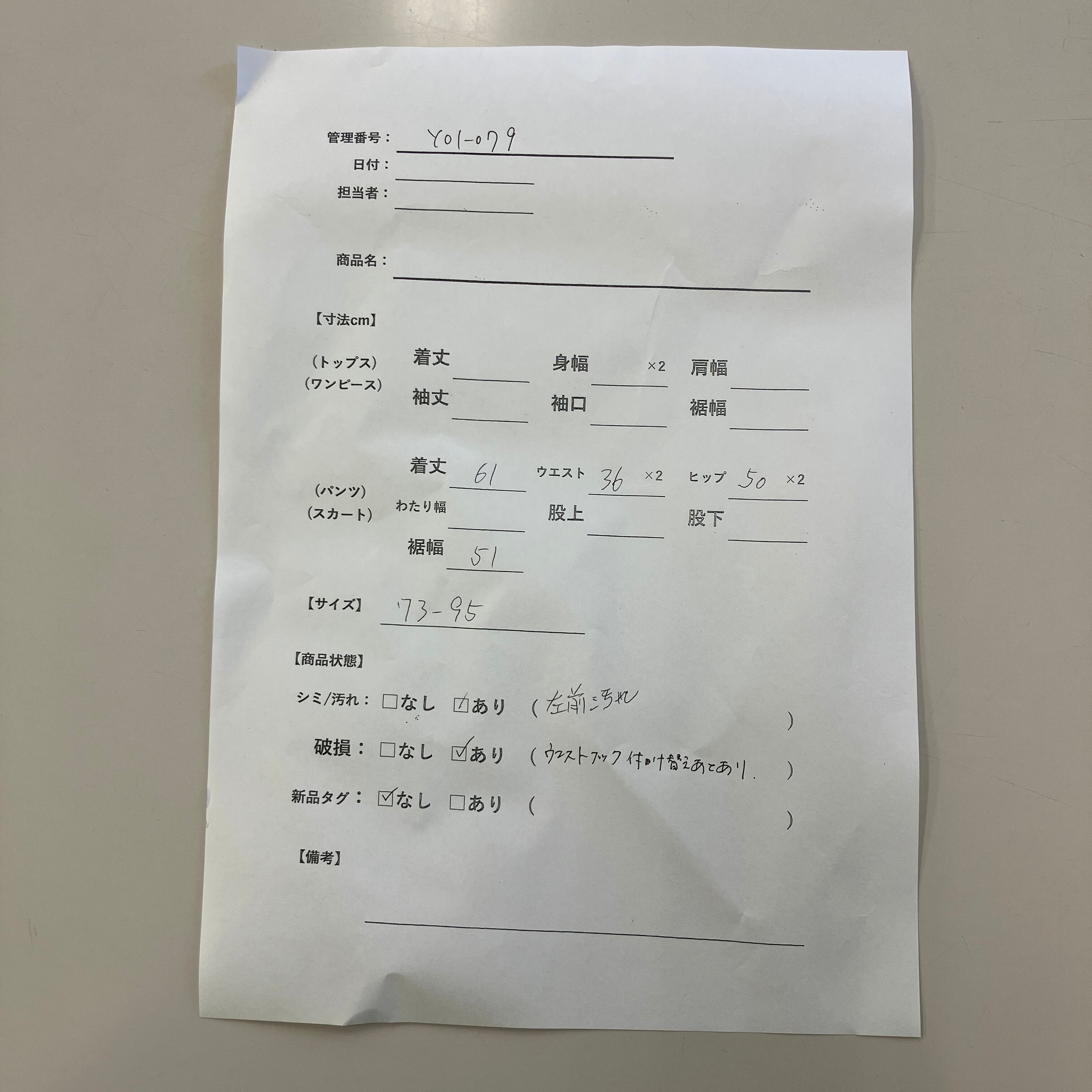 管理番号:Y01-079 #てまいらずアパレル商品一覧