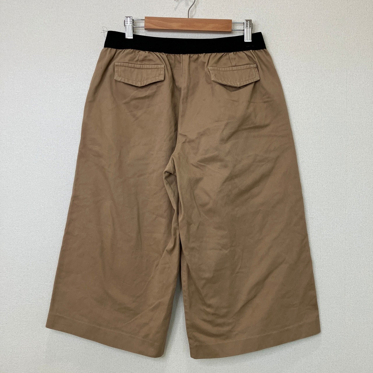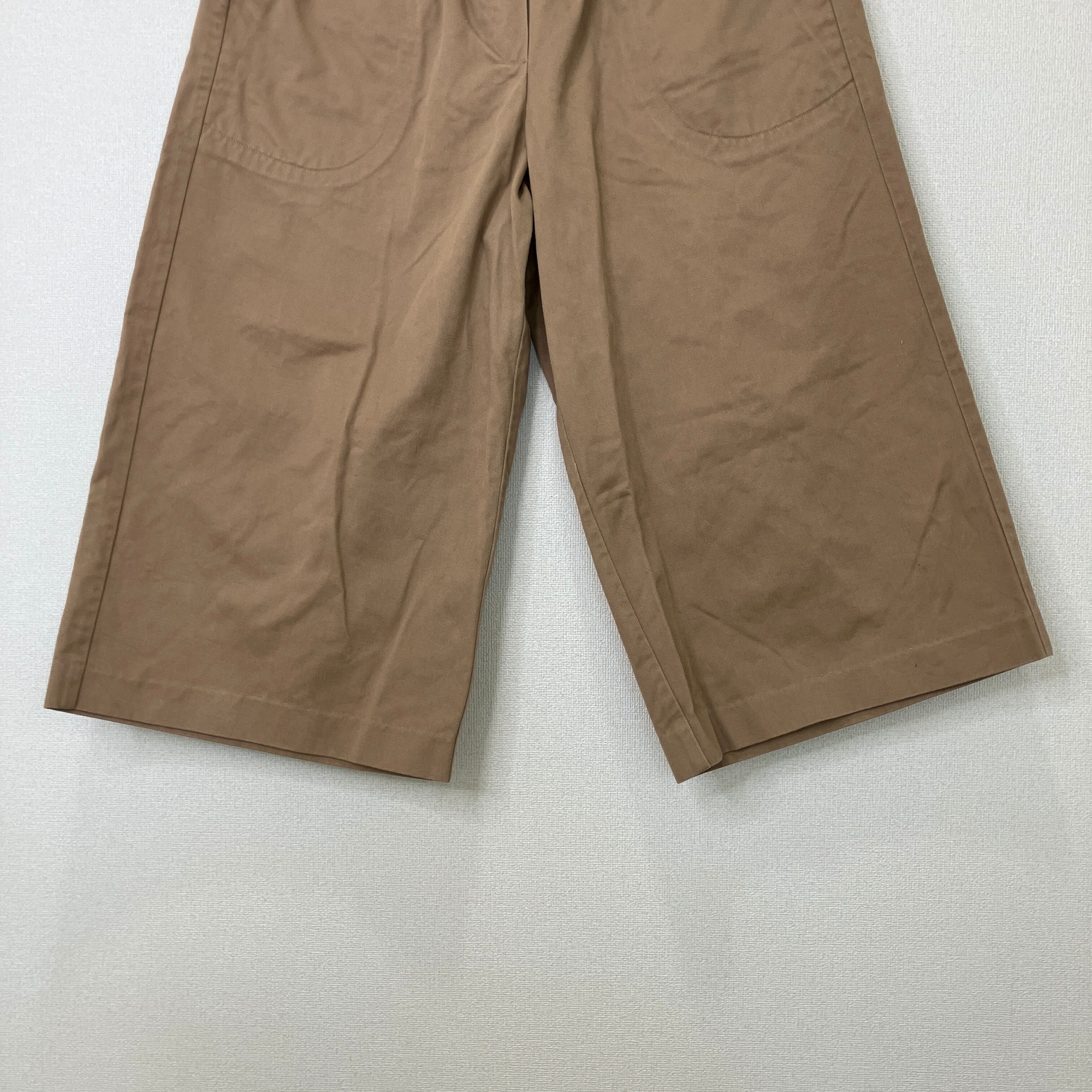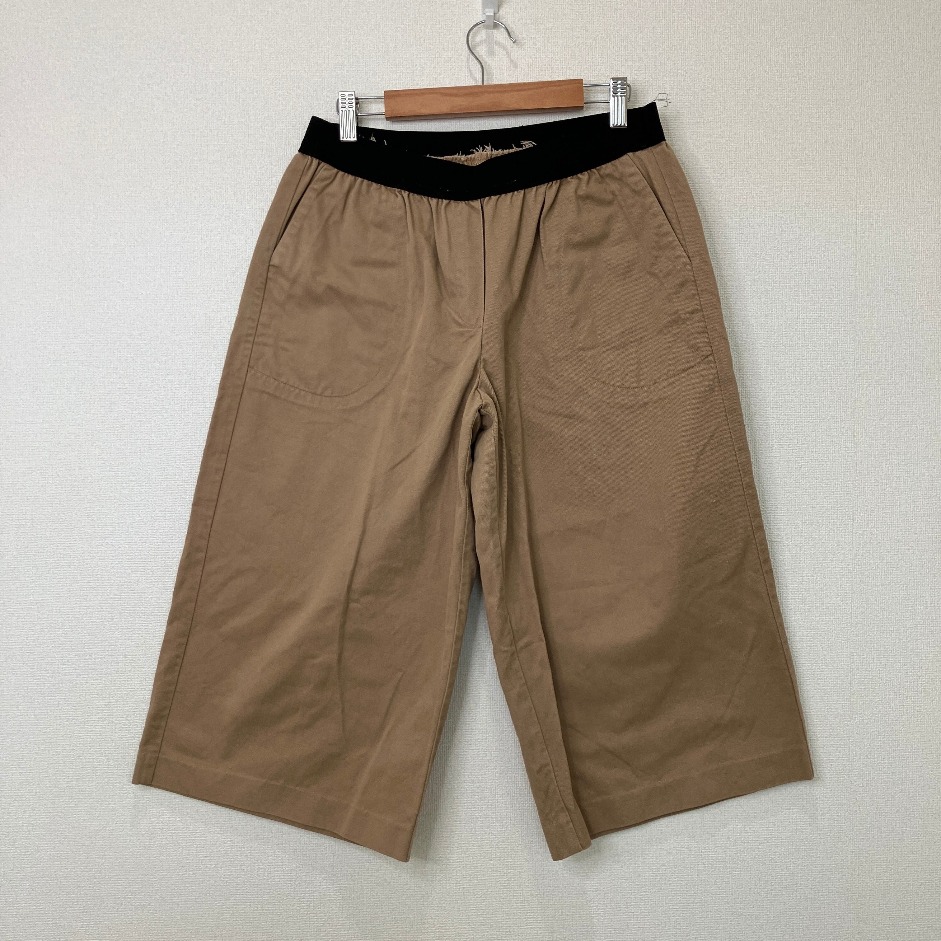 ウエストリブ クロップド ワイドパンツ(キャメル/ブラウン)ウエストゴム ワイド クロップドパンツ キャメル L LL 楽ちん
