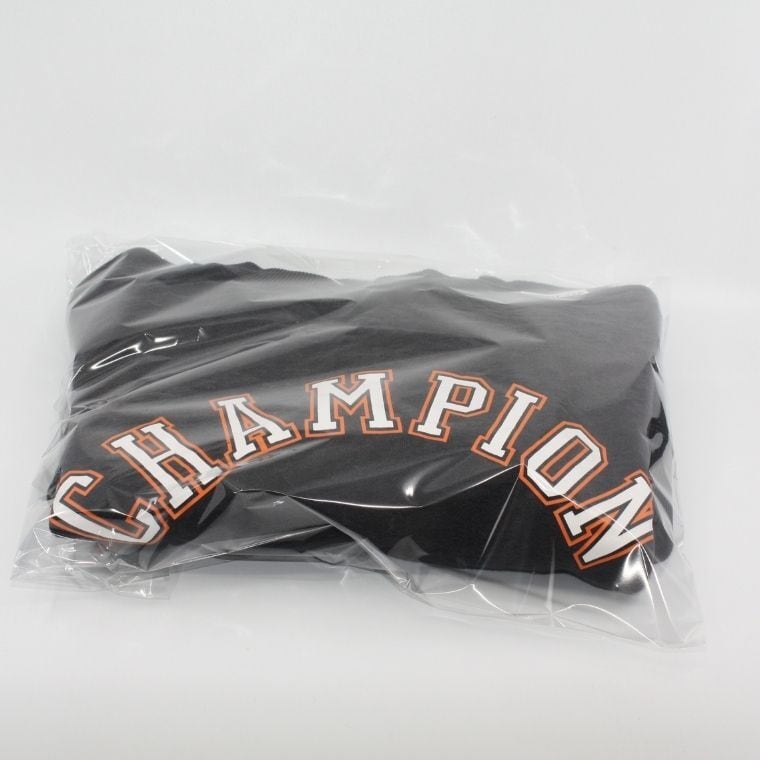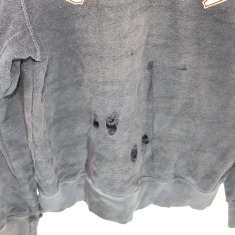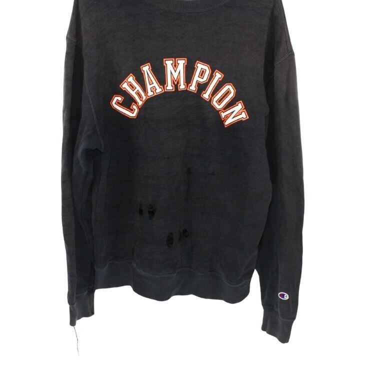 Champion(チャンピオン) ロゴプリント スウェット トレーナー ブラック ダメージ加工