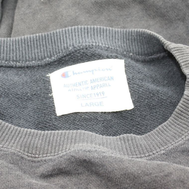 Champion チャンピオン ロゴプリント スウェット ブラック ダメージ加工 メンズL 古着風 トレーナー
