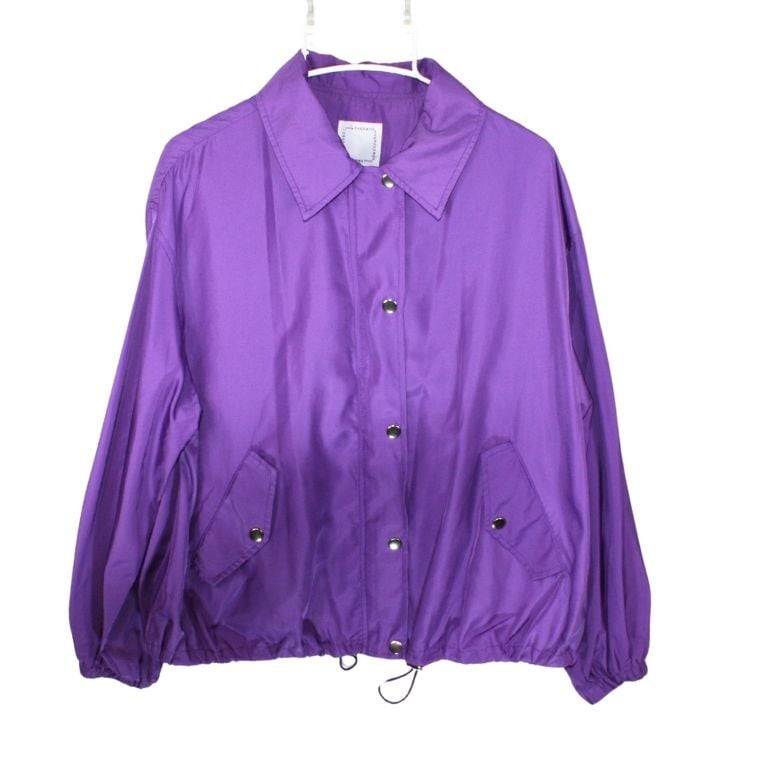 鮮やかなパープルカラーが印象的なナイロンジャケットです。