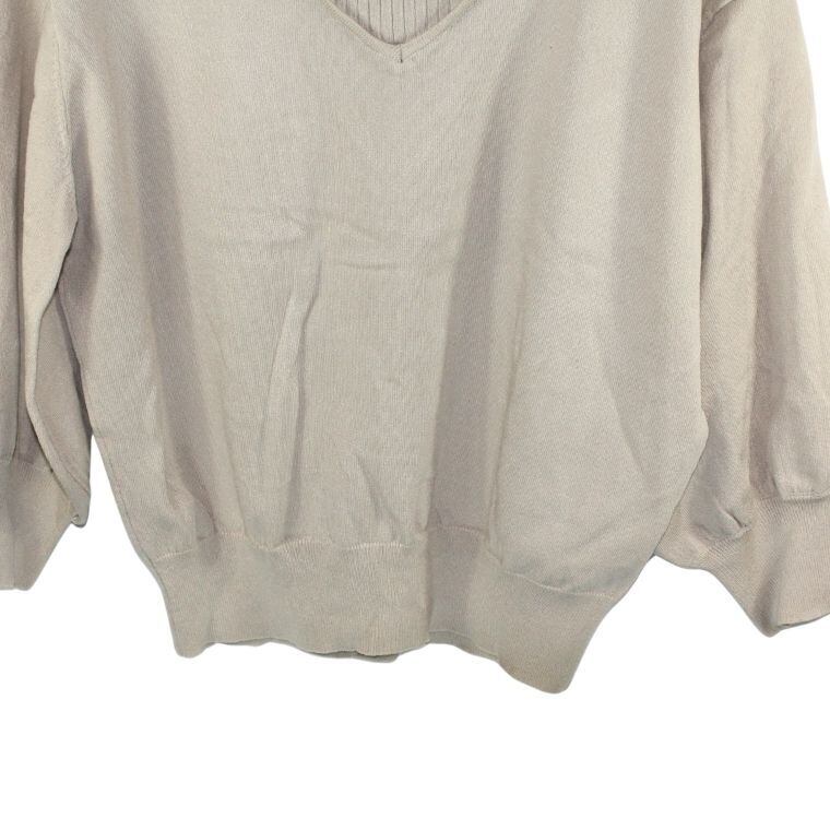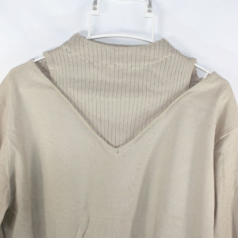ナチュラルクチュール 重ね着風ニット ベージュ系 Vネック ハイネック風 レディース ゆったり