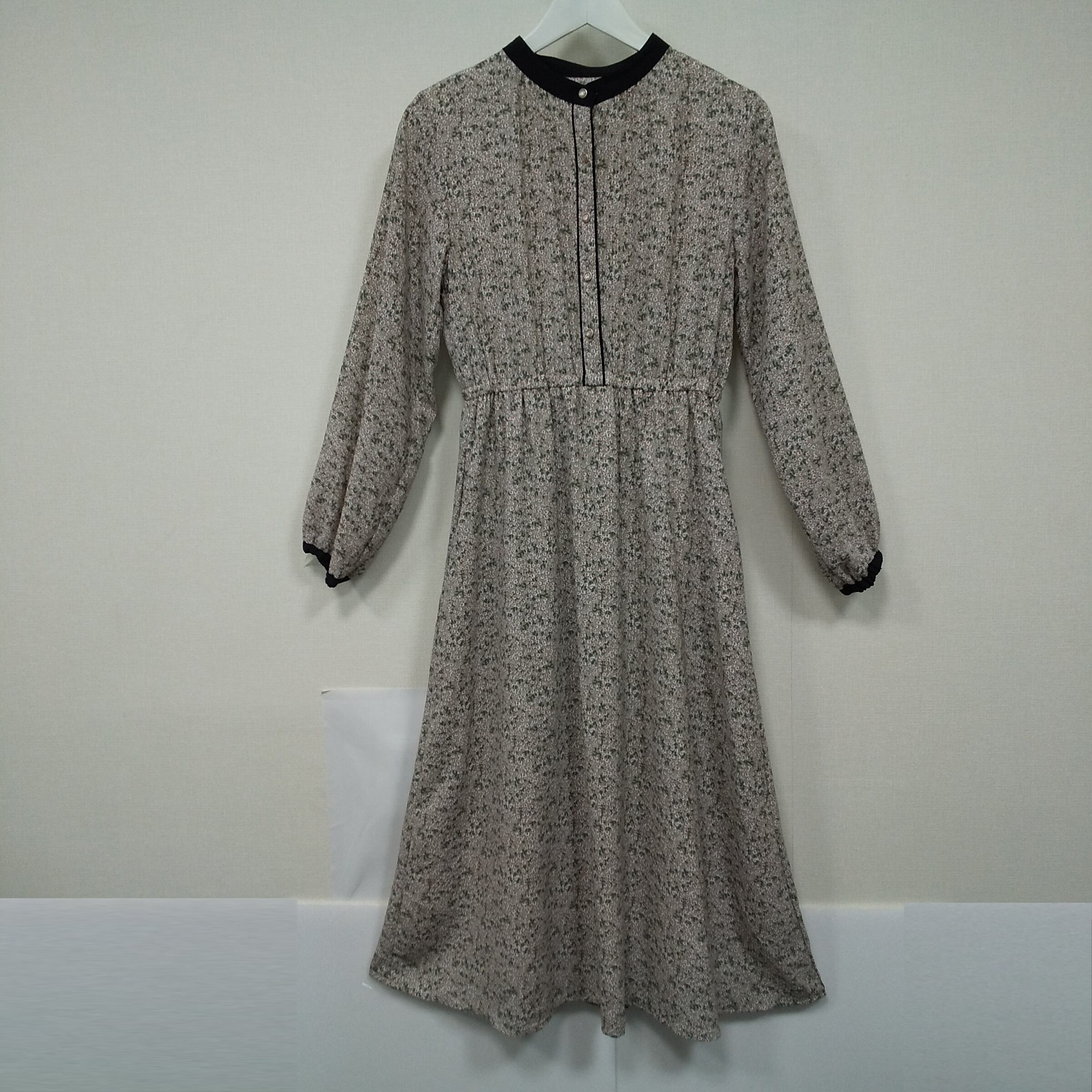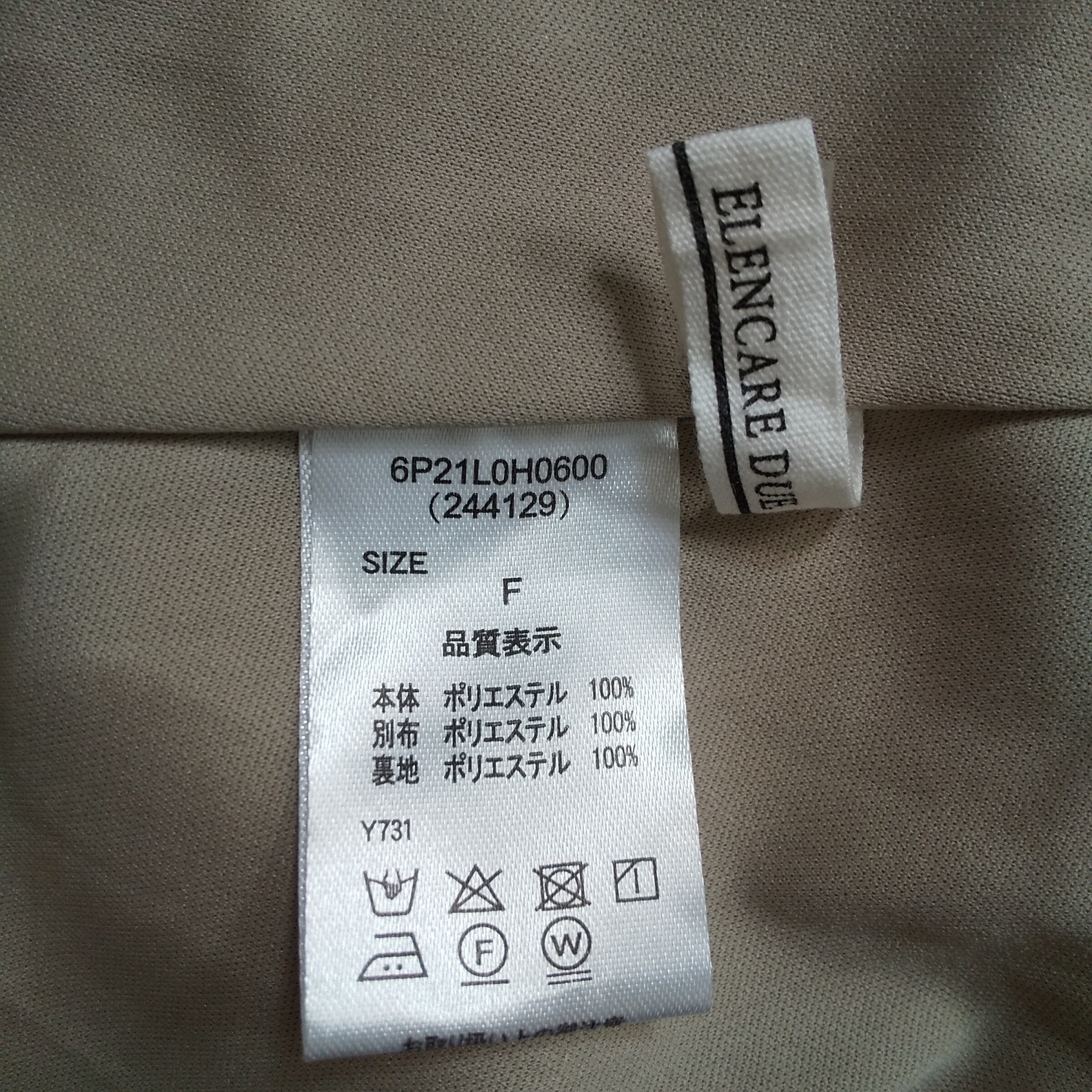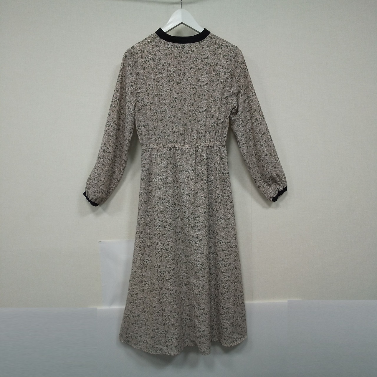 ELENCARE DUE 花柄 ワンピース フリーサイズ ベージュ ブラックパイピング 裏地付き 長袖 レディース