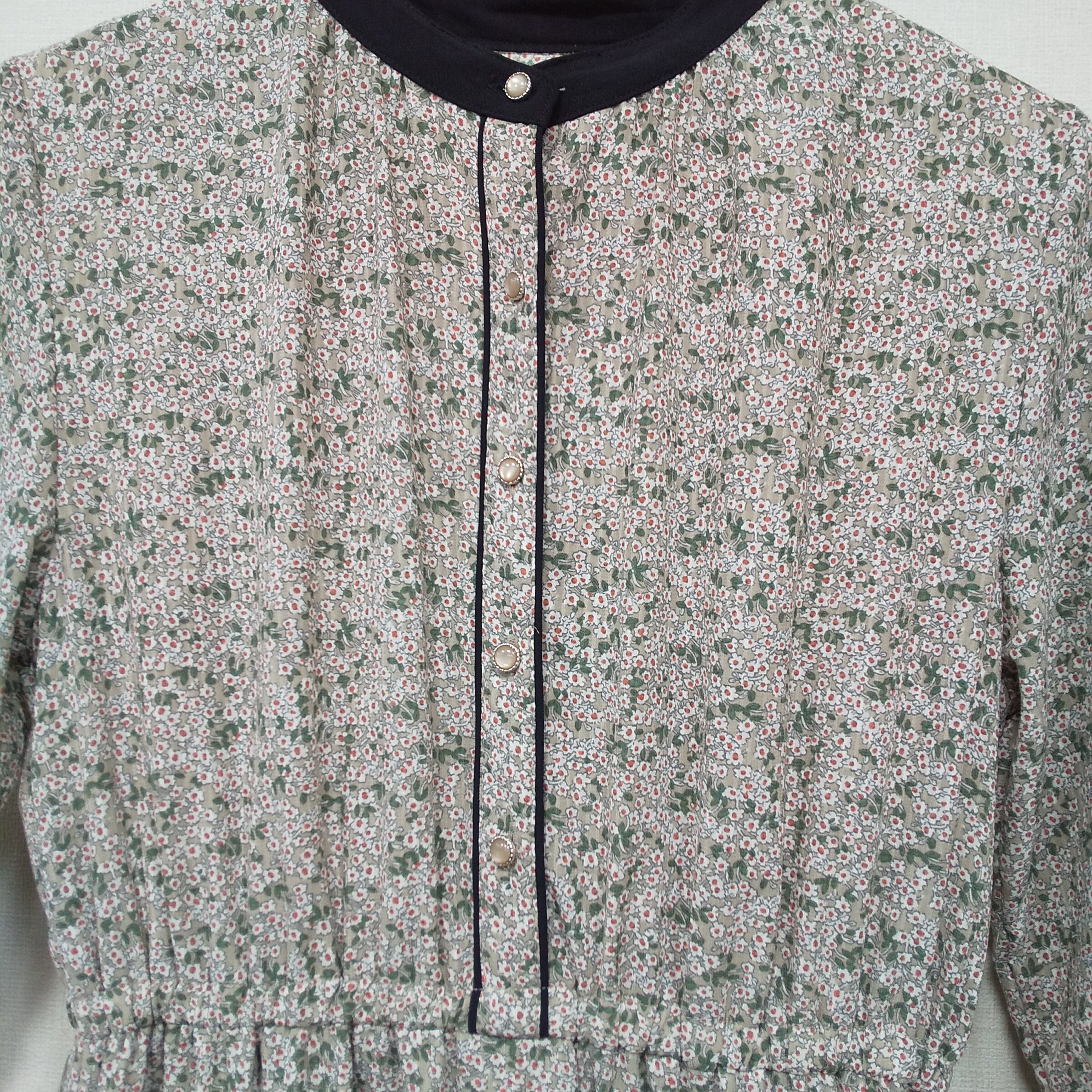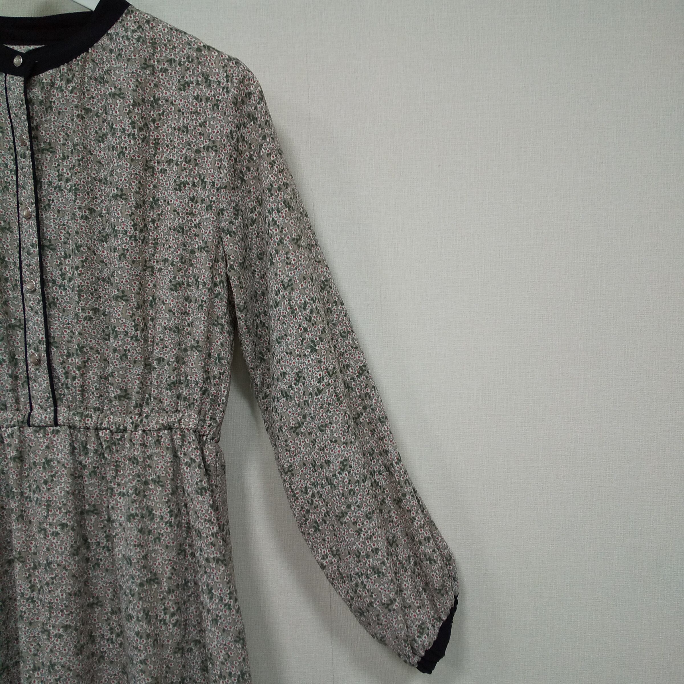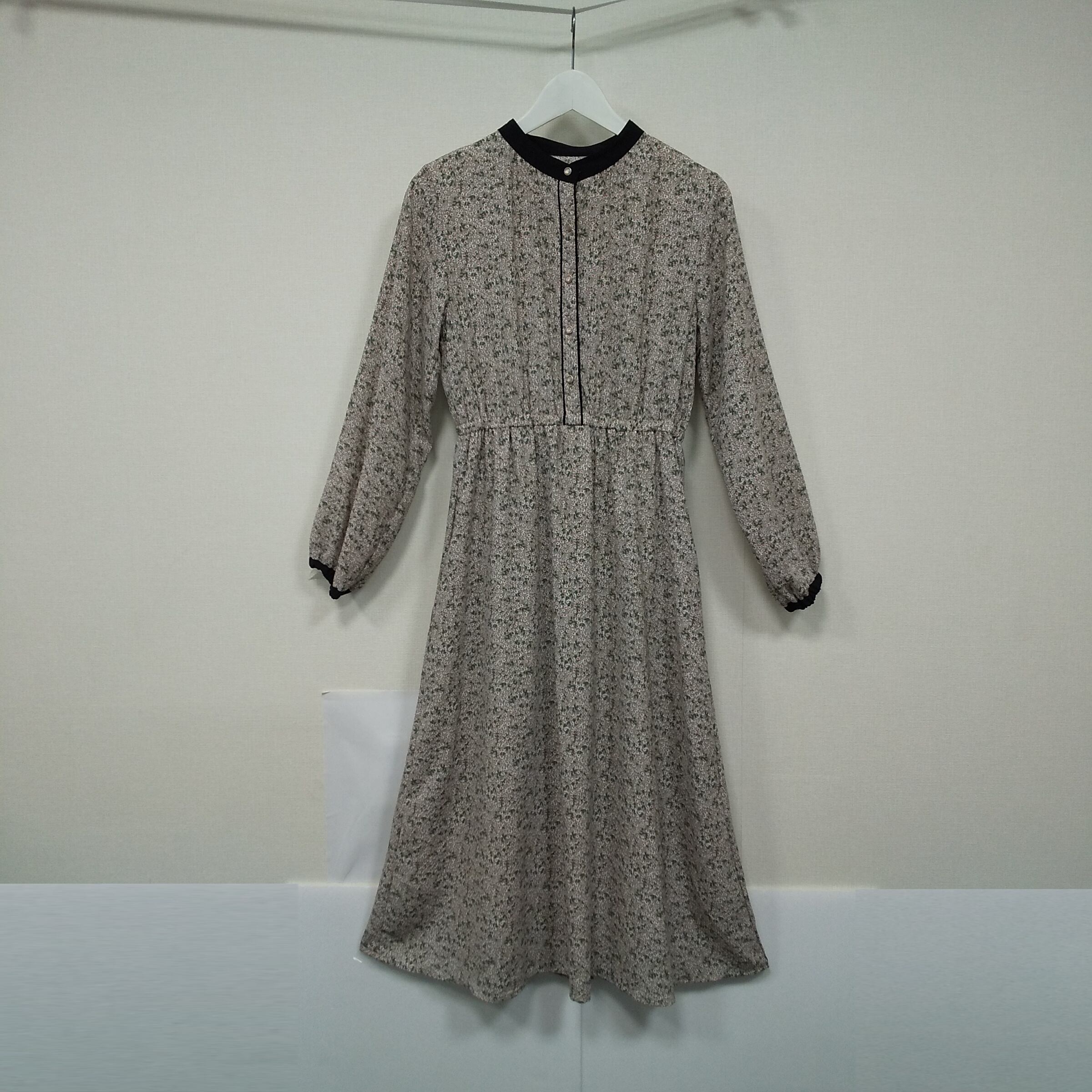 ELENCARE DUE 花柄 ワンピース フリーサイズ ベージュ ブラックパイピング 裏地付き 長袖 レディース