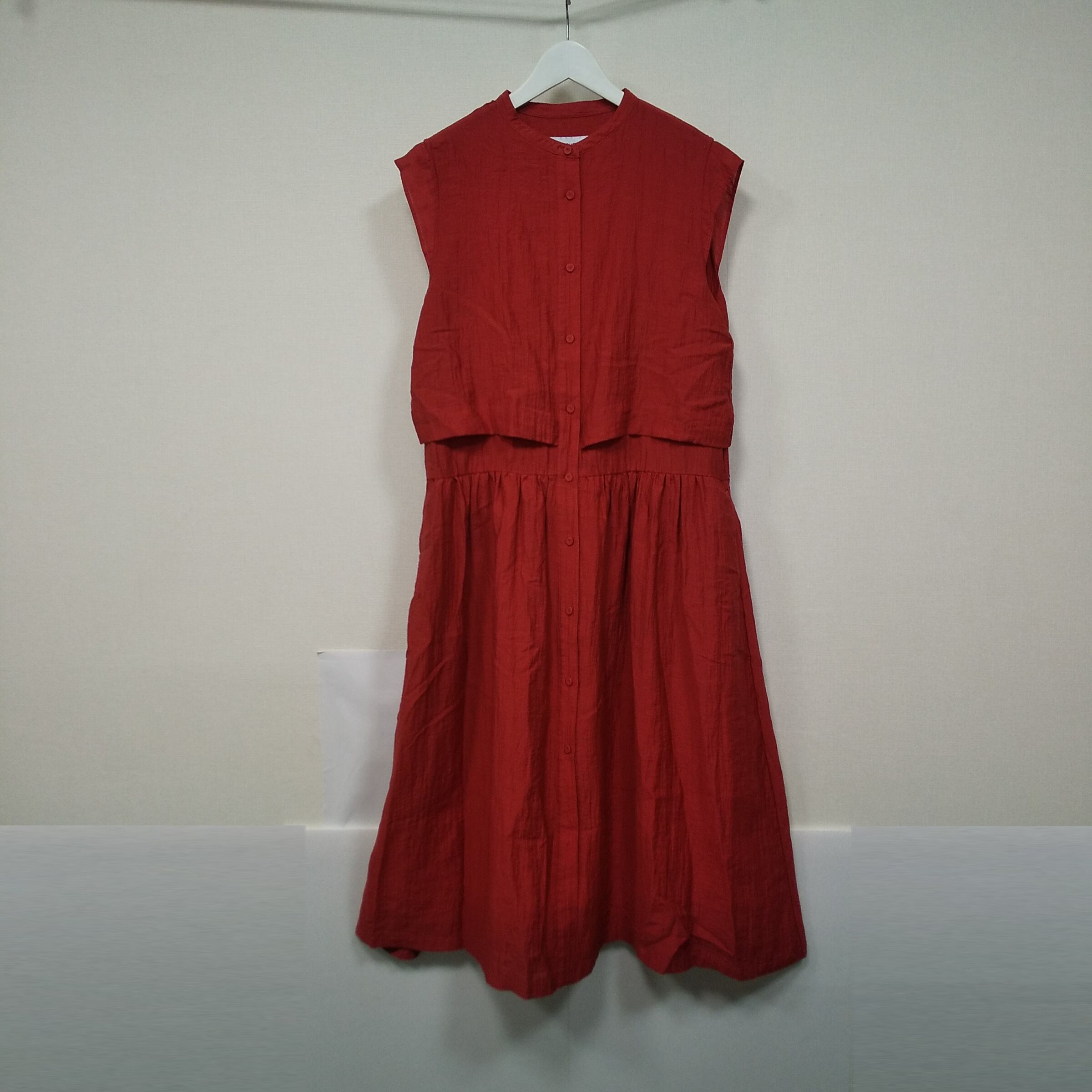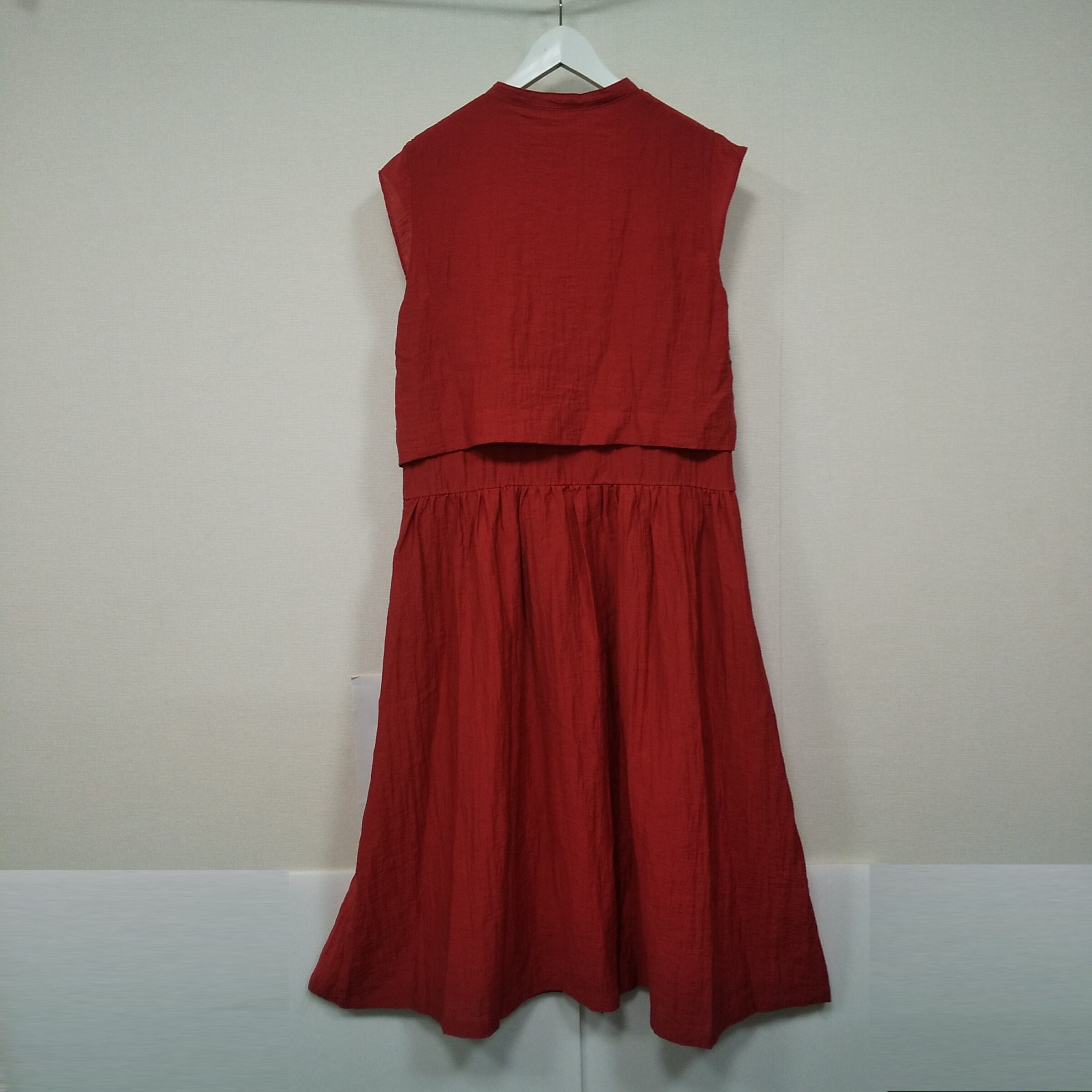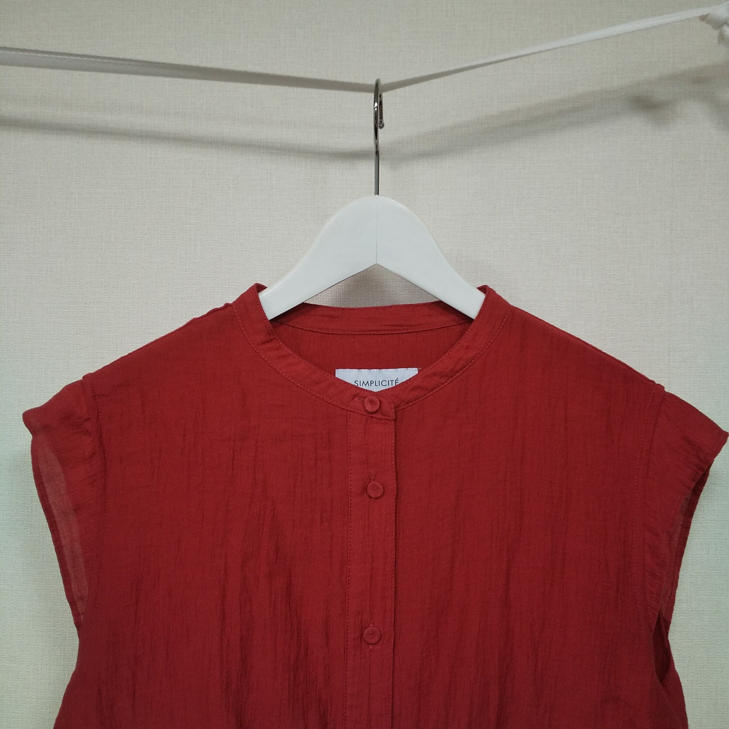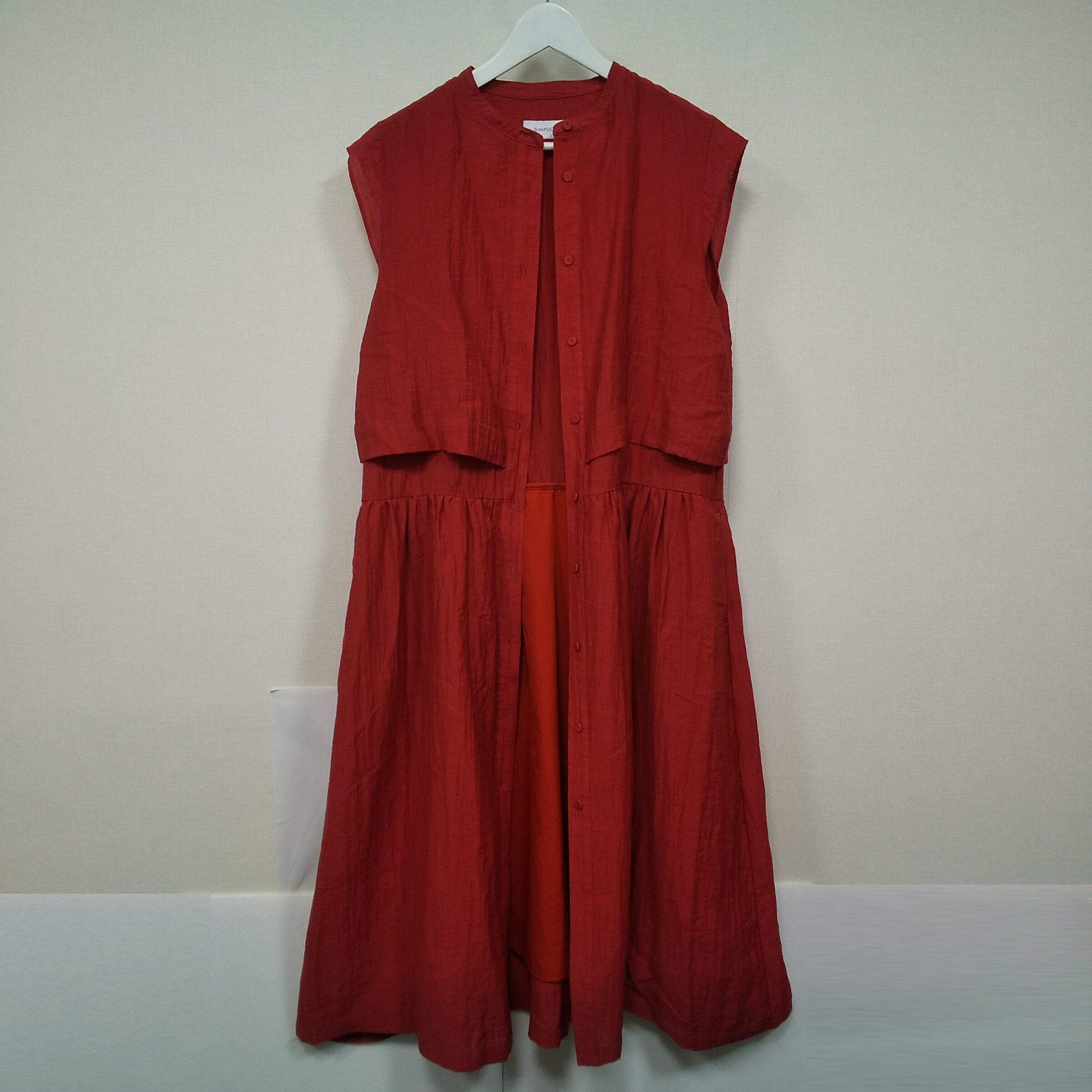 SIMPLICITE ノースリーブ ティアードワンピース ボルドー 前開き ロング丈