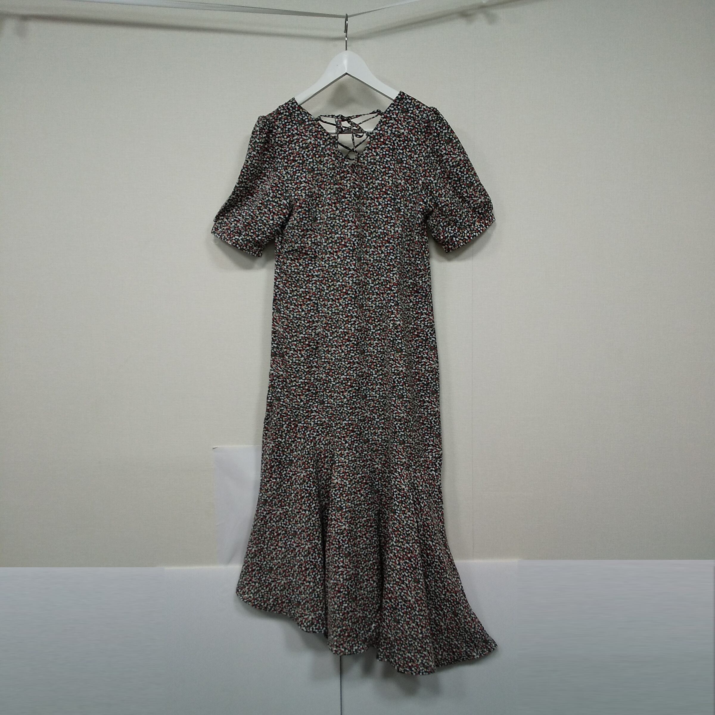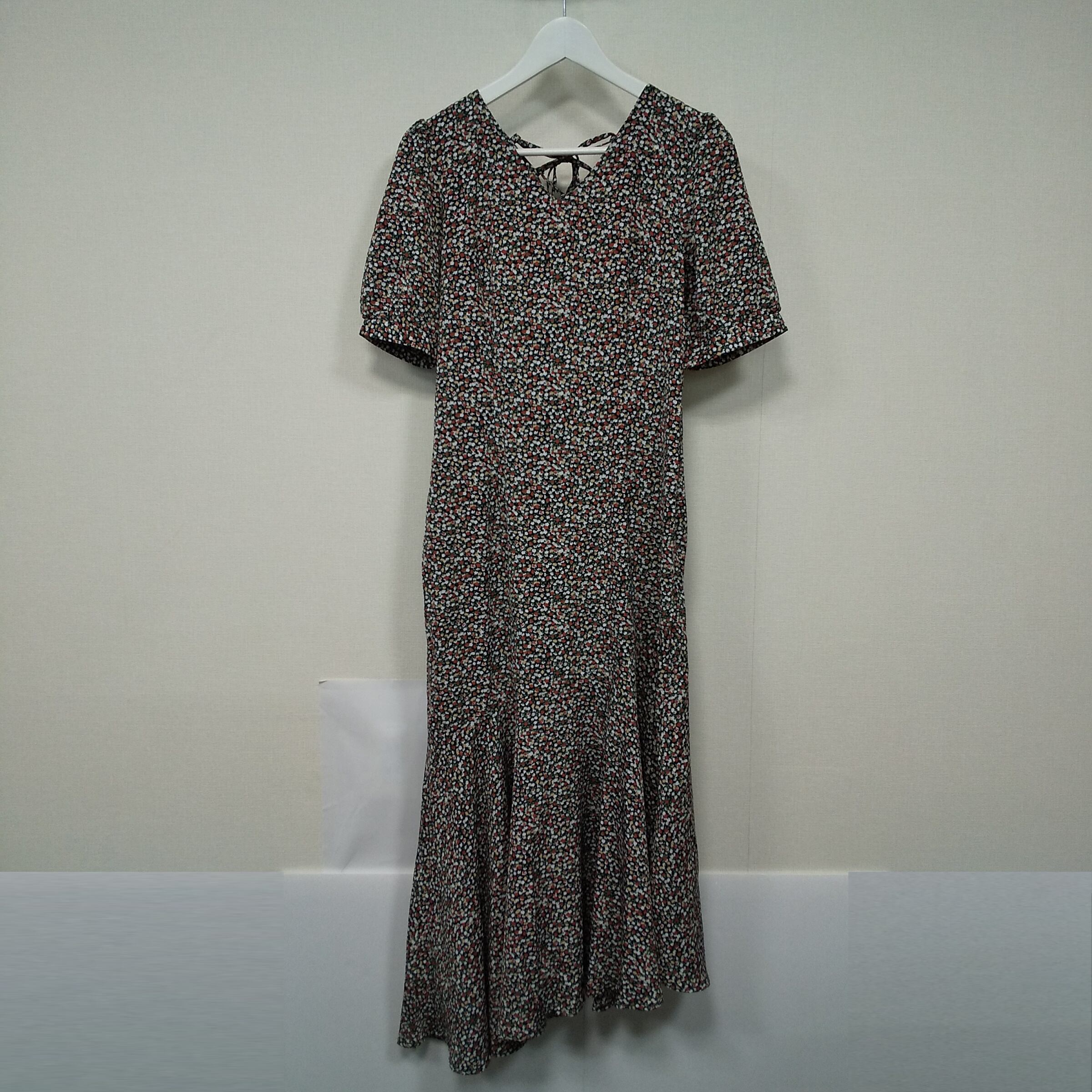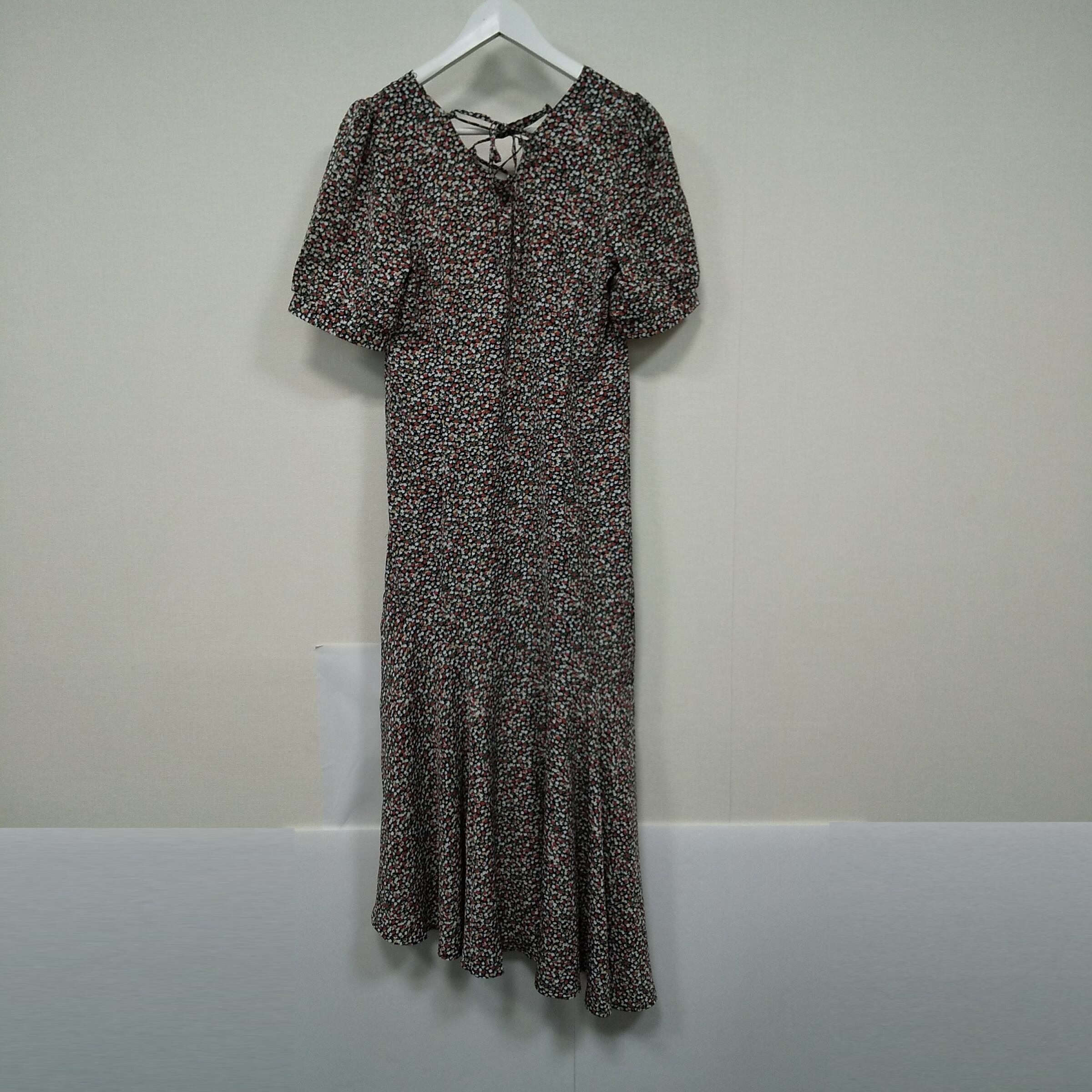 黒地に小花柄が上品で、大人可愛い印象の一着です。