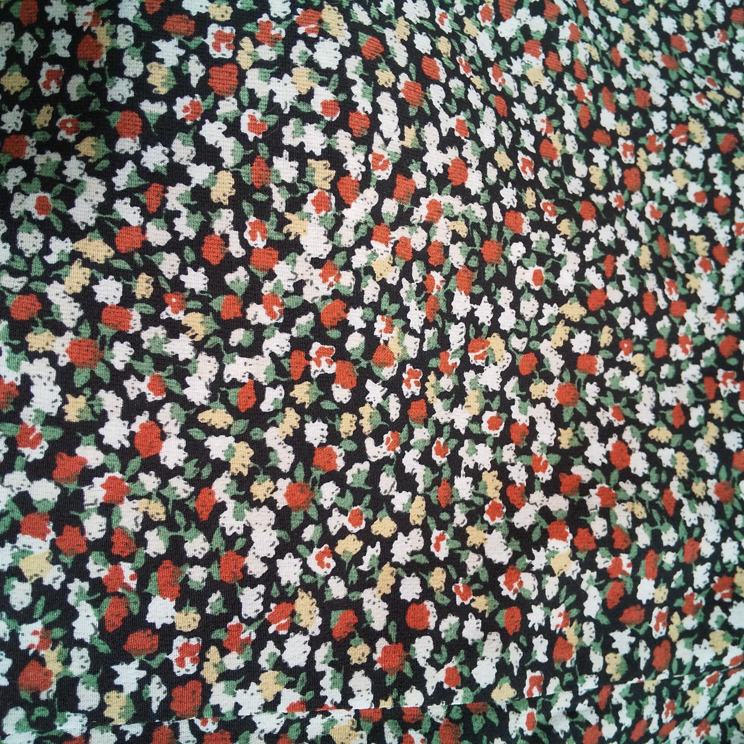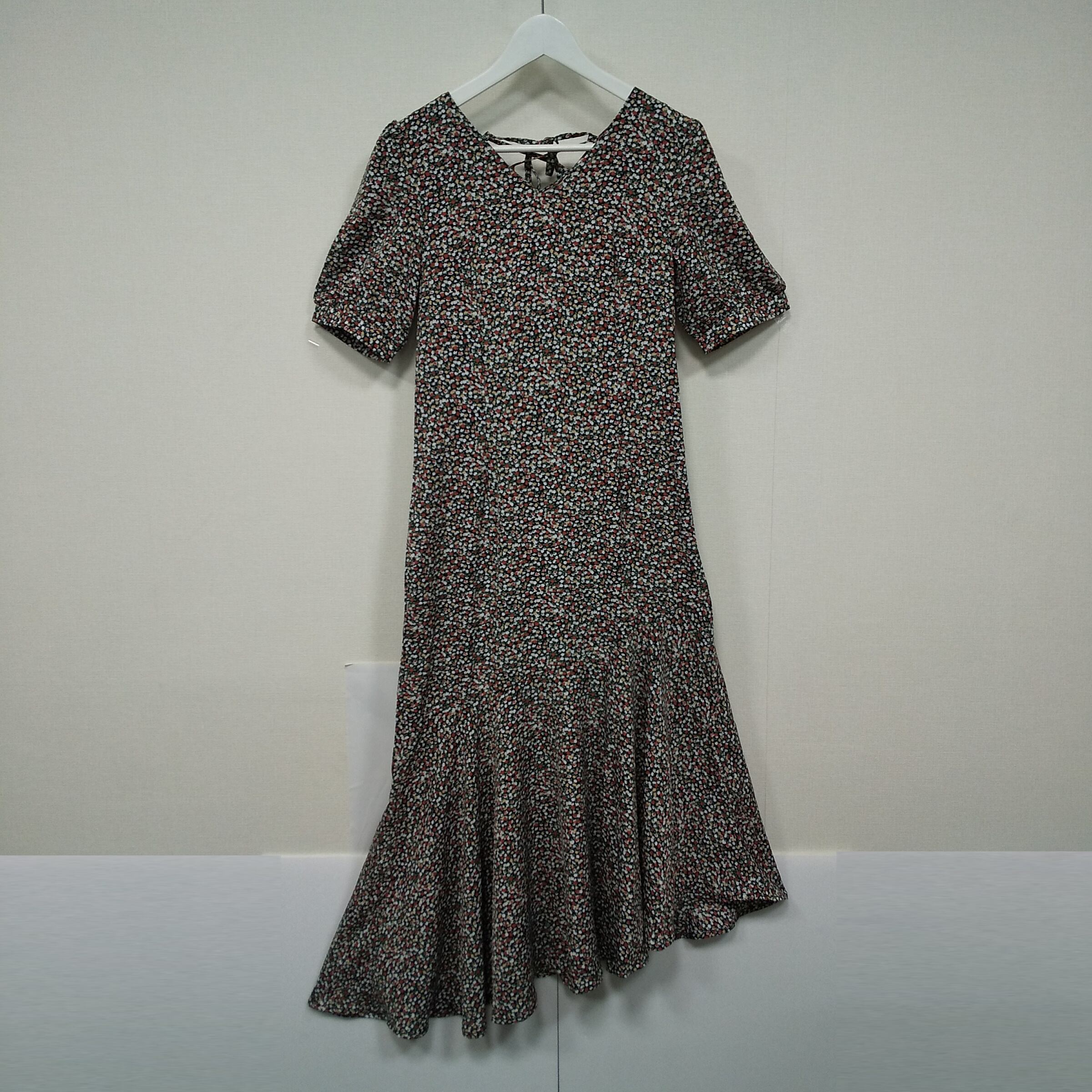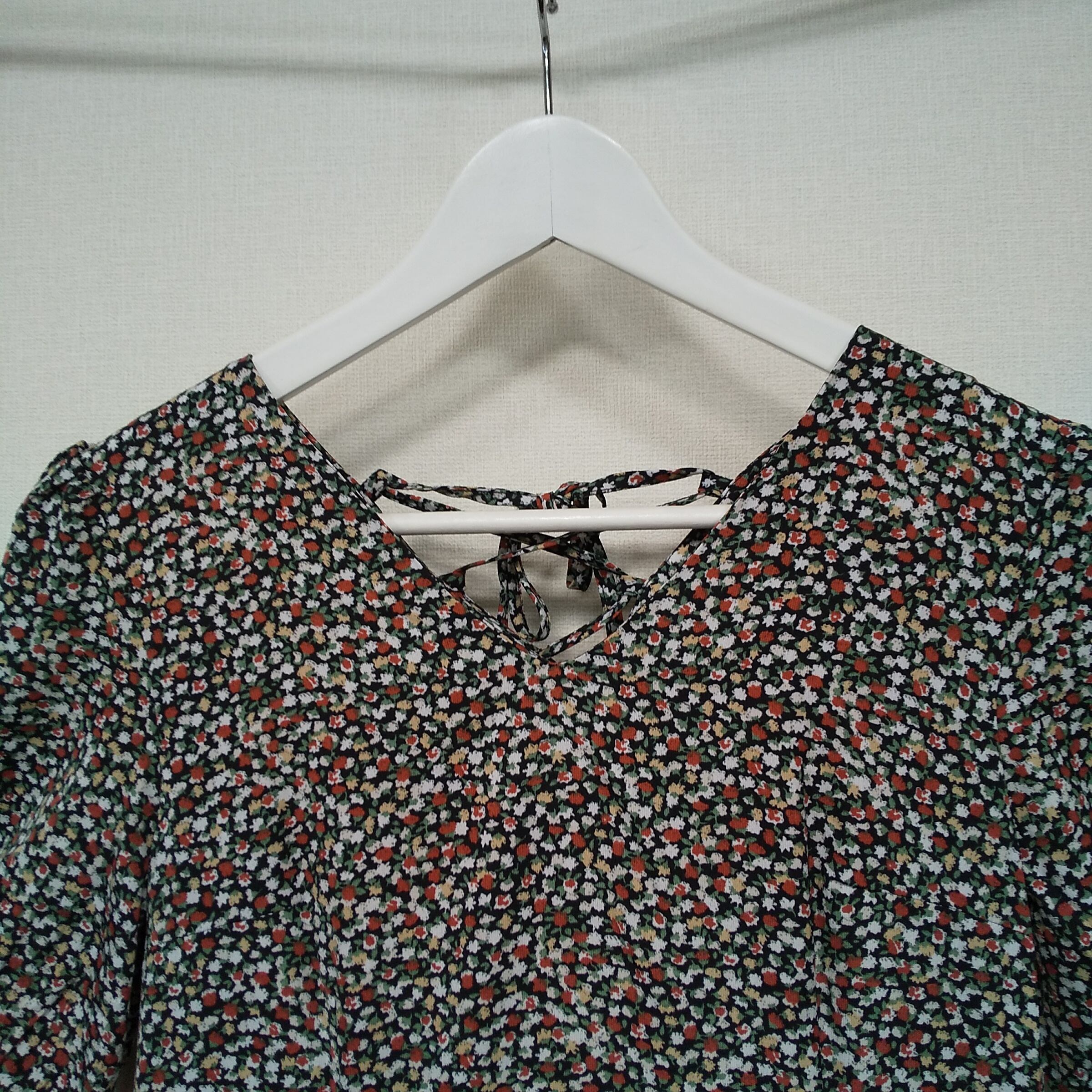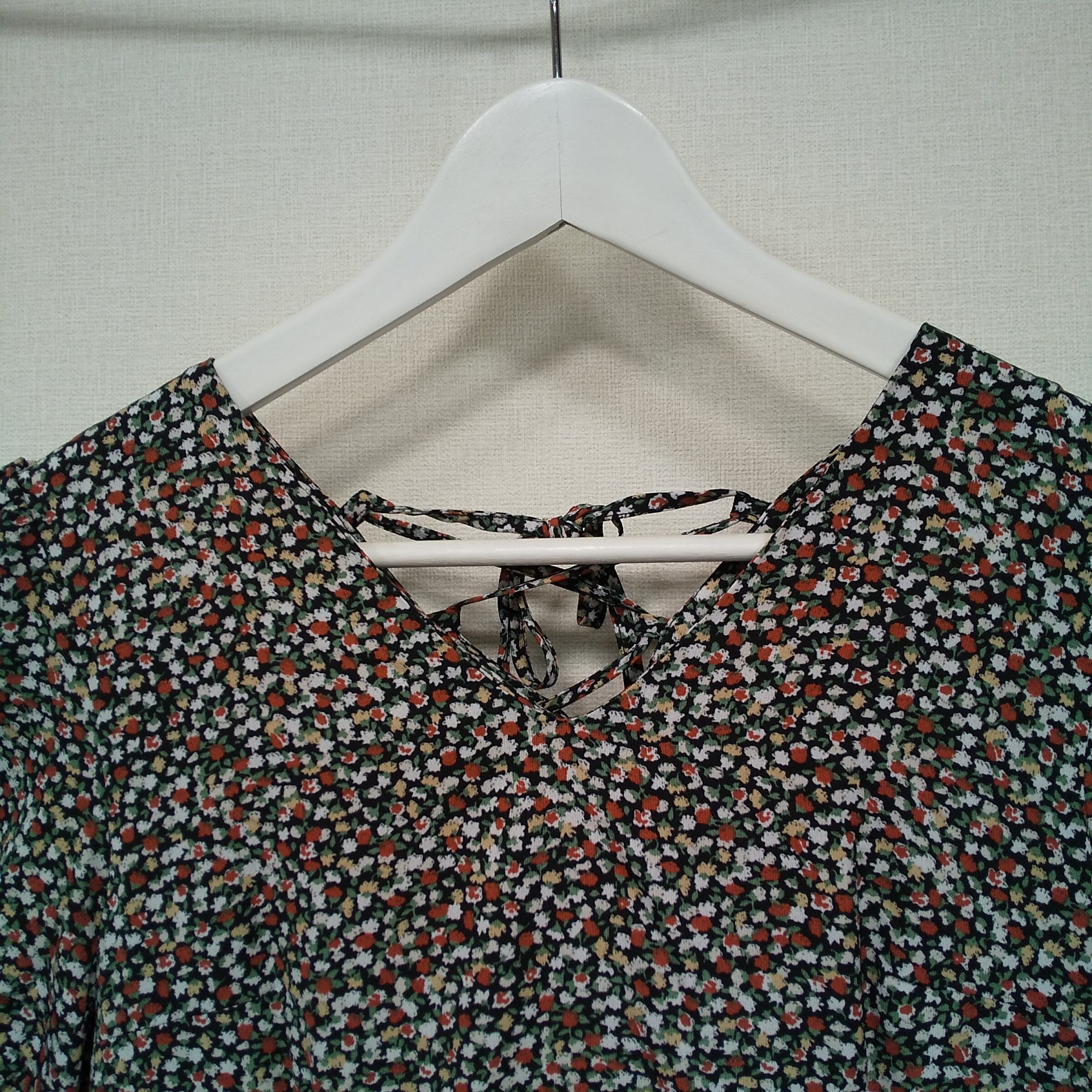 黒地に小花柄が上品で、大人可愛い印象の一着です。