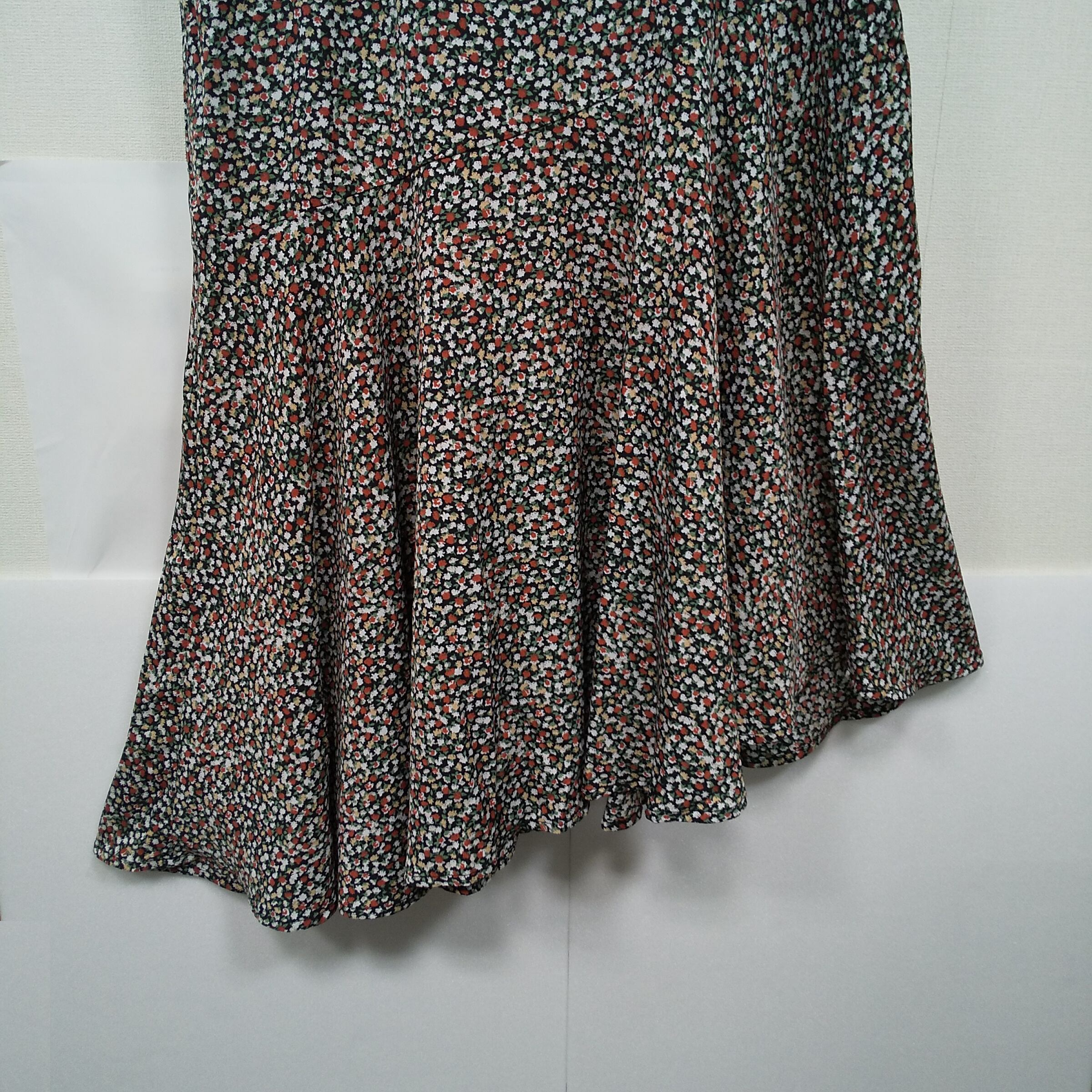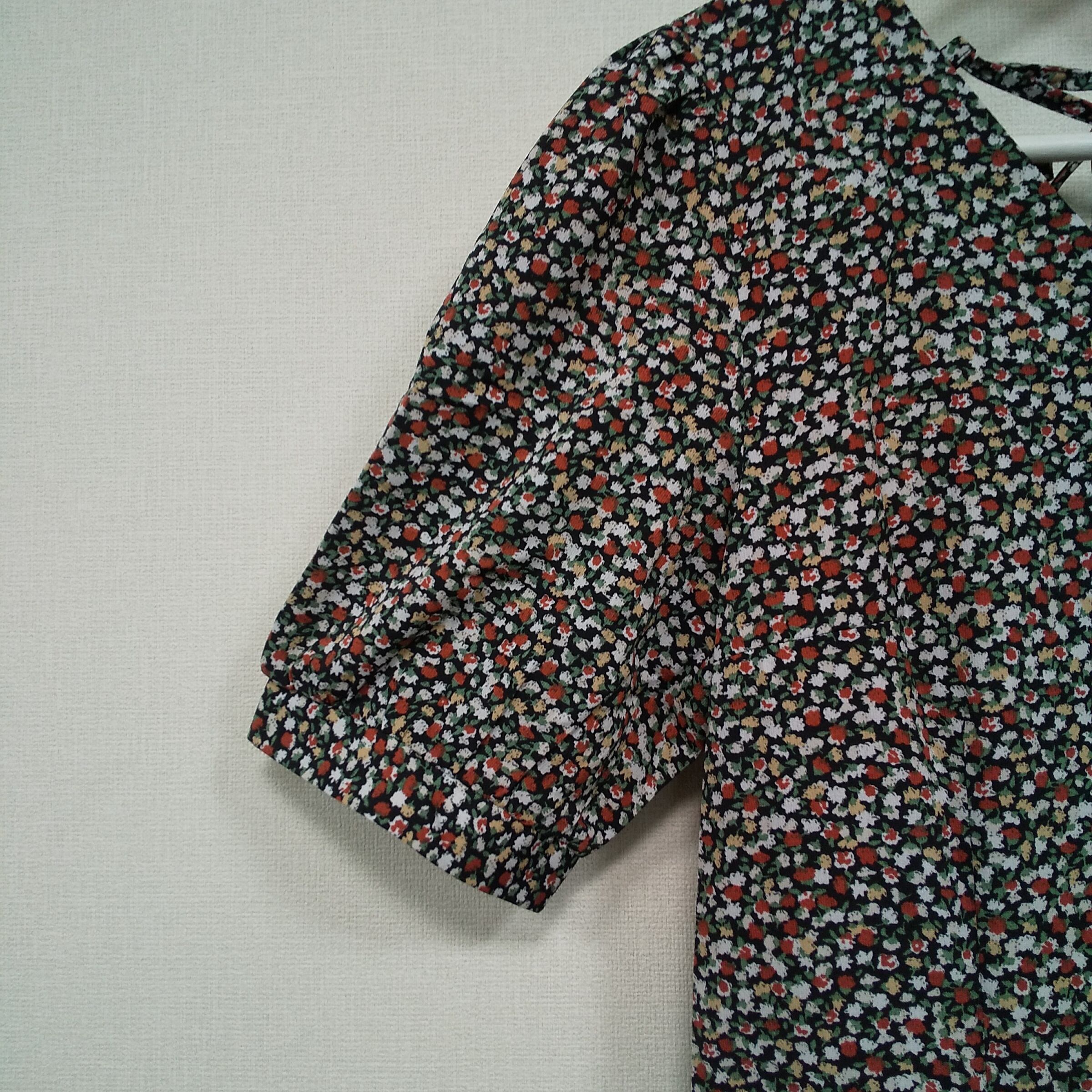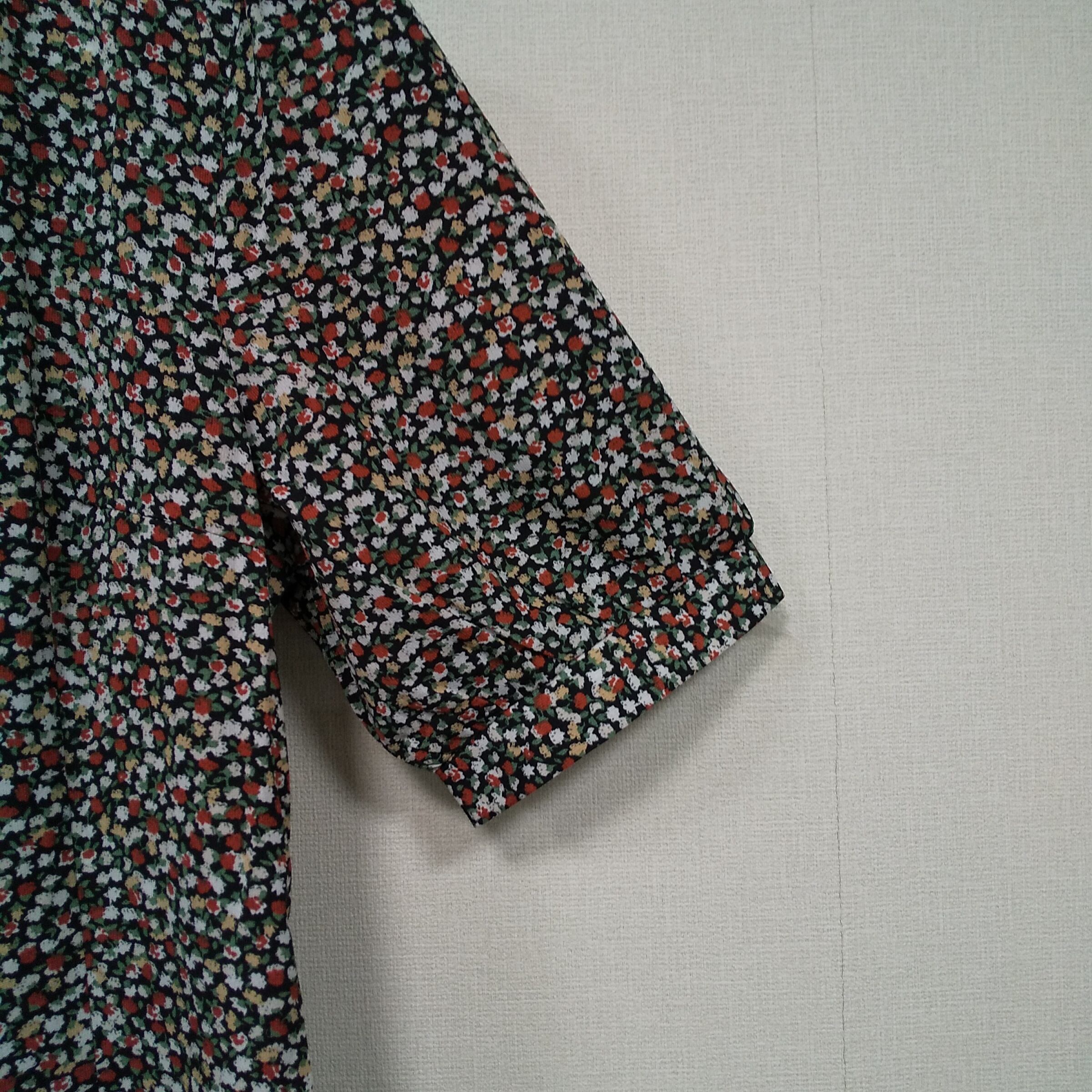 JUNOAH 小花柄 半袖シャツカラーワンピース レディース XL 黒 花柄 ロング 春夏