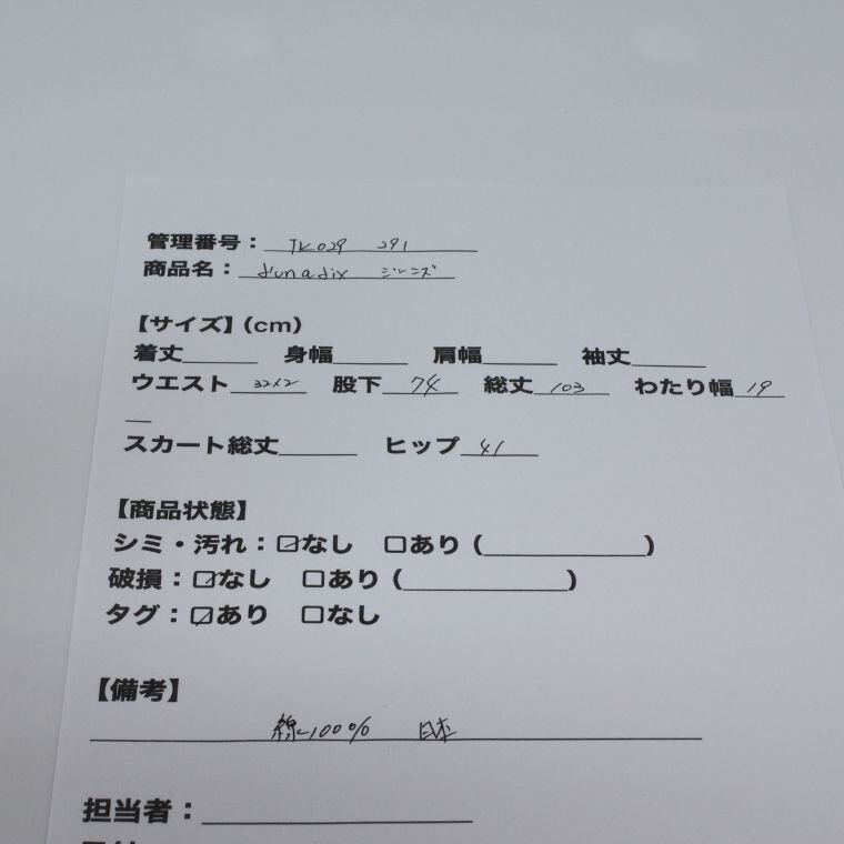 d’un à dix デニムパンツ 日本製 綿100% ヴィンテージ風 レディース W25 L32 インディゴ