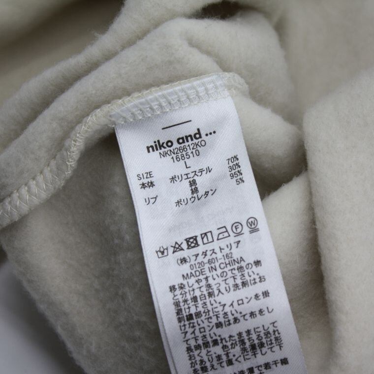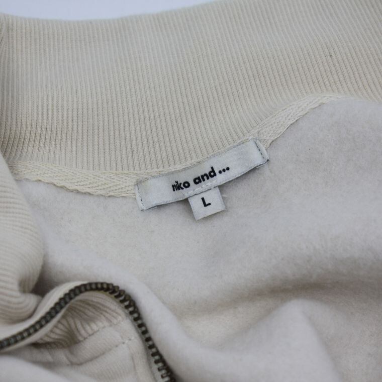 niko and… ハーフジップ スウェット トレーナー L アイボリー 裏起毛 シミあり レディース 古着