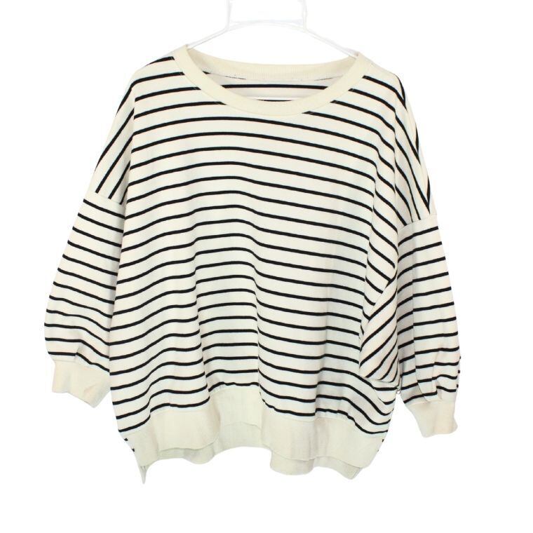 ViS ボーダー 七分袖 カットソー レディース Fサイズ ゆったり シンプル カジュアル 春夏 トップス