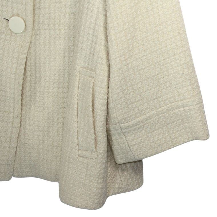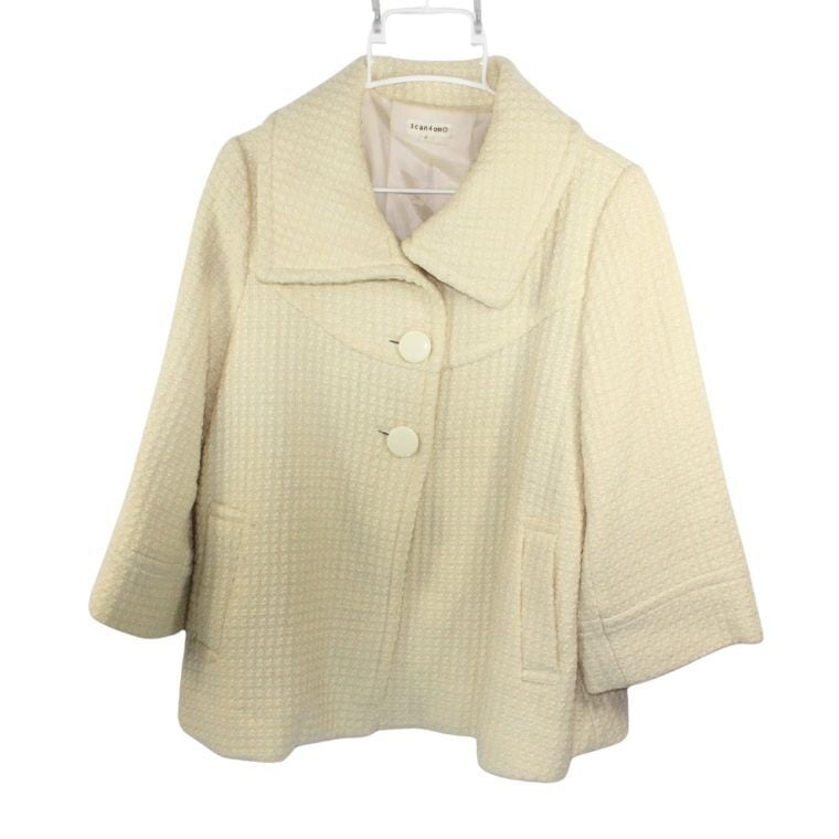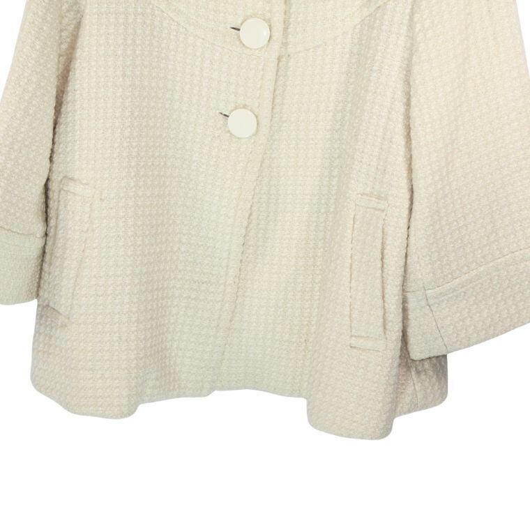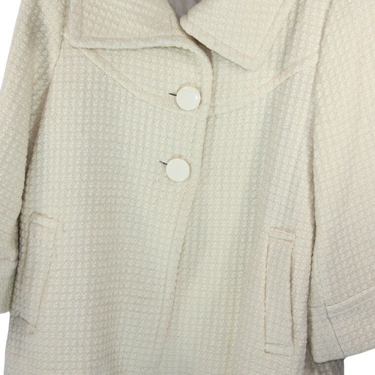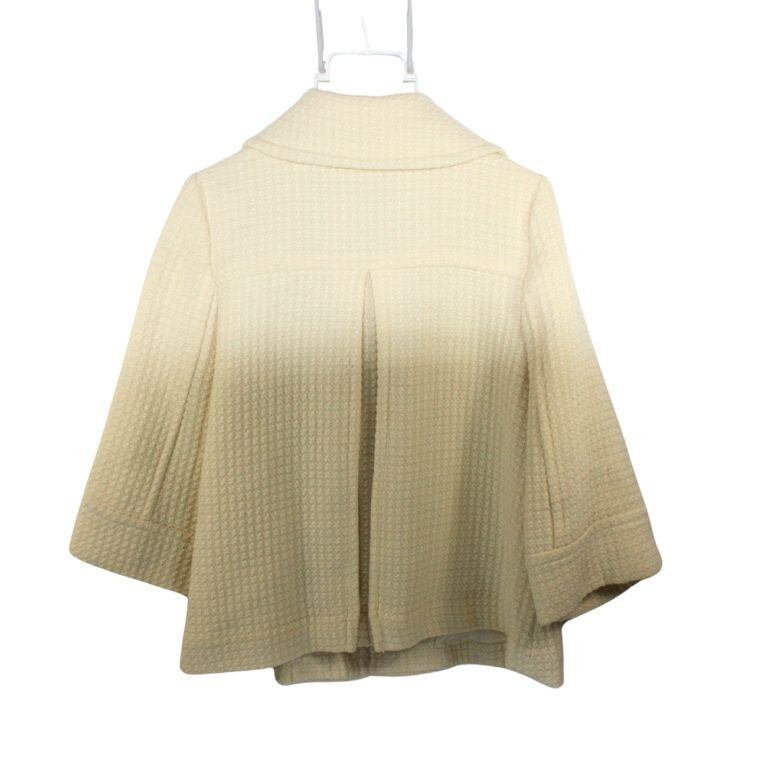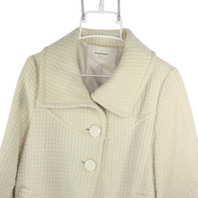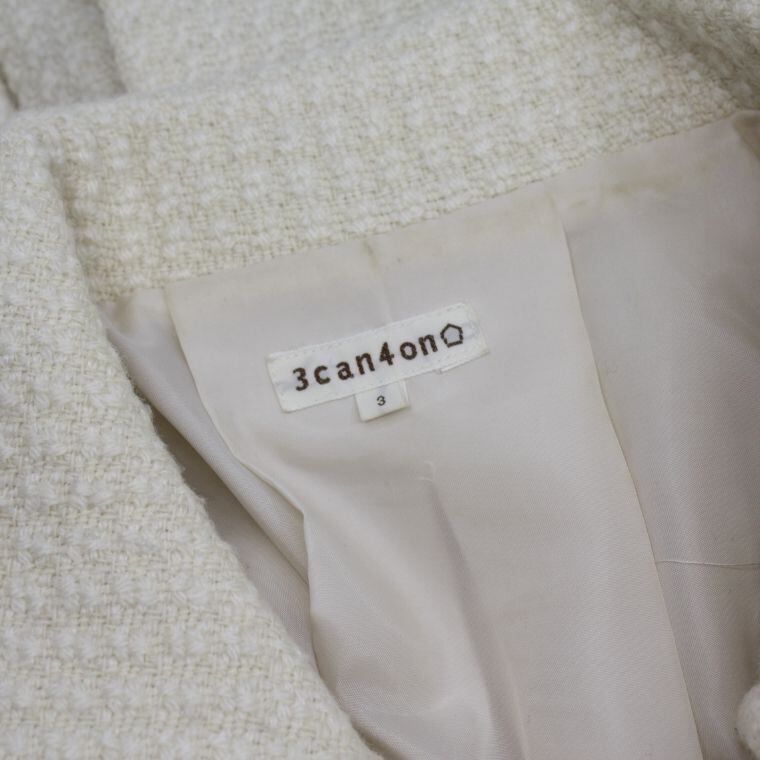 3can4on ツイード風ジャケット アイボリー系 七分袖 上品デザイン レディースアウター
